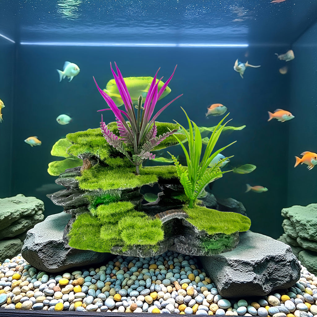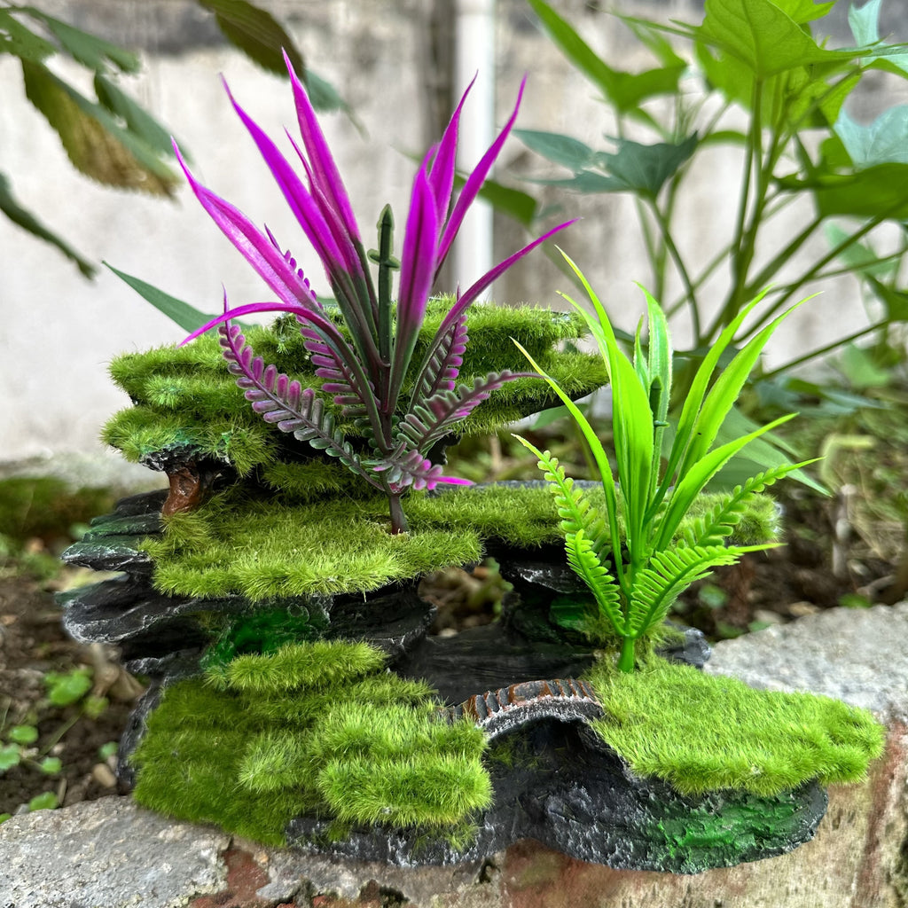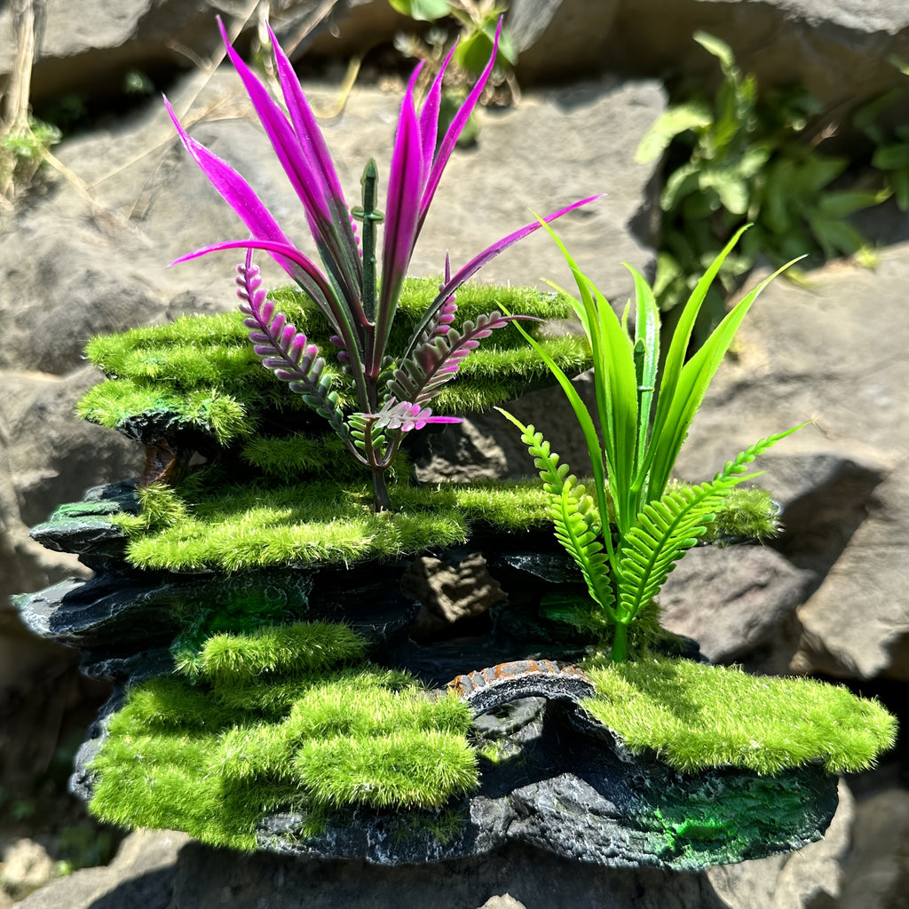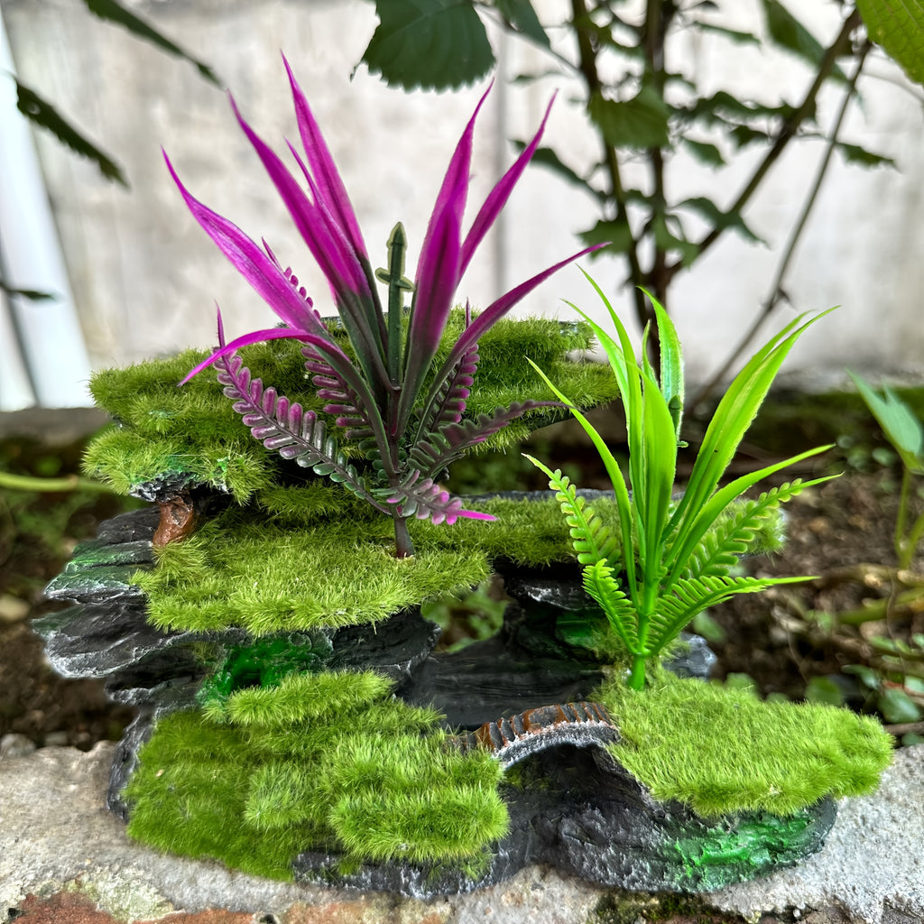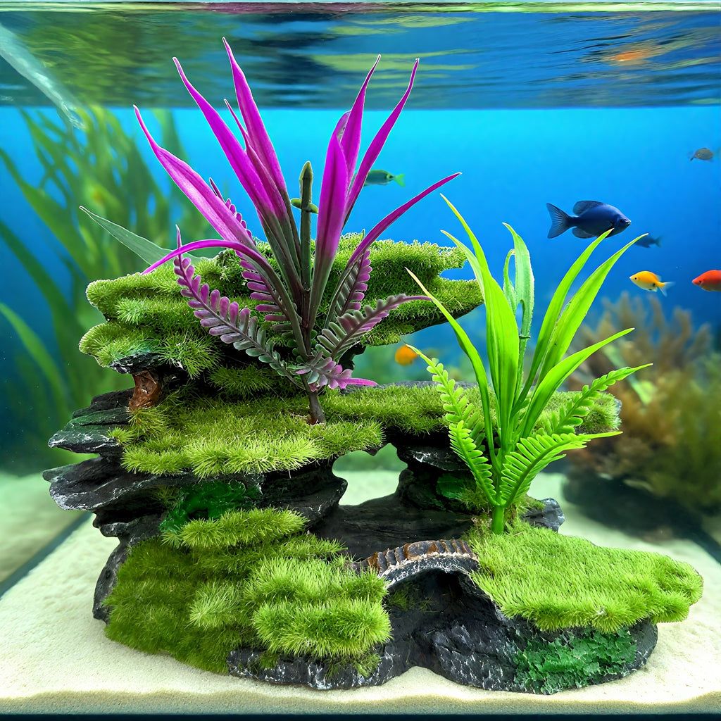 1pc New Aquatic Moss Rock Aquarium Decoration - Durable ABS Resin Artificial Rock with Faux Moss and Purple Water Plants, Enhanced Underwater Landscape for Fish & Shrimp Hiding Spots, Natural Habitat | Suitable for Aquariums, Turtle Habitats & Water Feat