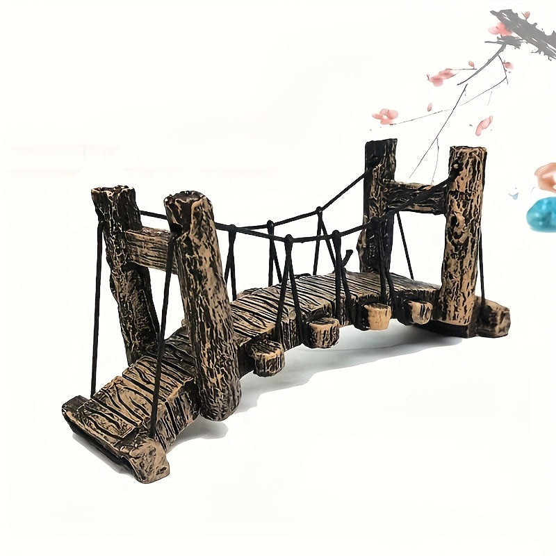 Simulated Suspension Bridge, ABS Material, Retro Arch Design, Resin Rattan, for Fish Tank Landscaping Decoration