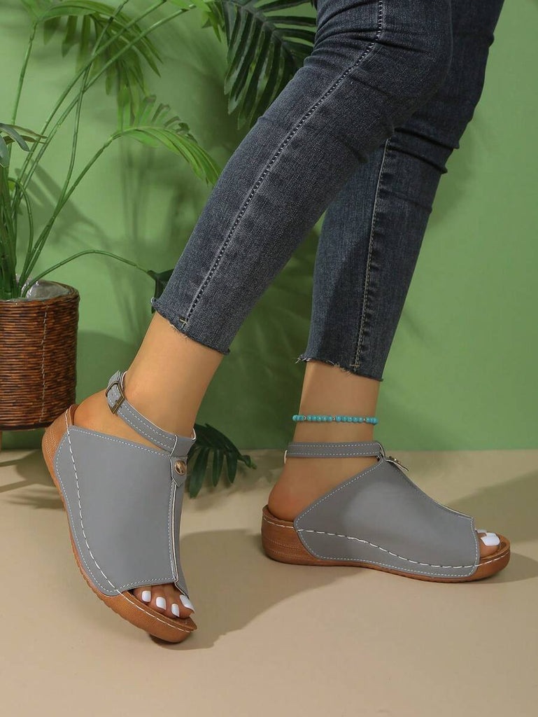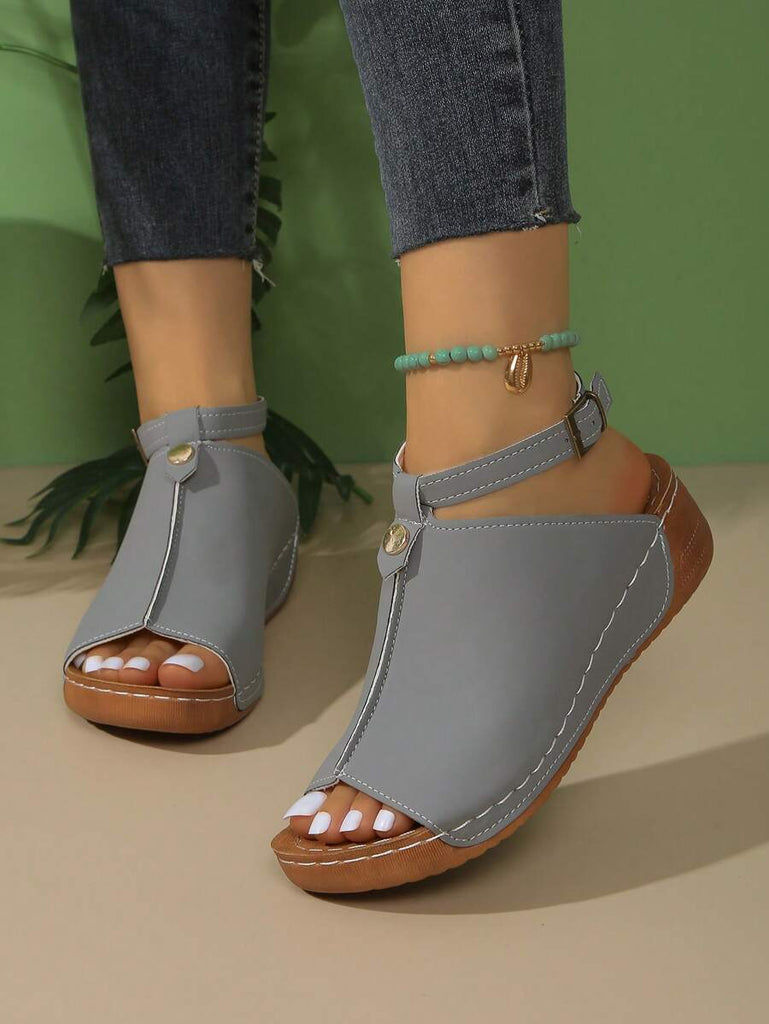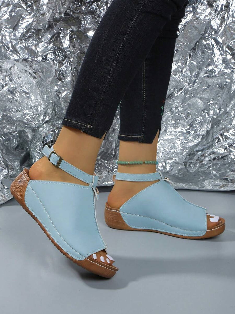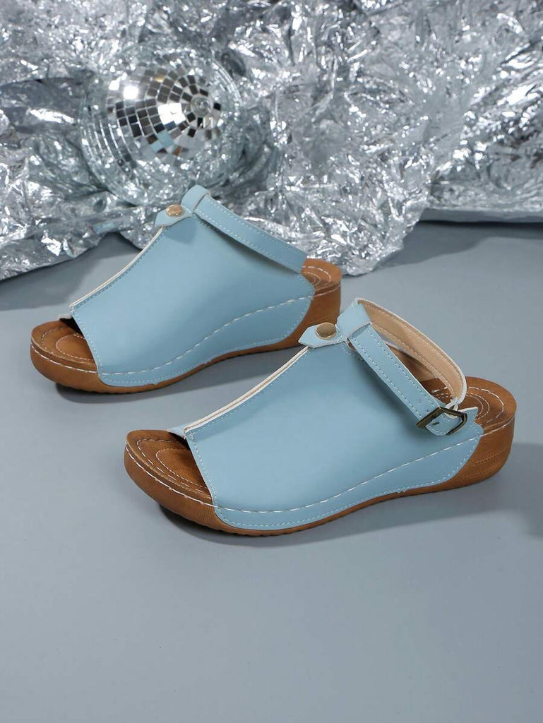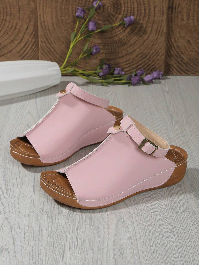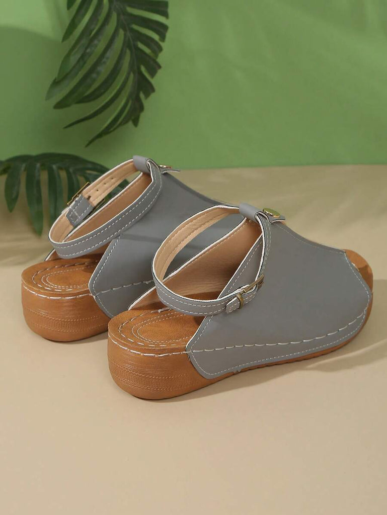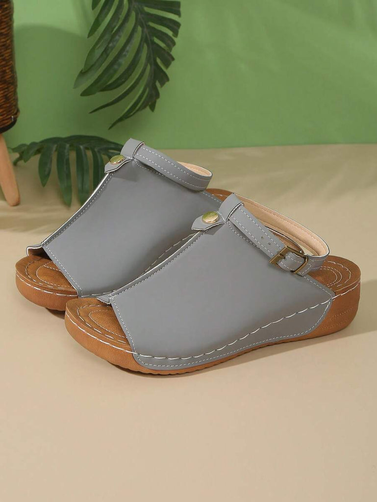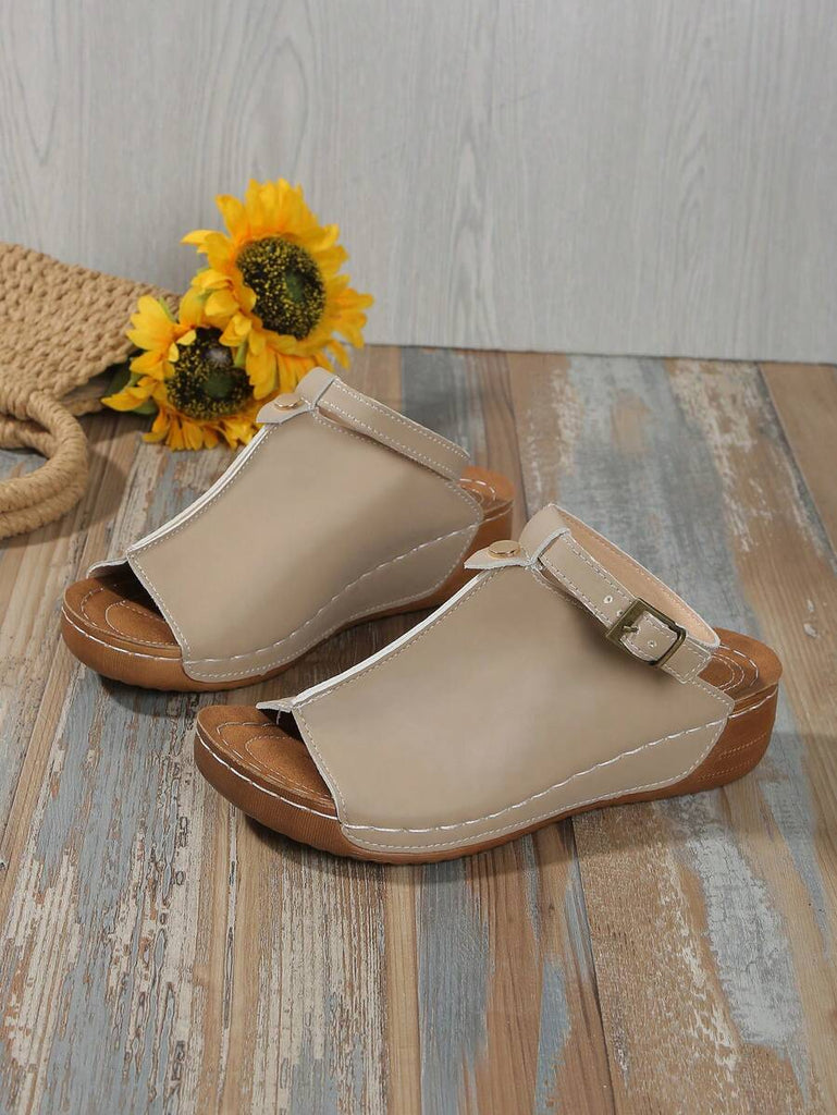 Fashion Casual/Holiday Hollow-Out Metal Buckle Strap Wedge Heel Mule Open Toe Sandals For Women