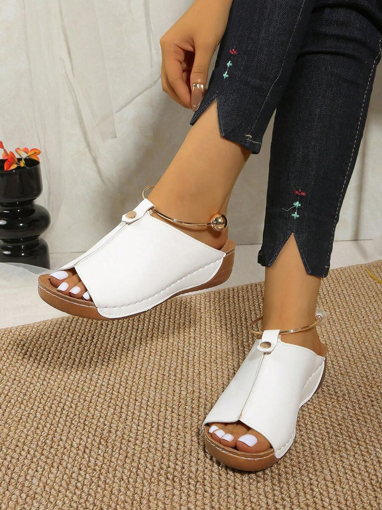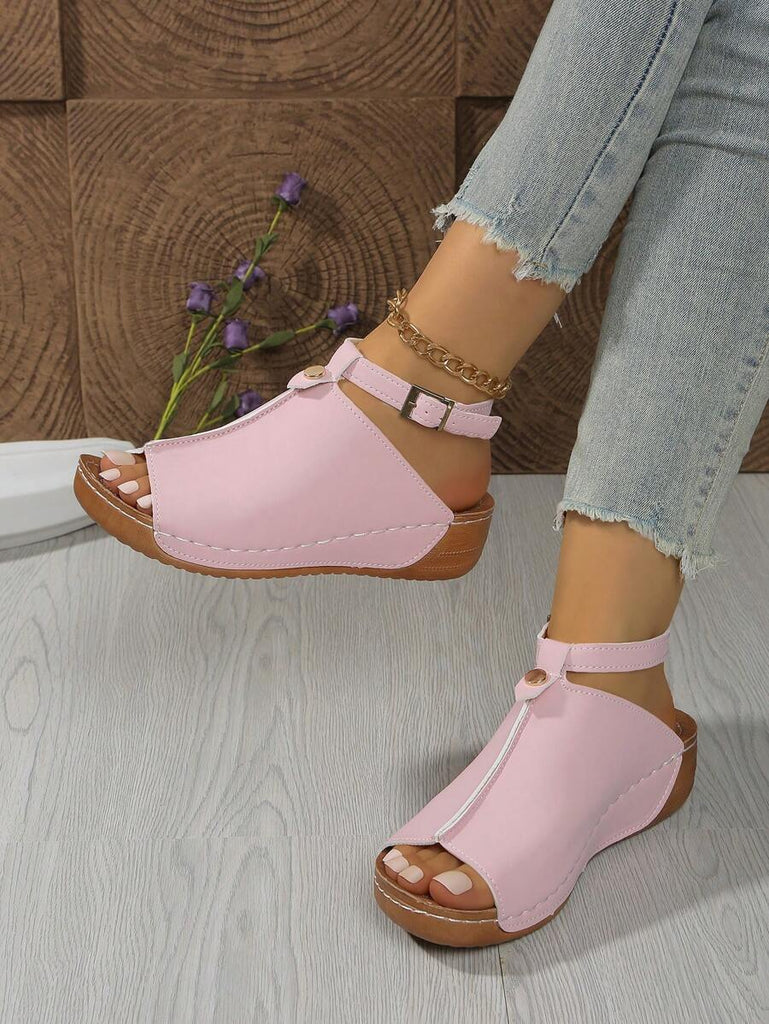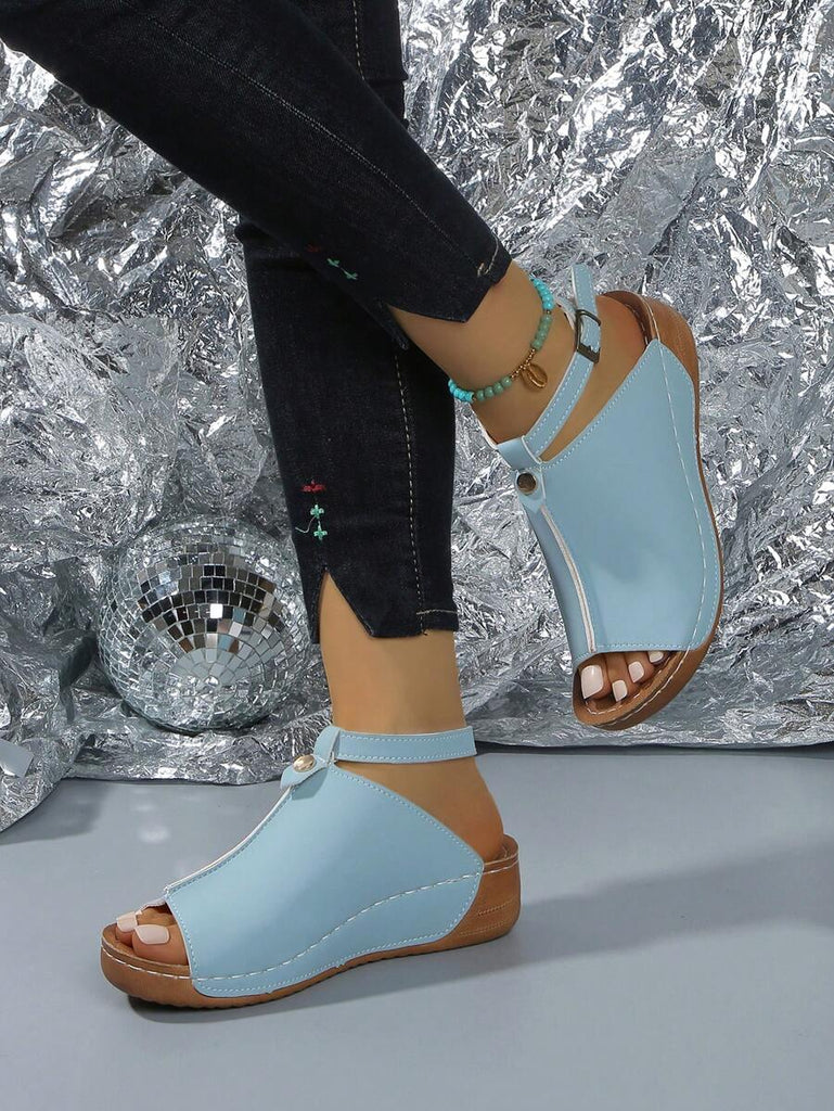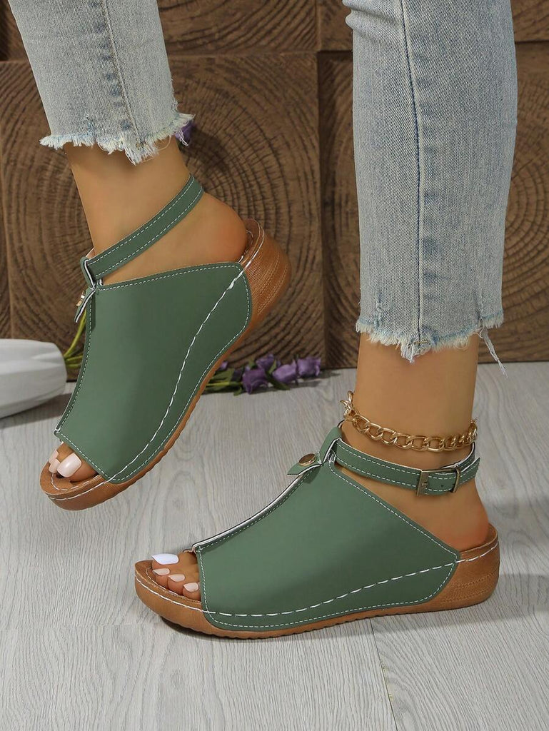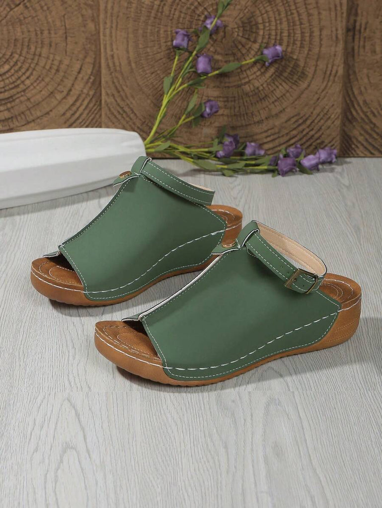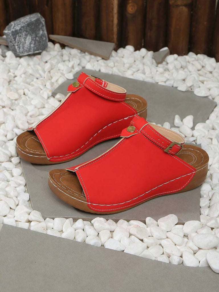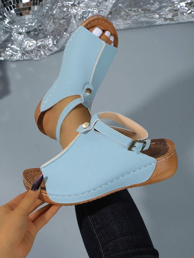 Fashion Casual/Holiday Hollow-Out Metal Buckle Strap Wedge Heel Mule Open Toe Sandals For Women