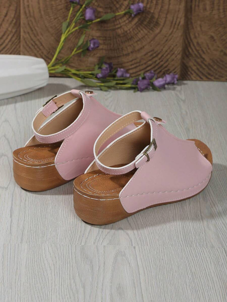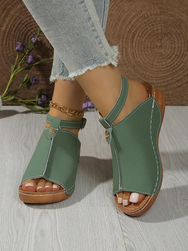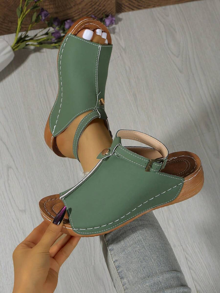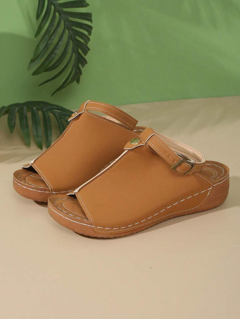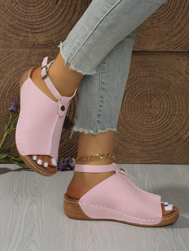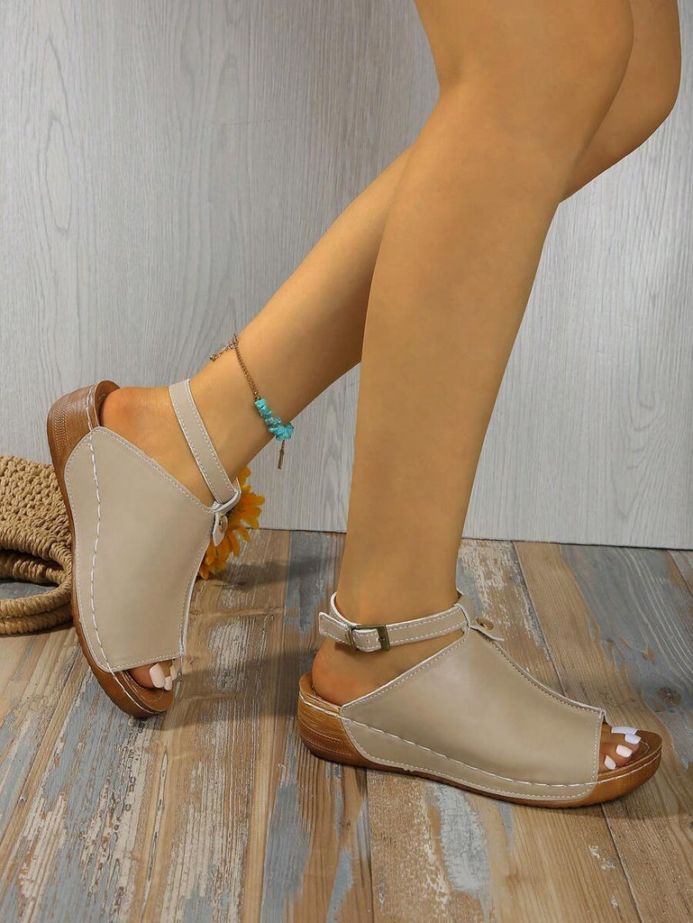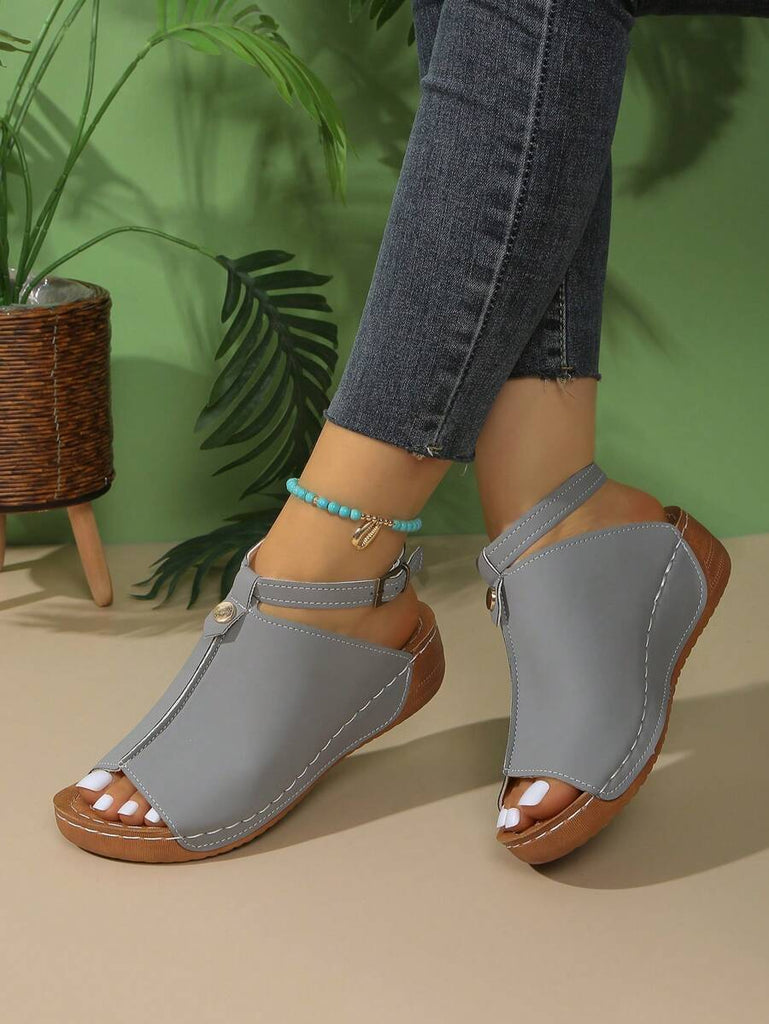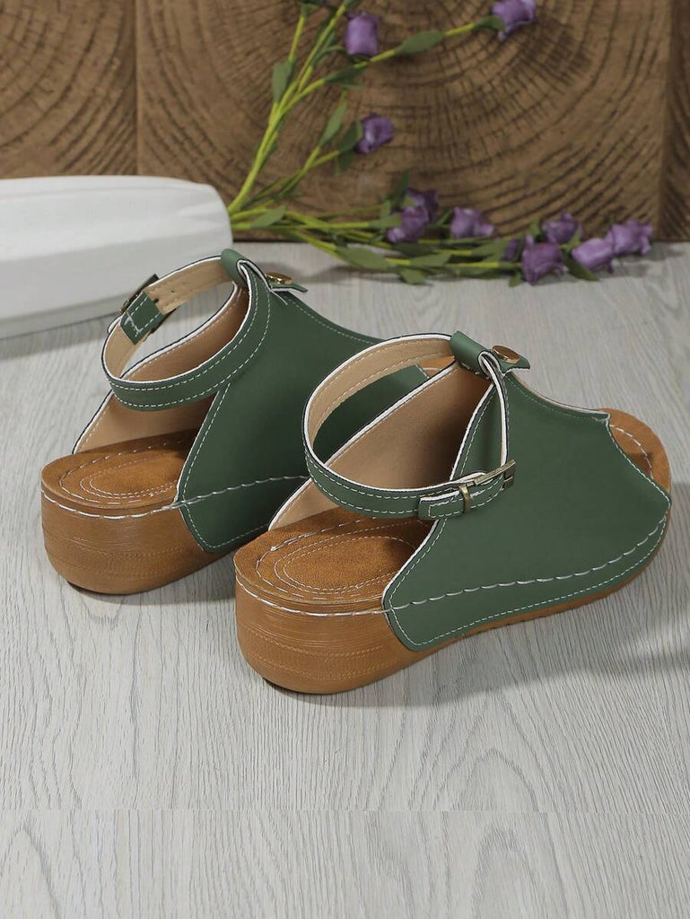Fashion Casual/Holiday Hollow-Out Metal Buckle Strap Wedge Heel Mule Open Toe Sandals For Women
