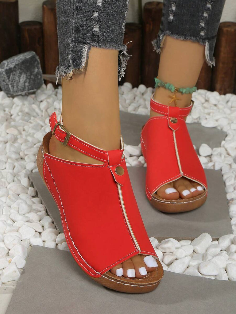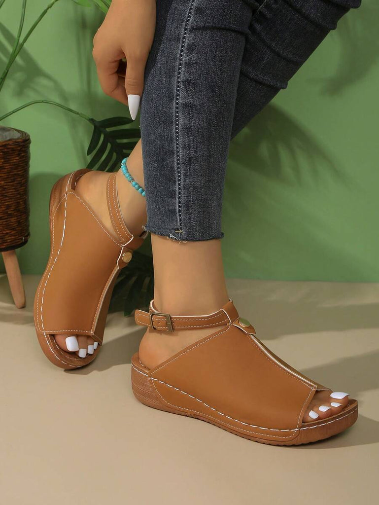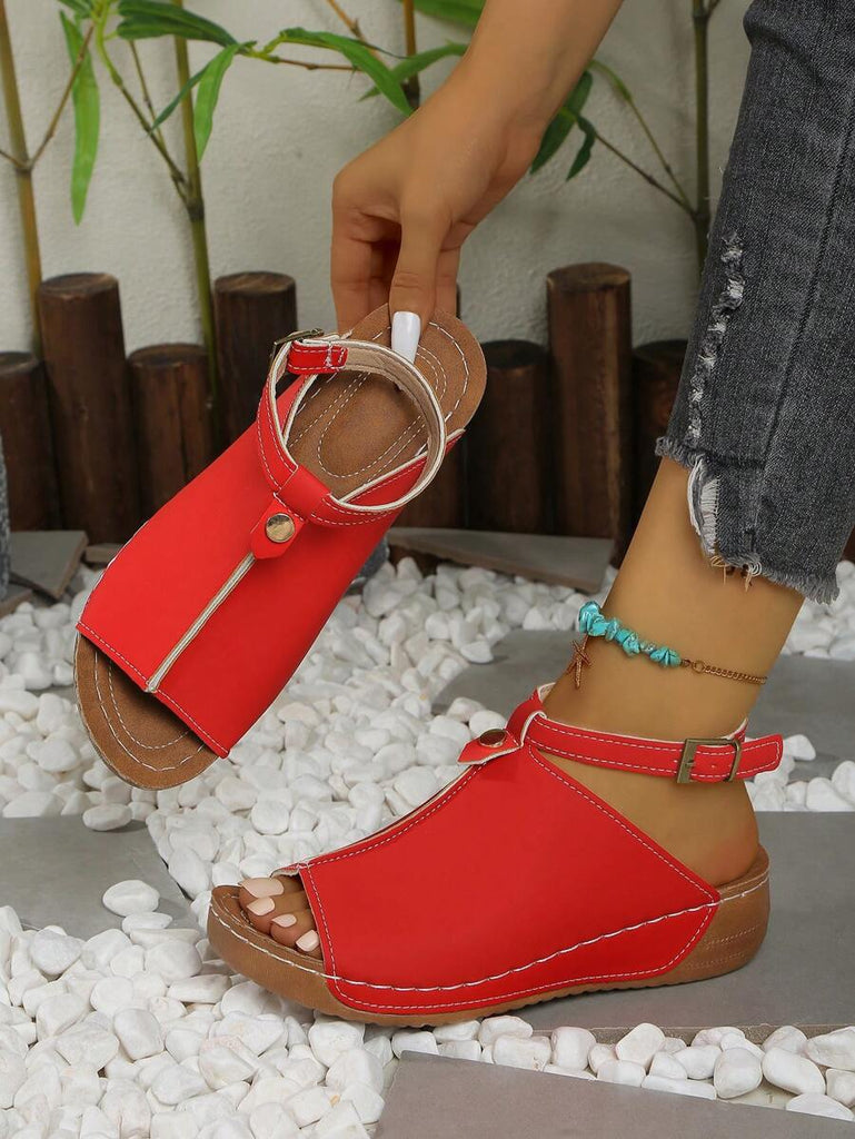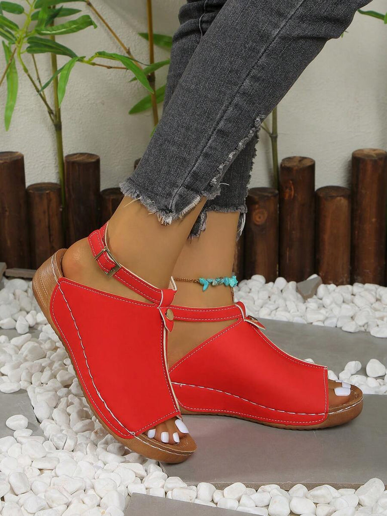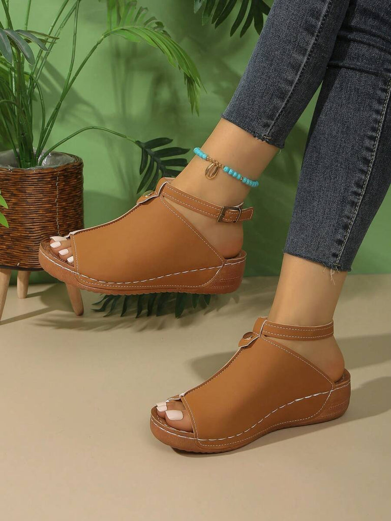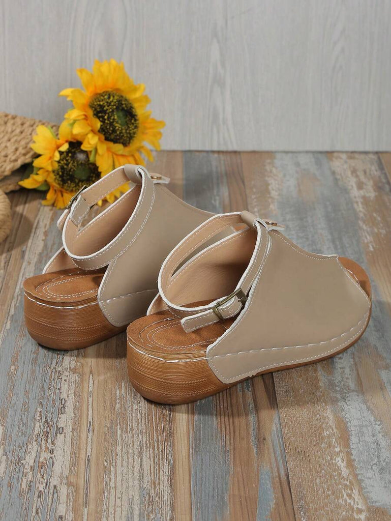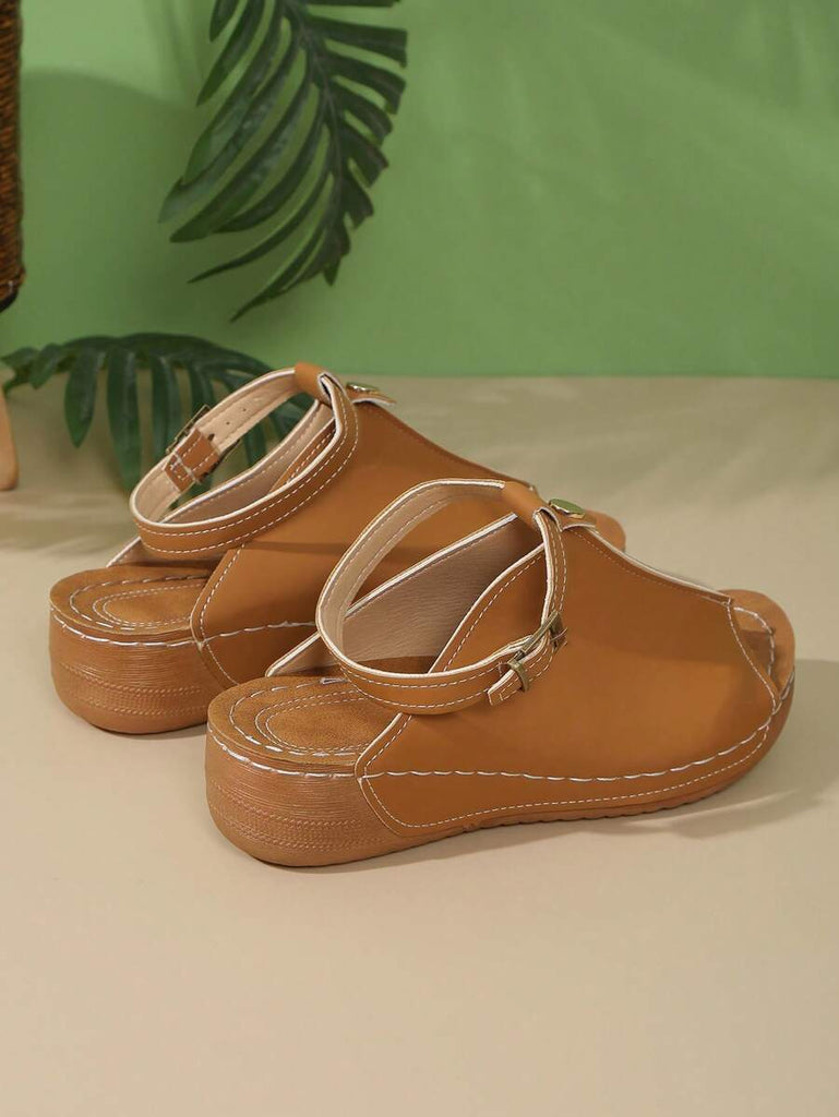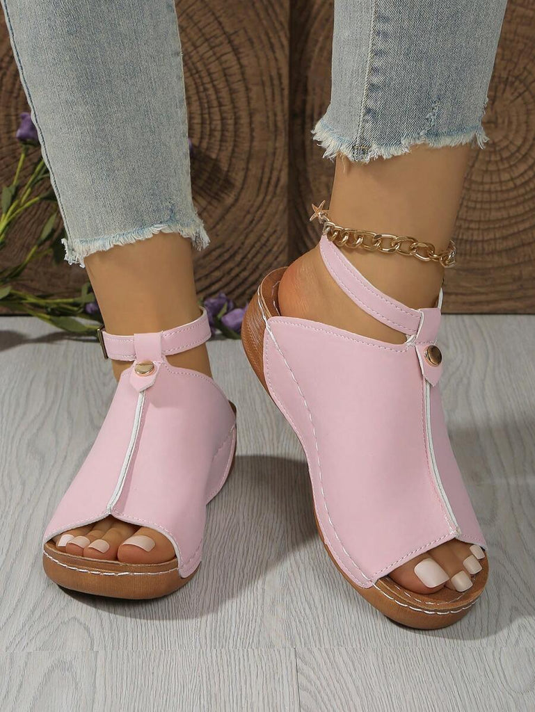 Fashion Casual/Holiday Hollow-Out Metal Buckle Strap Wedge Heel Mule Open Toe Sandals For Women