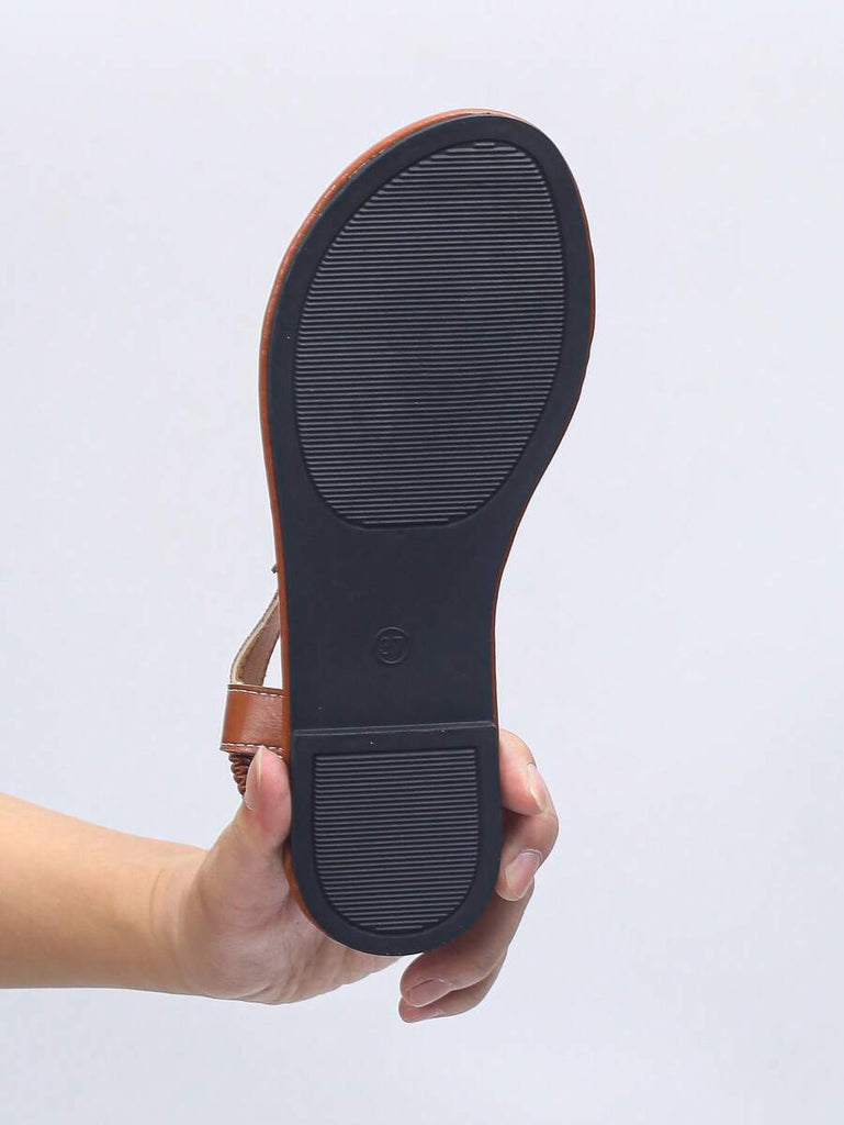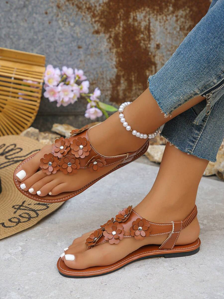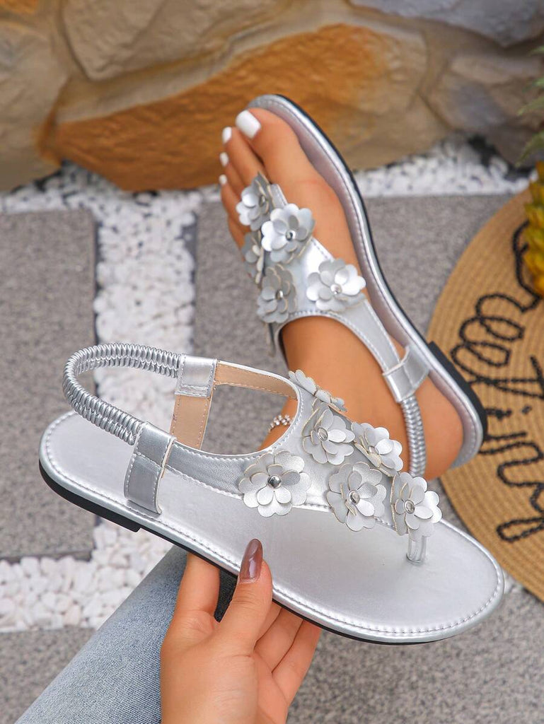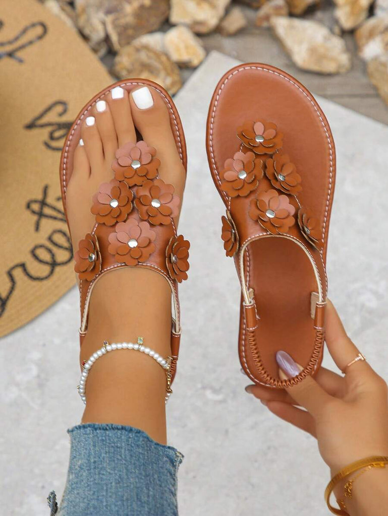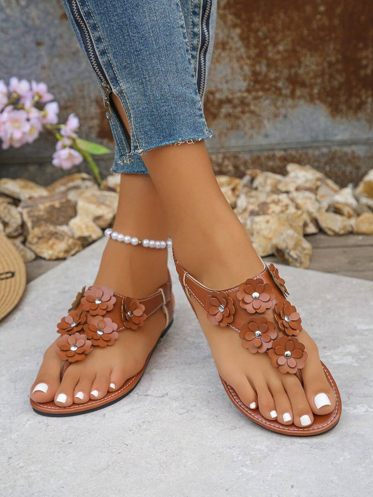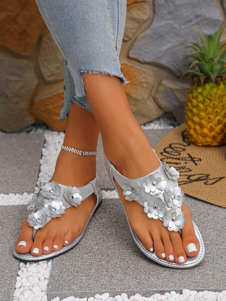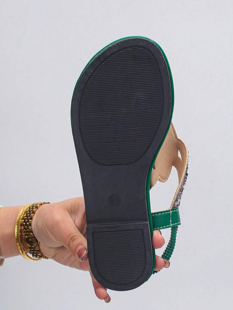 Plus Size 35-45 Fashionable Round Toe Women Flat Sandals, Summer Outdoor Open Toe Purple Rhinestone Thong Lightweight Ladies Sandals