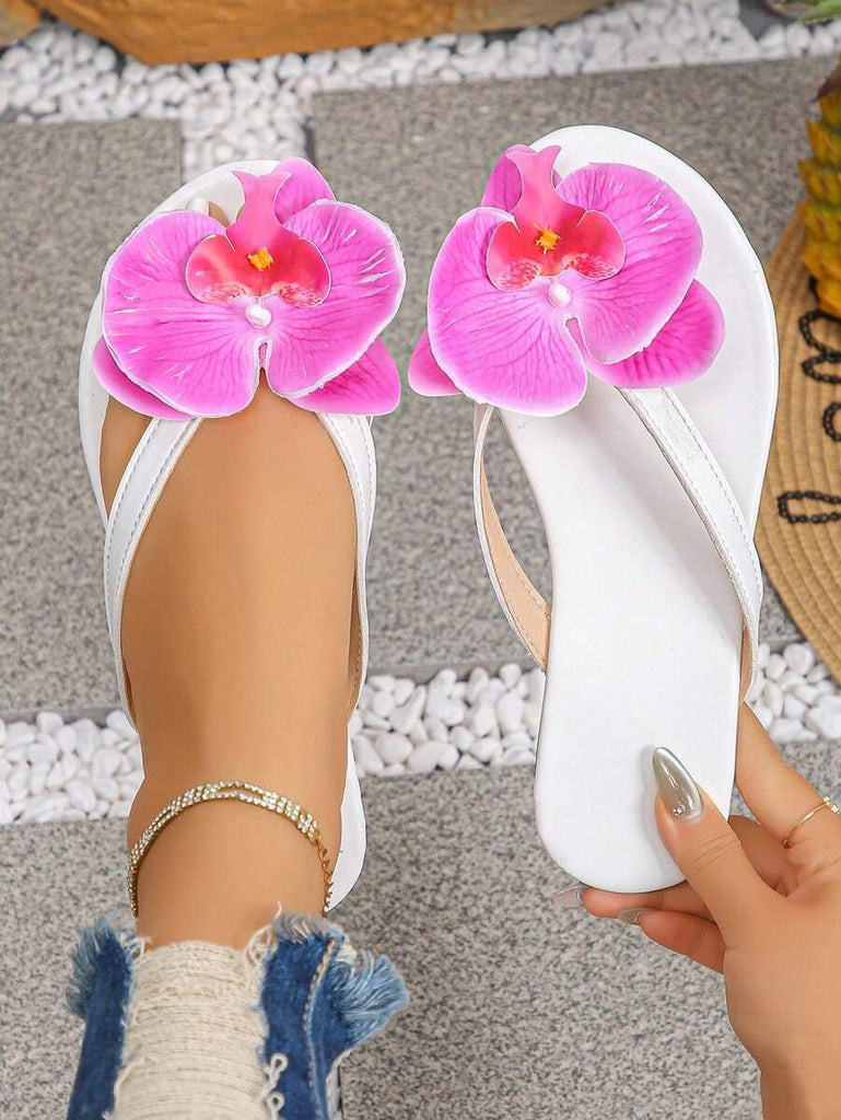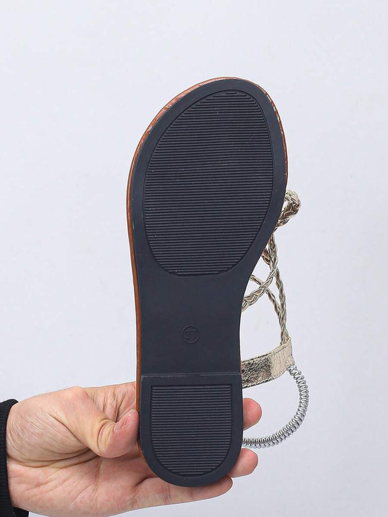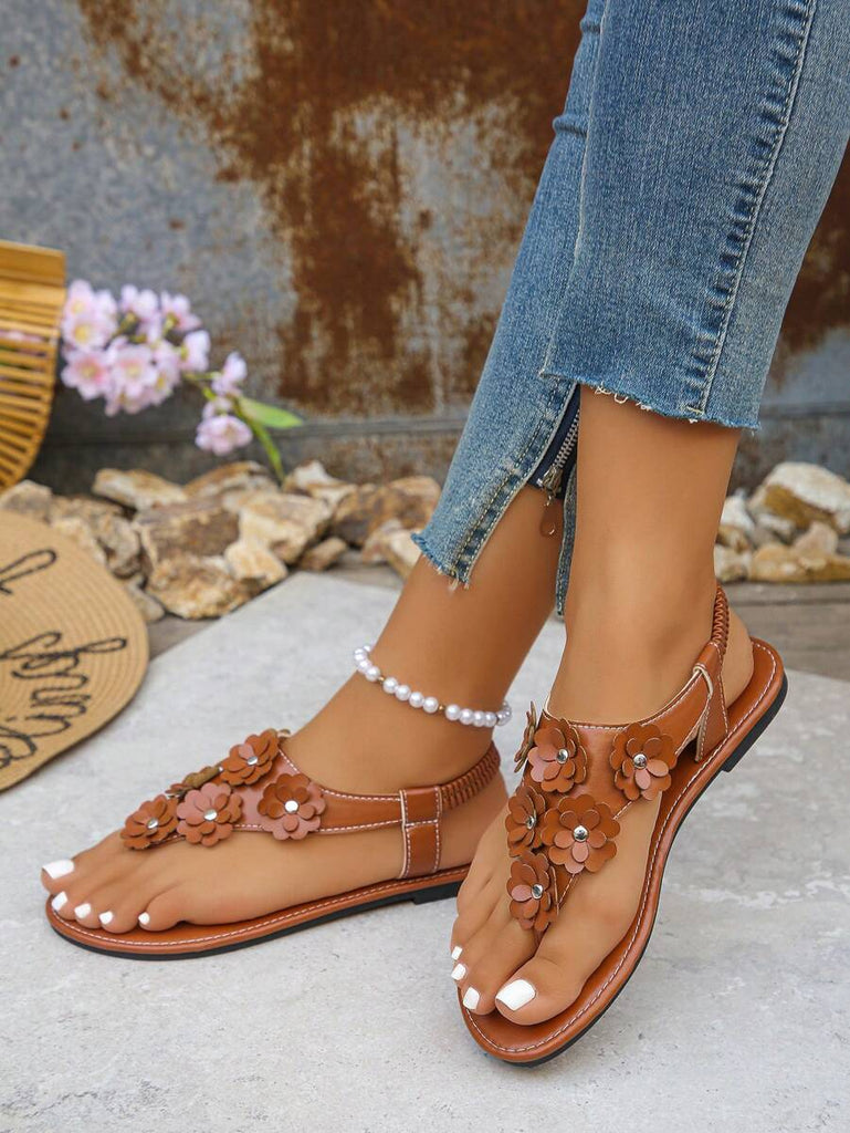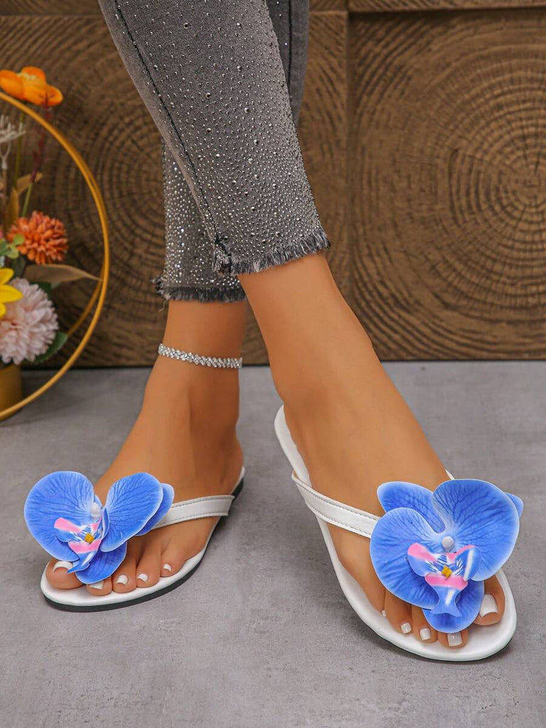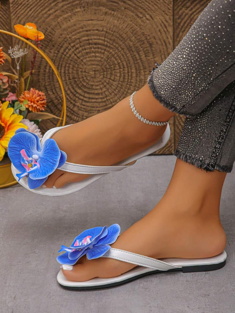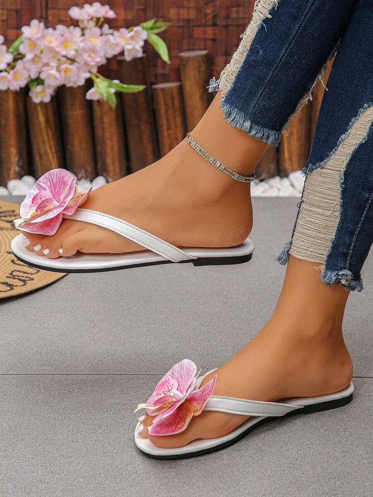 Plus Size 35-45 Fashionable Round Toe Women Flat Sandals, Summer Outdoor Open Toe Purple Rhinestone Thong Lightweight Ladies Sandals