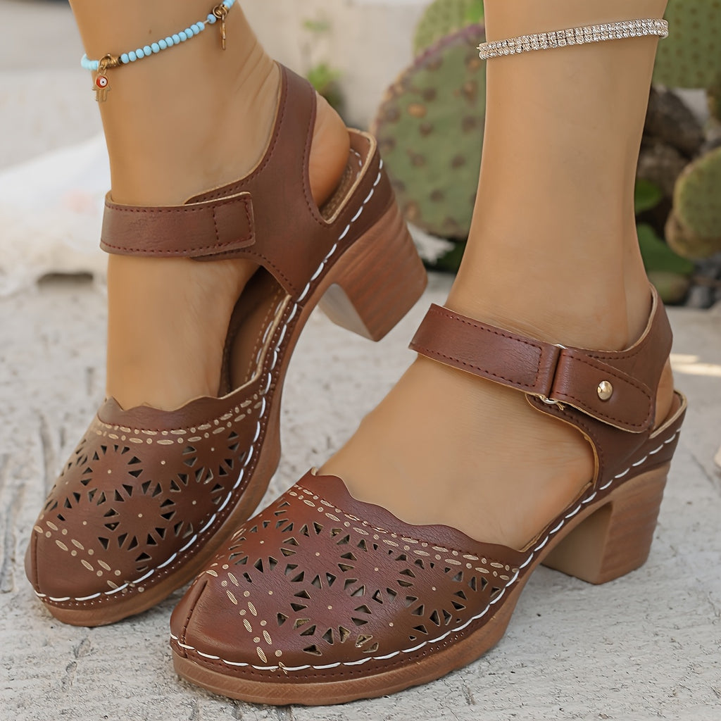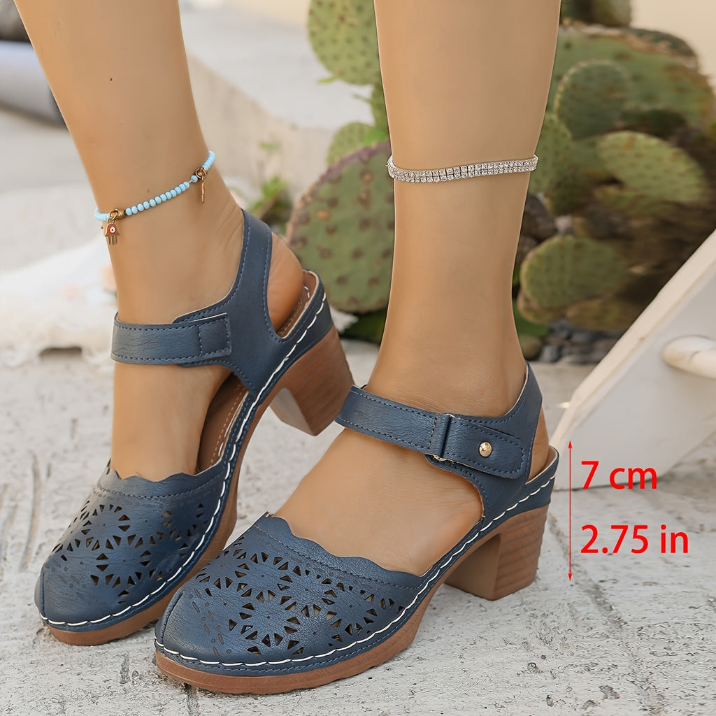Women'S Black Open-Toe Platform Sandals - Comfortable Slip-On High Heel with Cut-Out Design, Round Toe, and Ankle Strap for Casual Summer Wear, Strappy Sandals