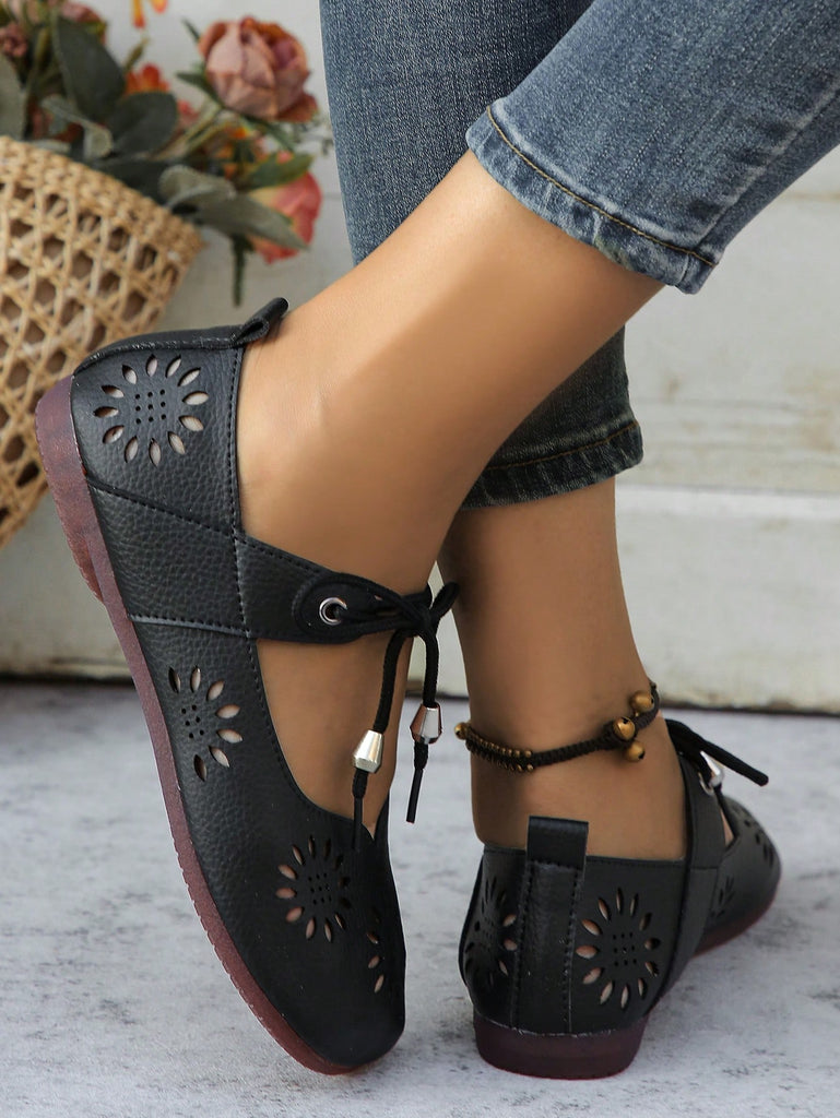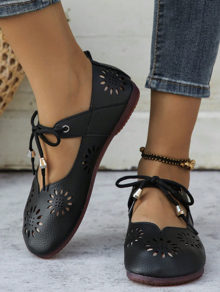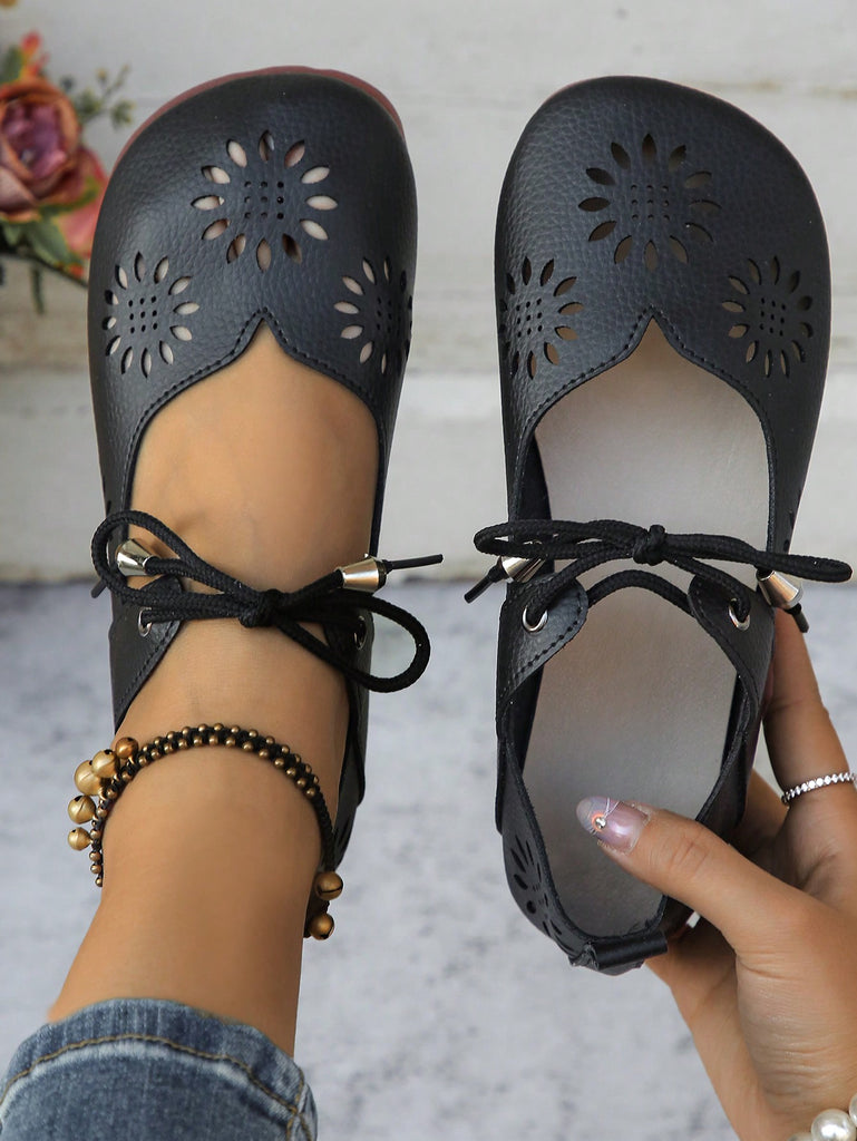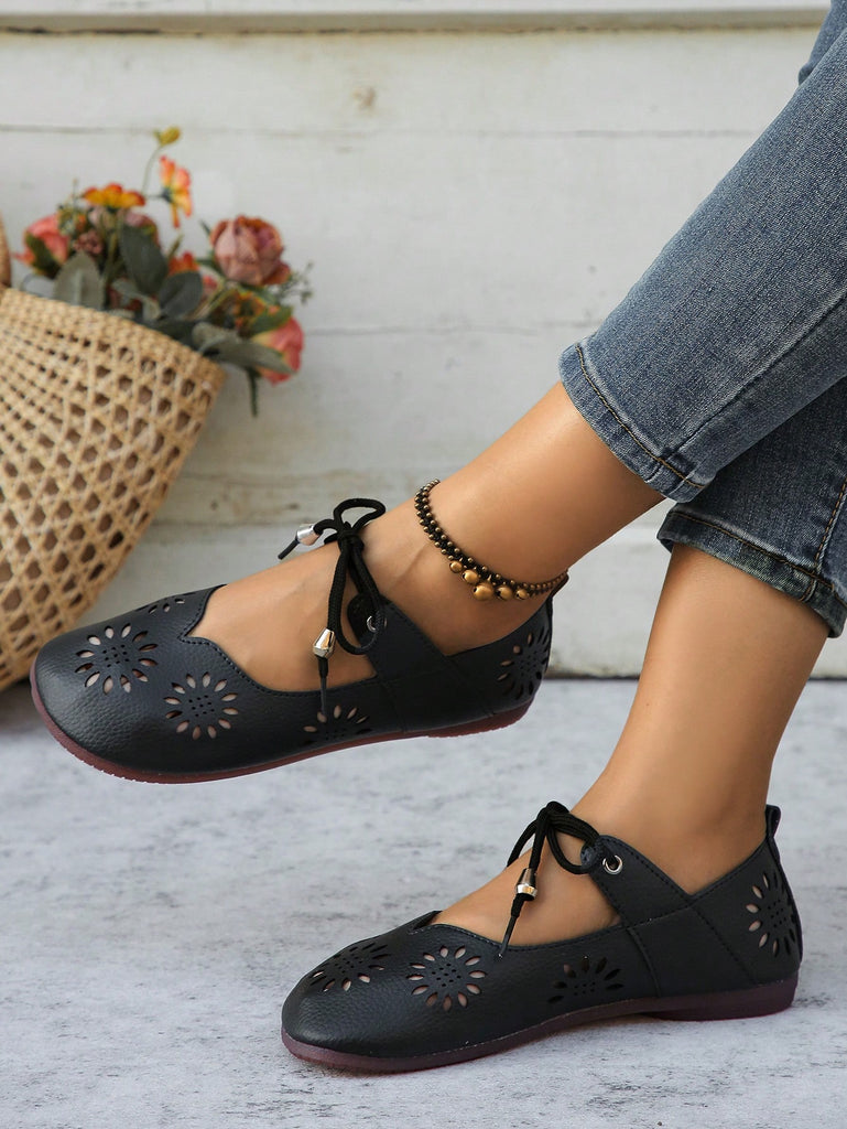 Women's Floral Hollow Lace-Up Flat Comfortable Lightweight Casual Walking Shoes, Breathable Slip-On Daily Wear