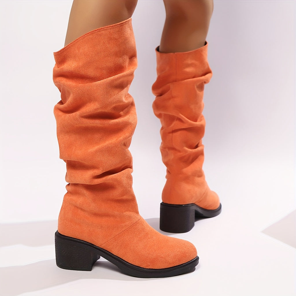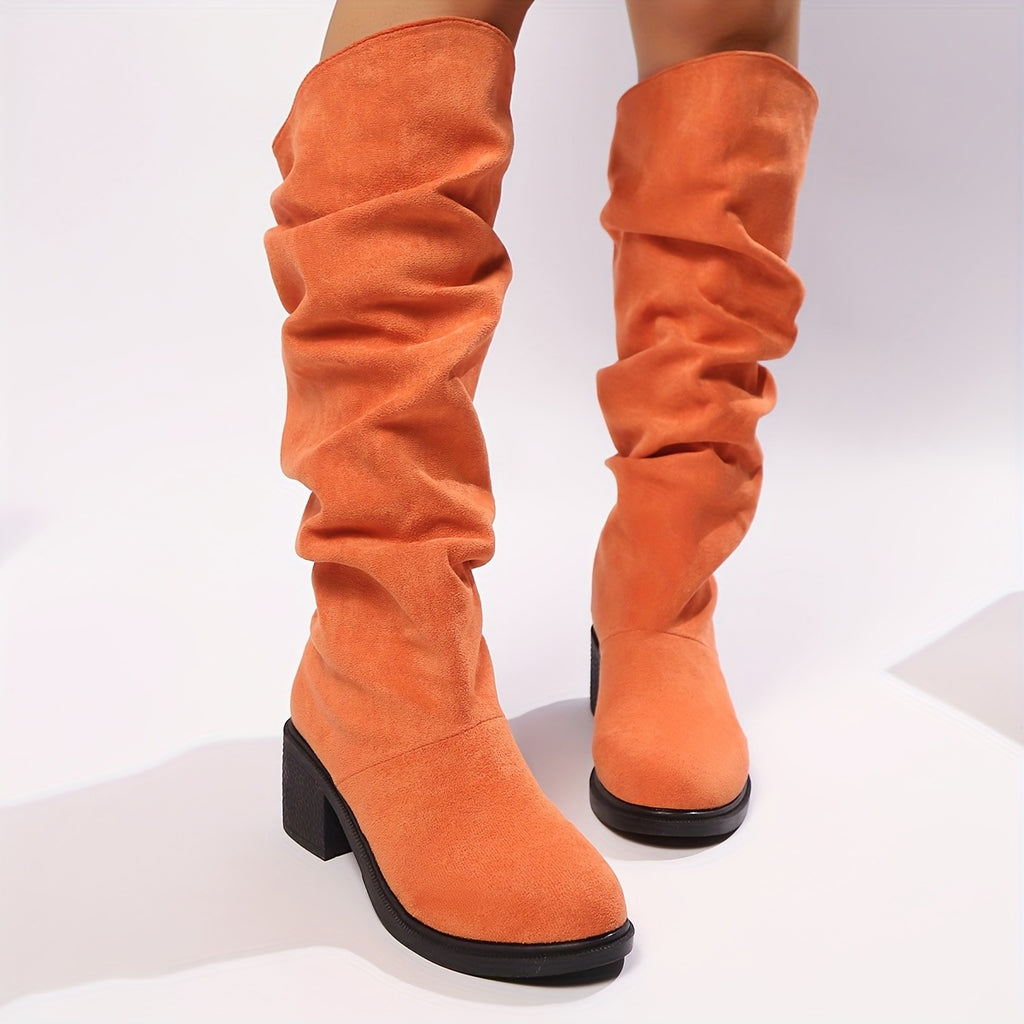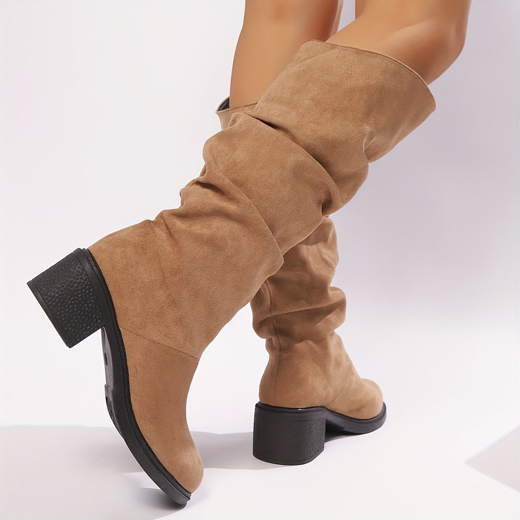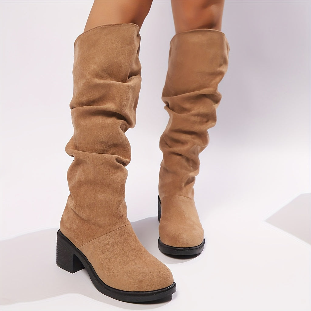 Women'S Slip-On Chunky Platform Knee-High Boots - Soft Fabric Upper, Thick Cushioned Heel, Round Toe & TPR Sole for All-Season Comfort - Casual to Formal Versatile Booties, Comfortable Footwear