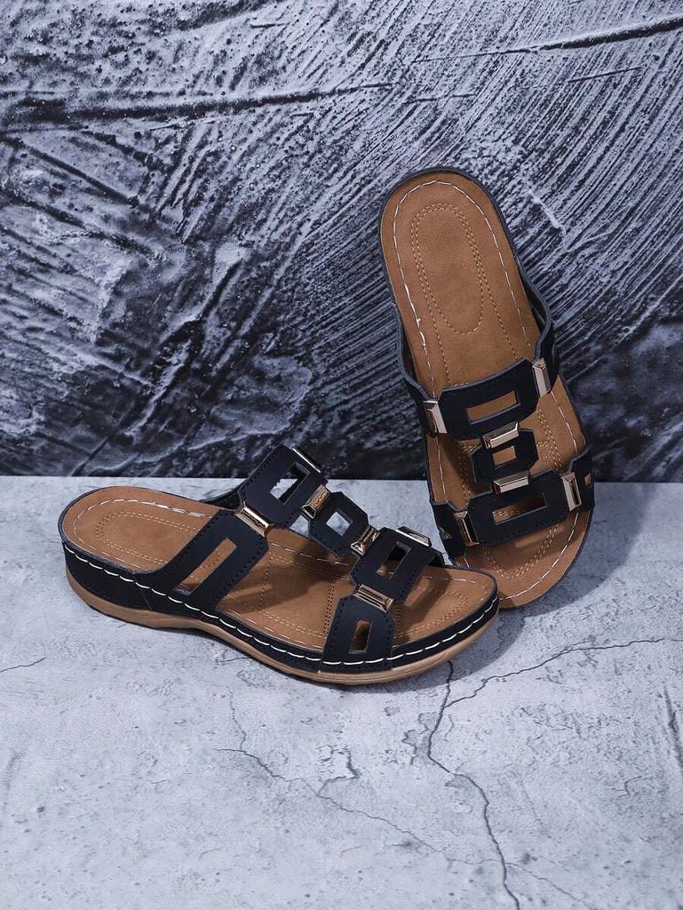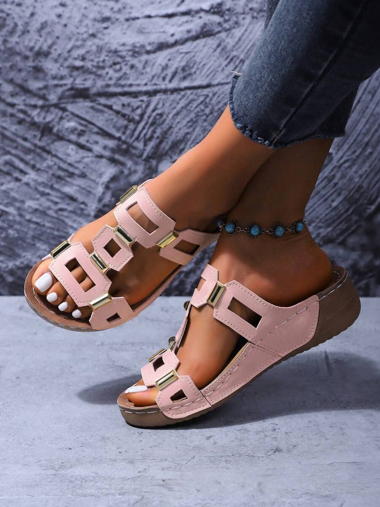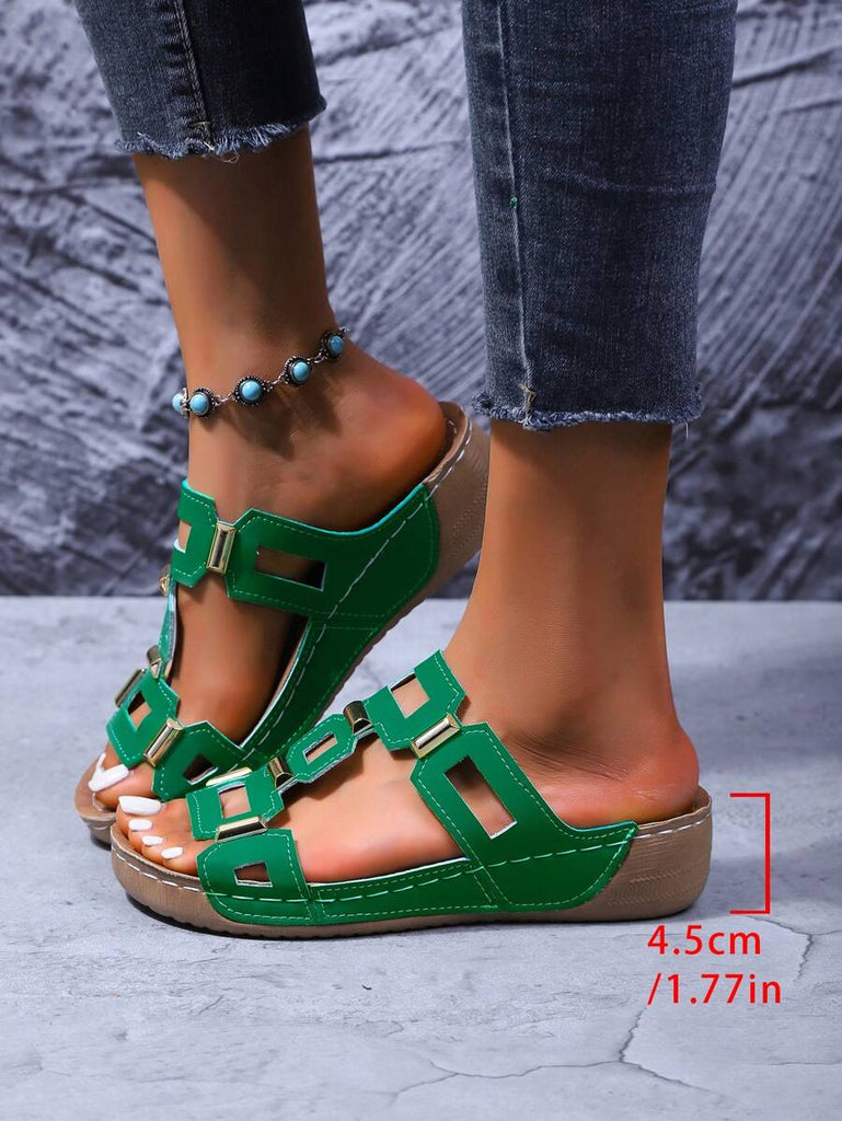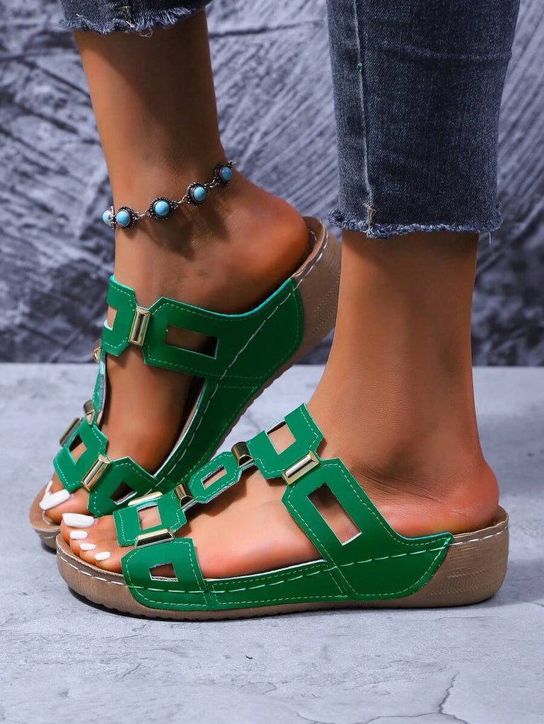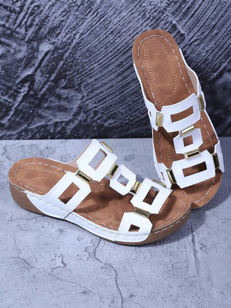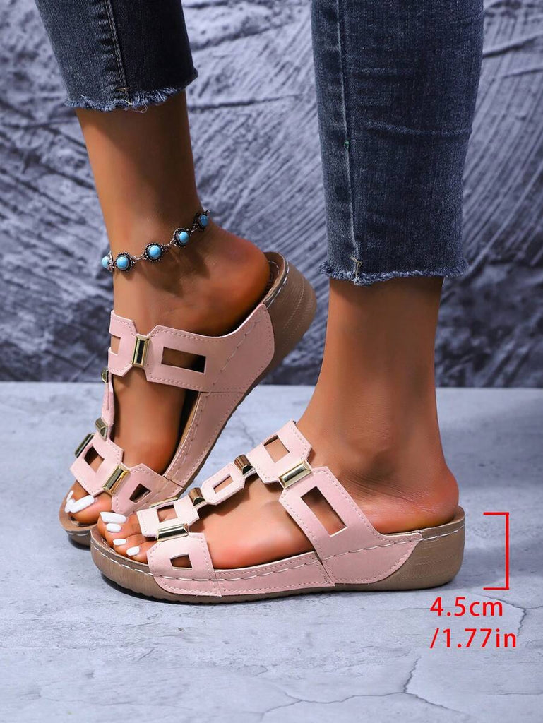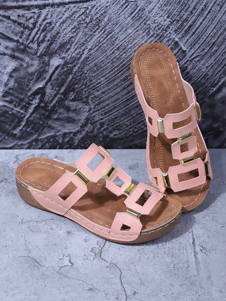 Women's Soft Bottom Thick Sole Studded Hollow Out Slippers