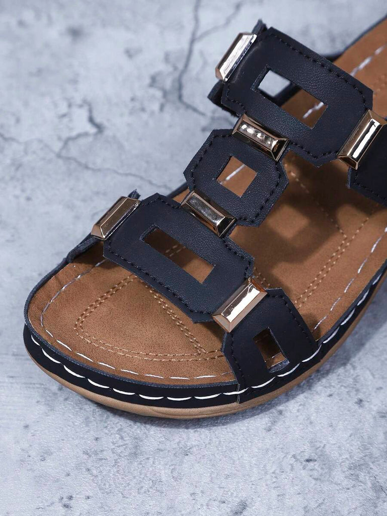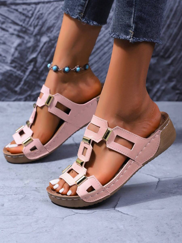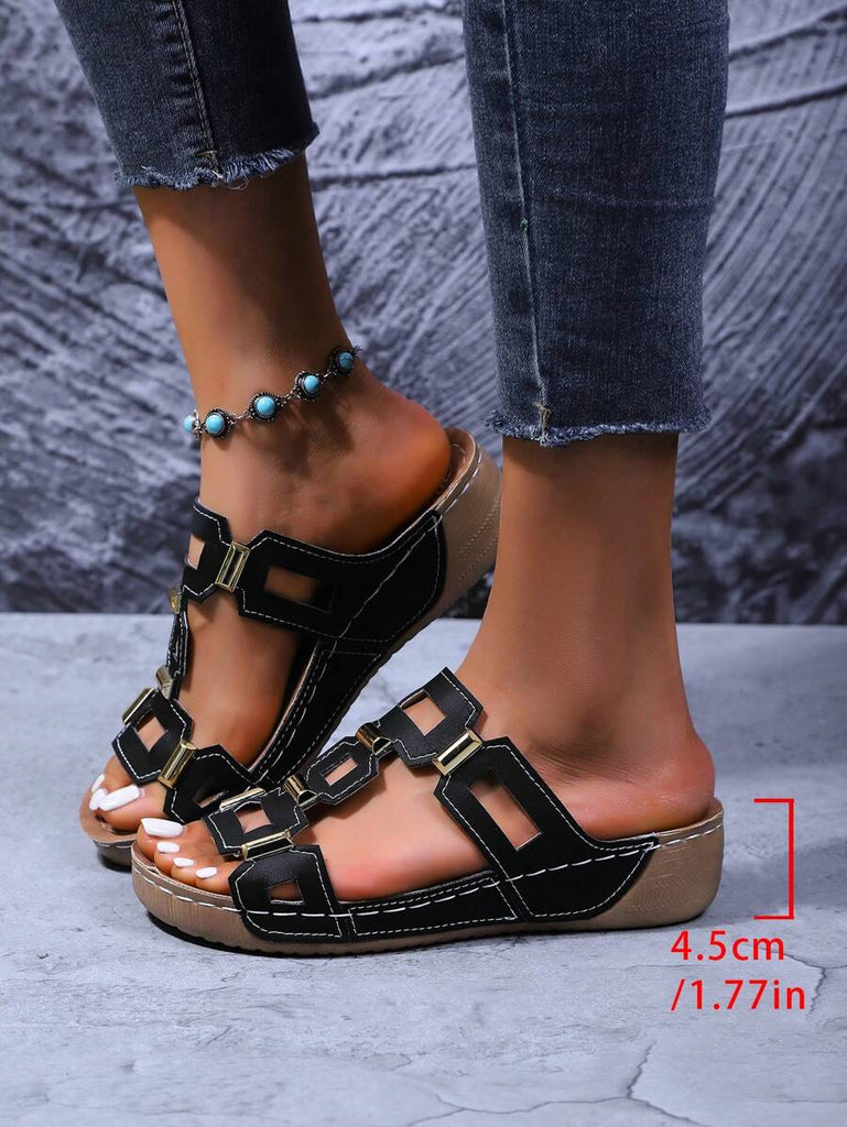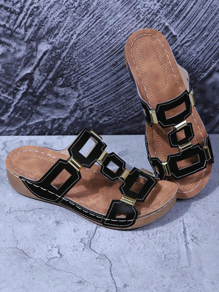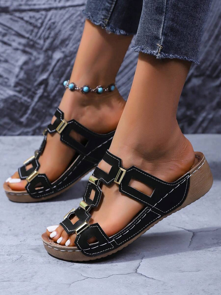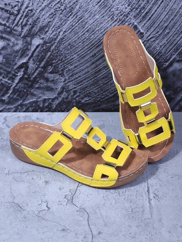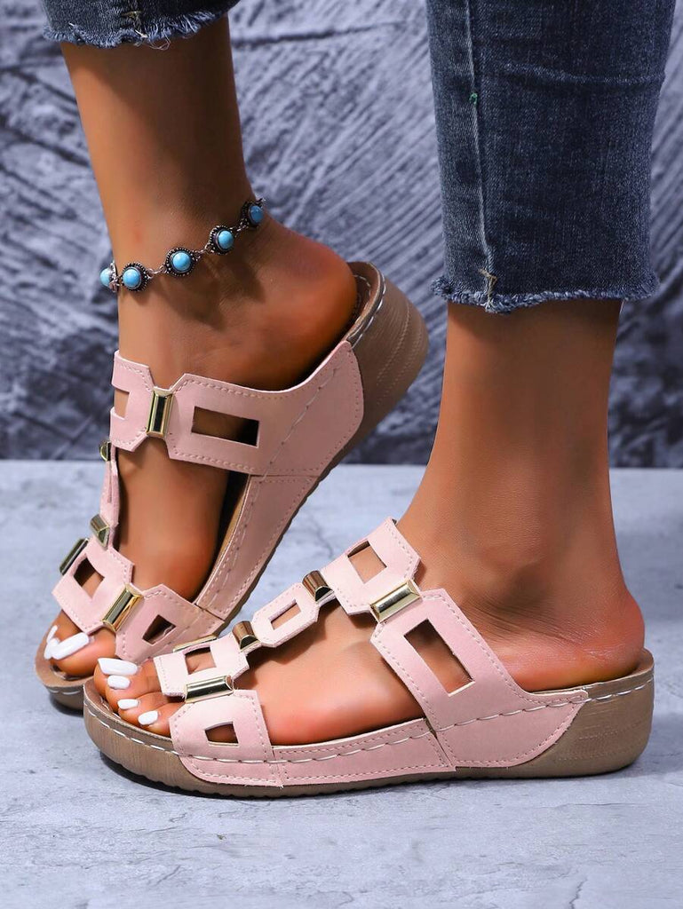 Women's Soft Bottom Thick Sole Studded Hollow Out Slippers