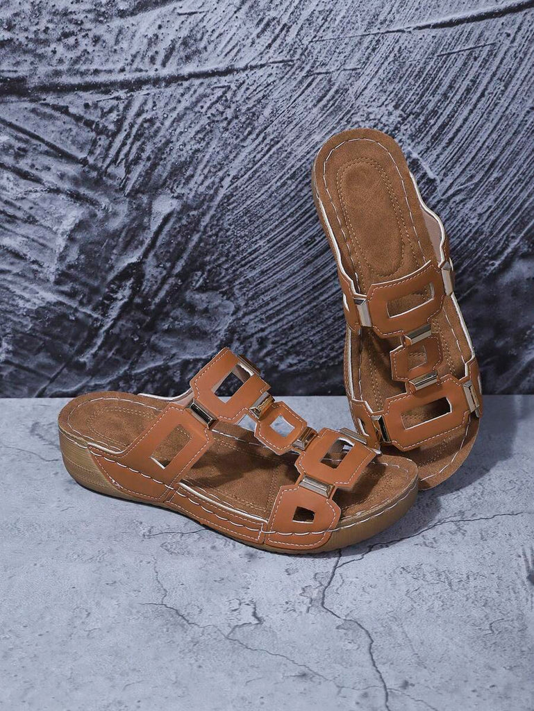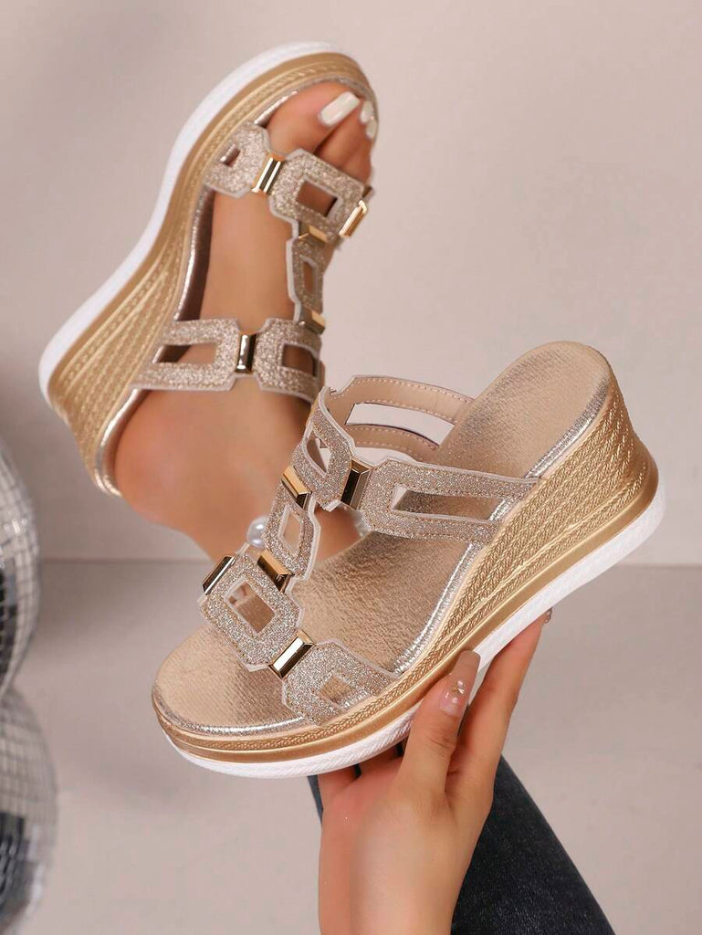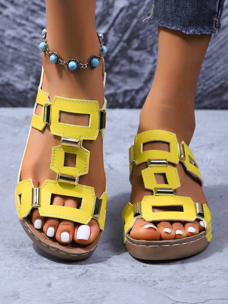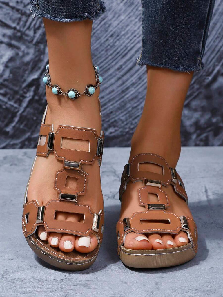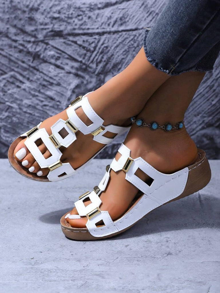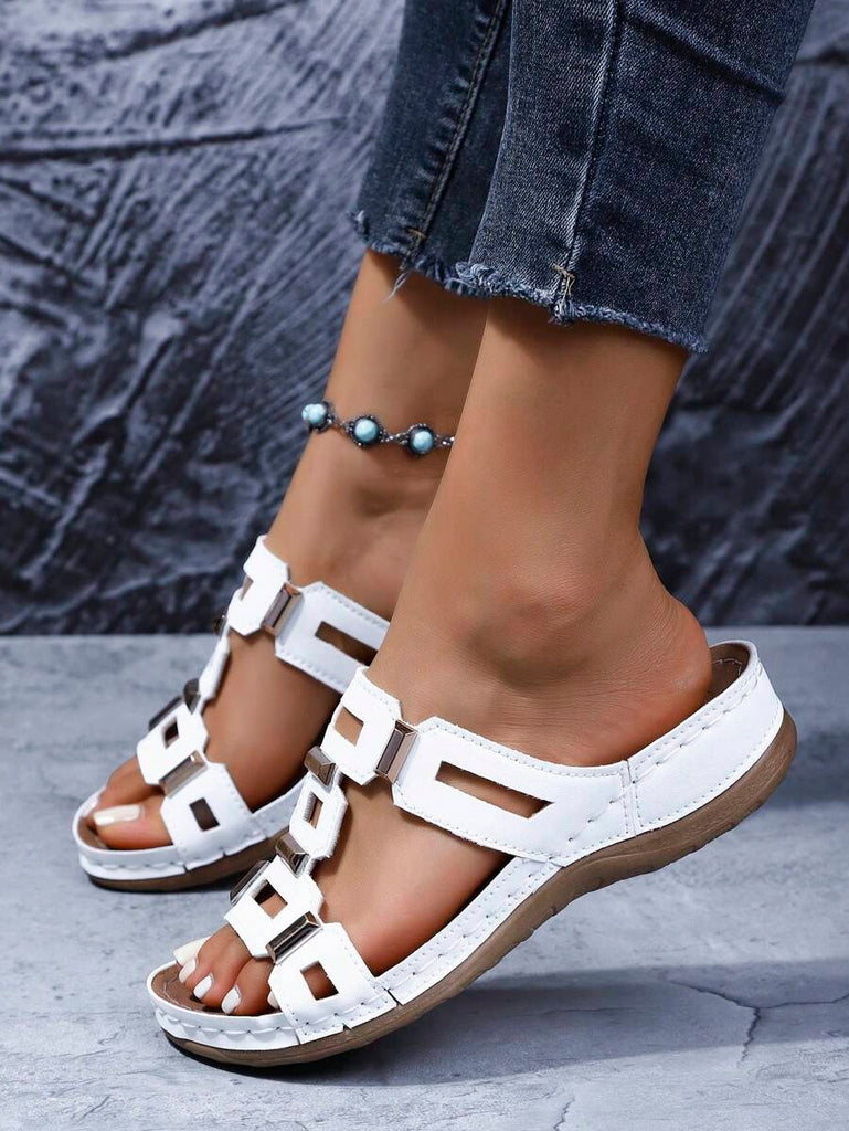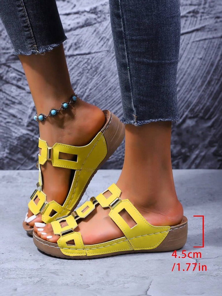 Women's Soft Bottom Thick Sole Studded Hollow Out Slippers