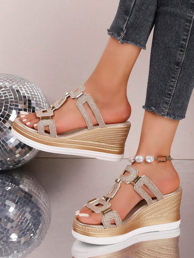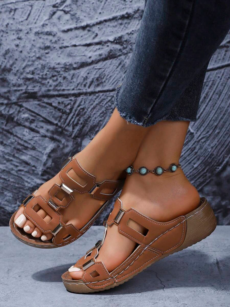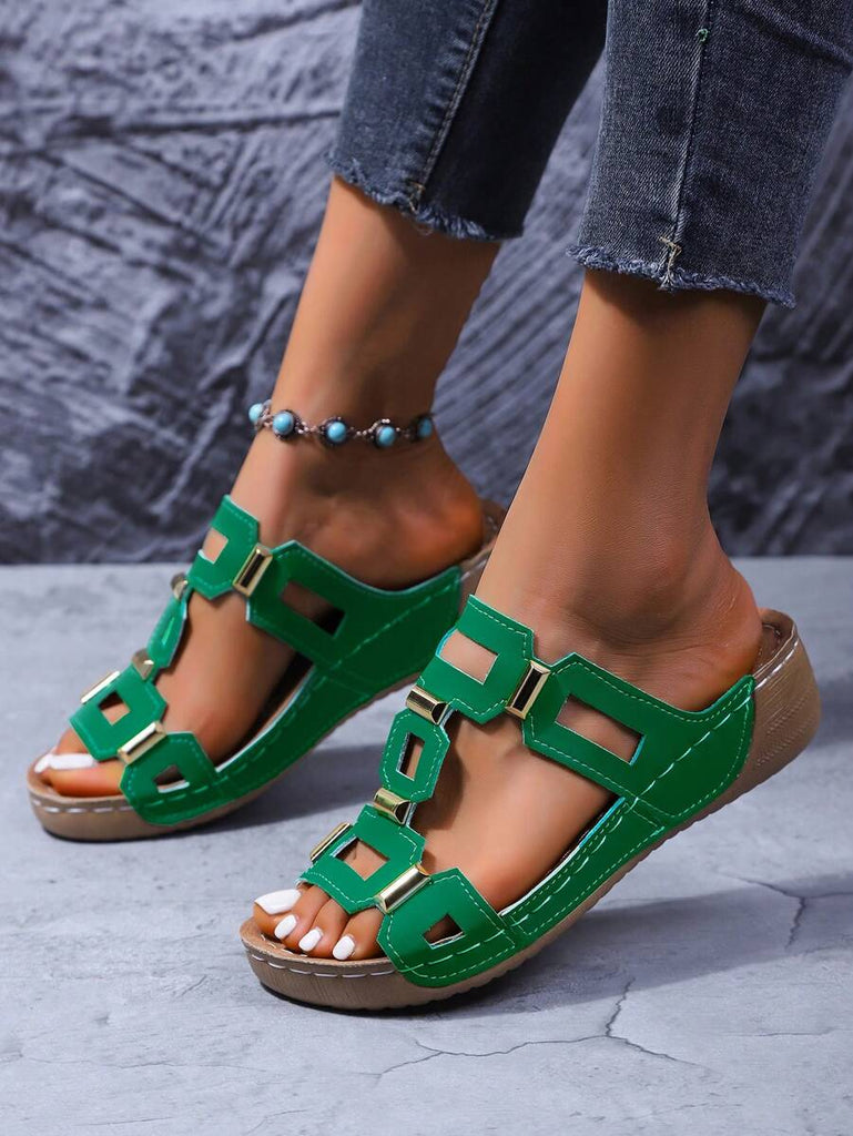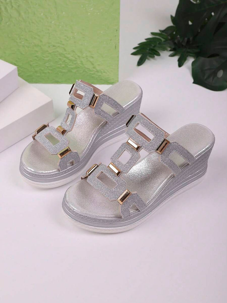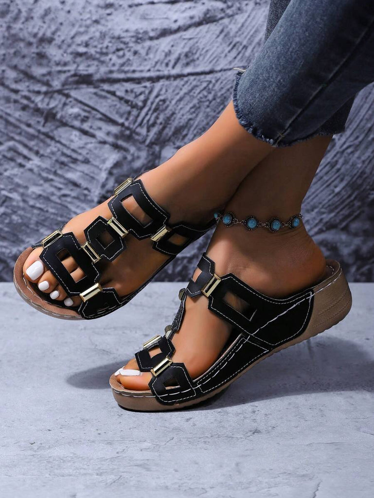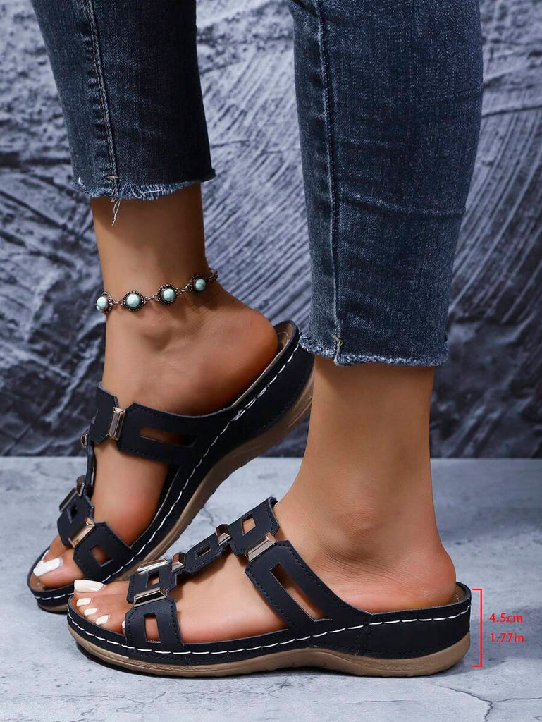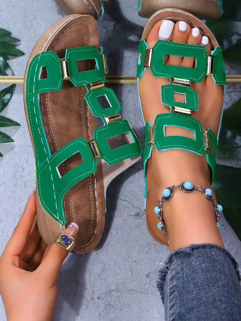 Women's Soft Bottom Thick Sole Studded Hollow Out Slippers