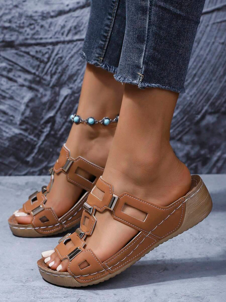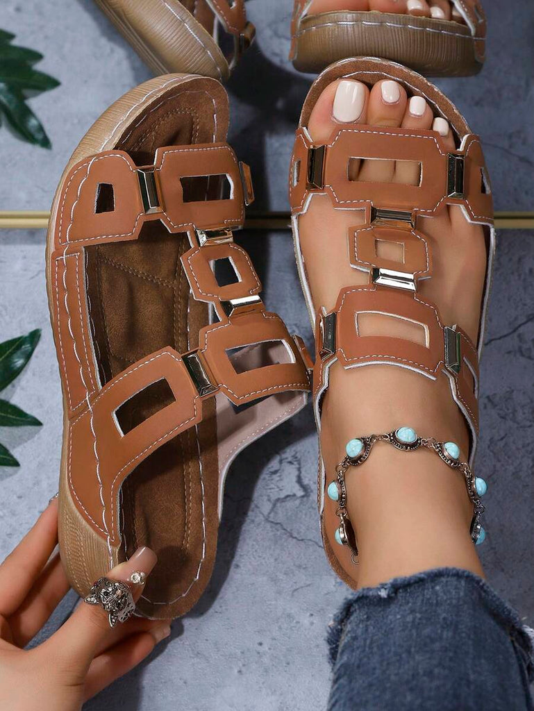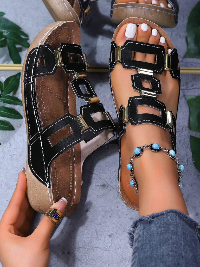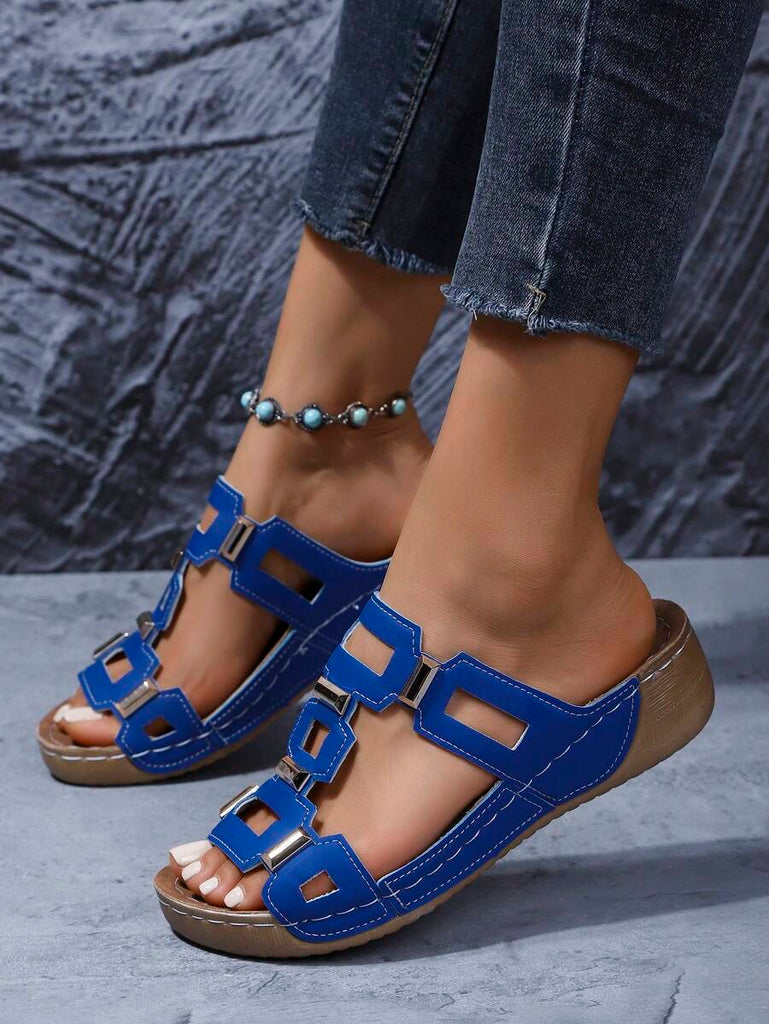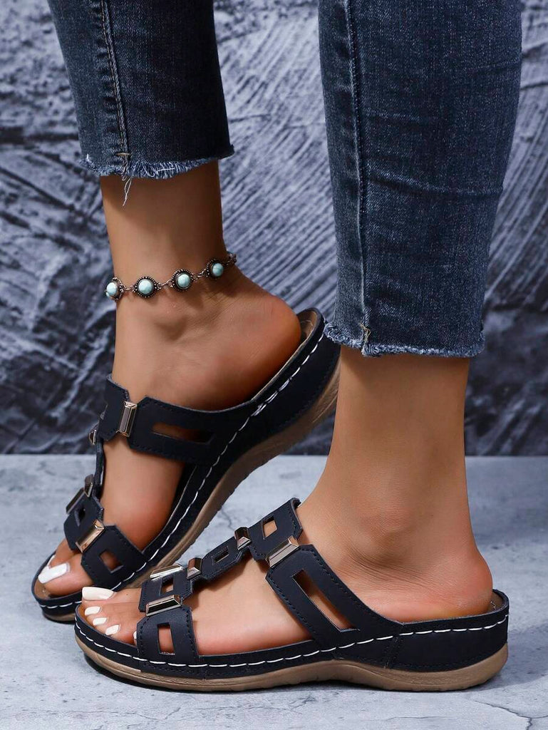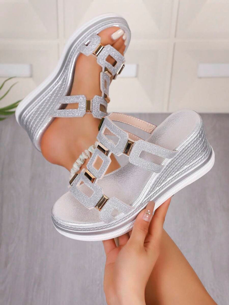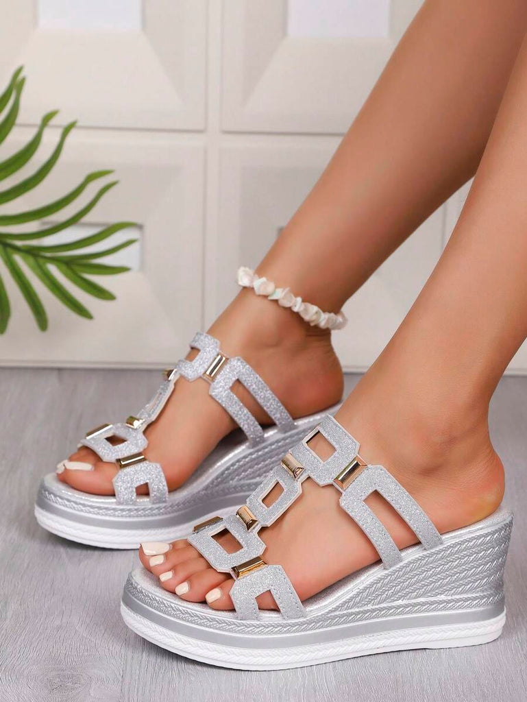 Women's Soft Bottom Thick Sole Studded Hollow Out Slippers