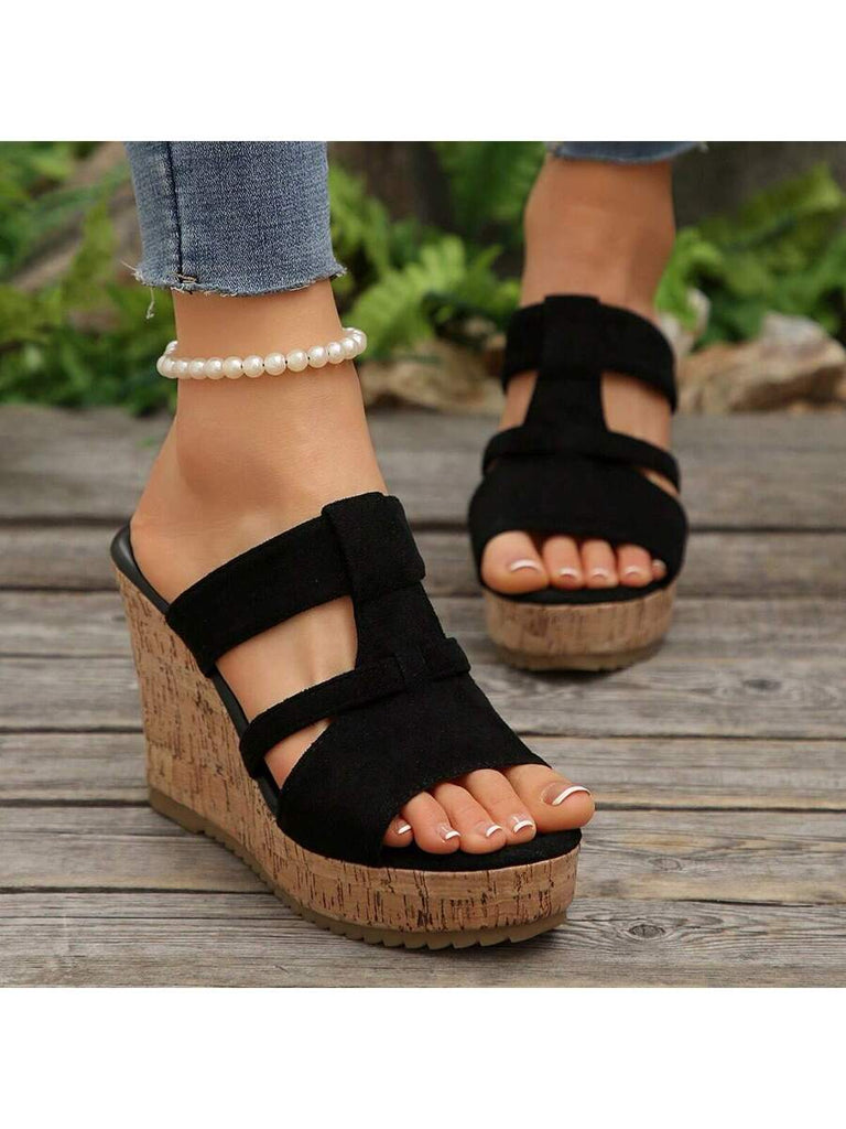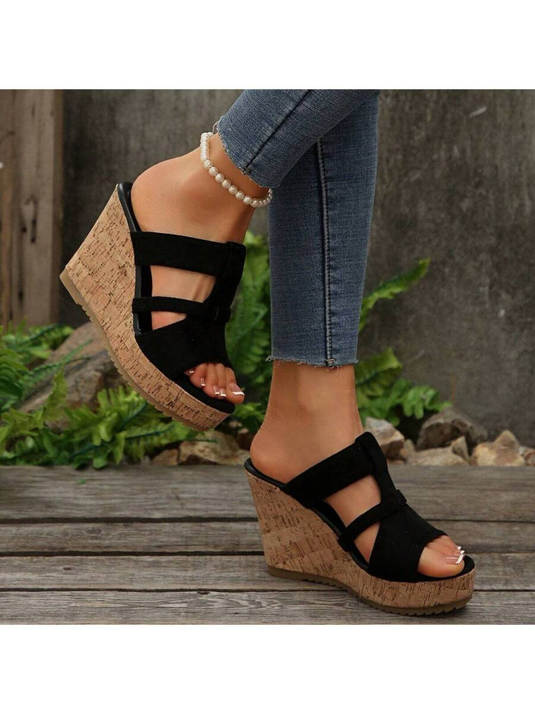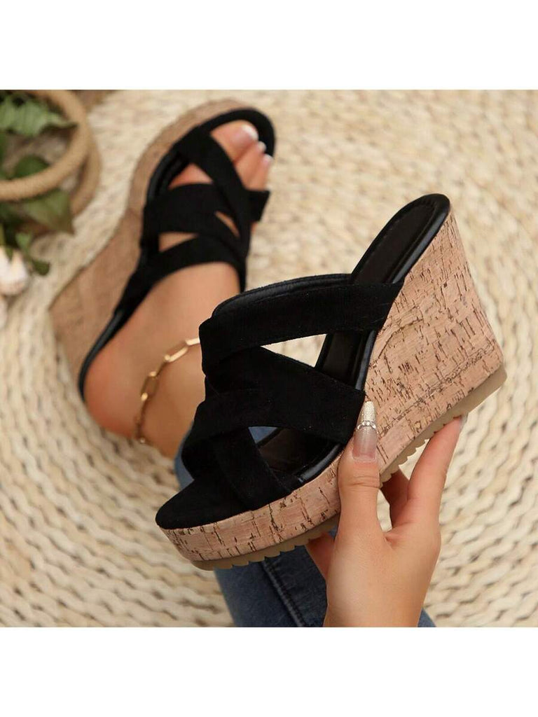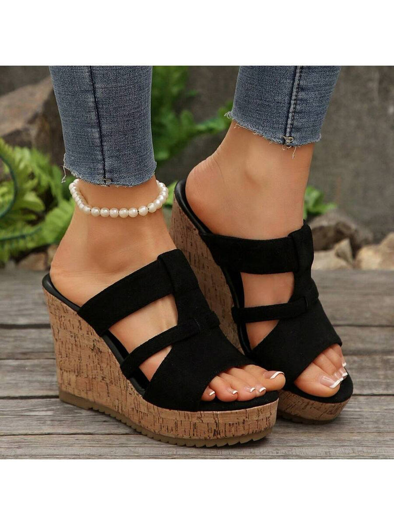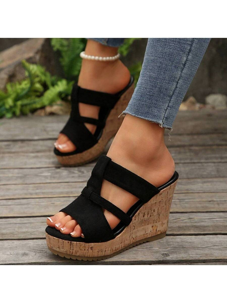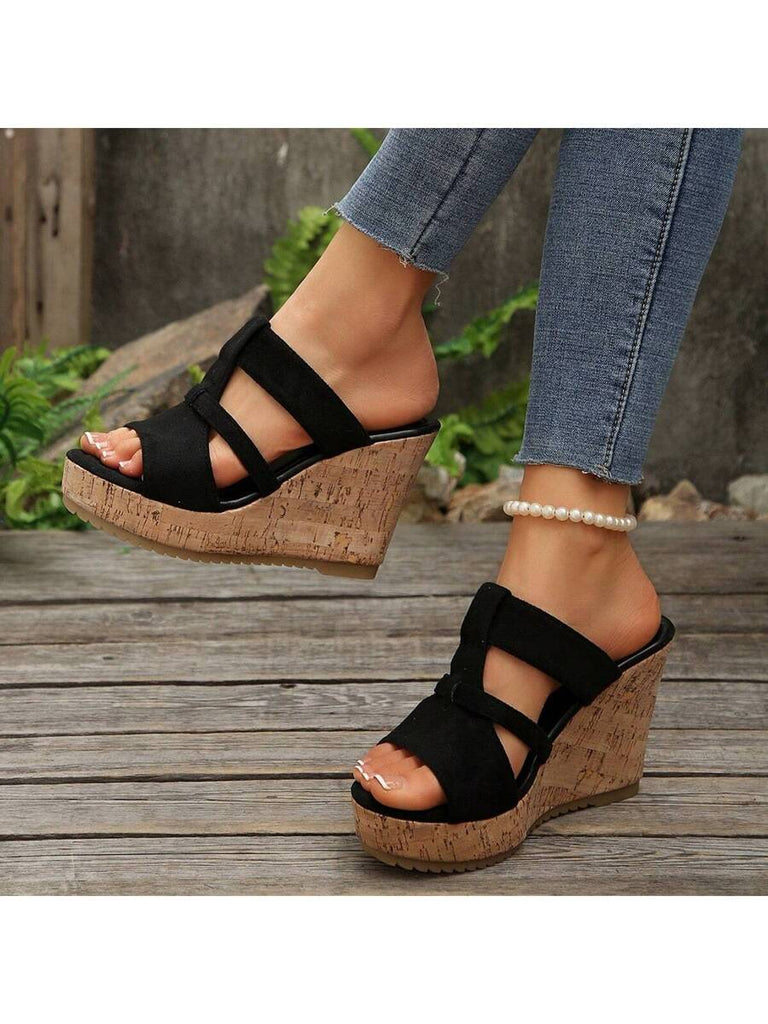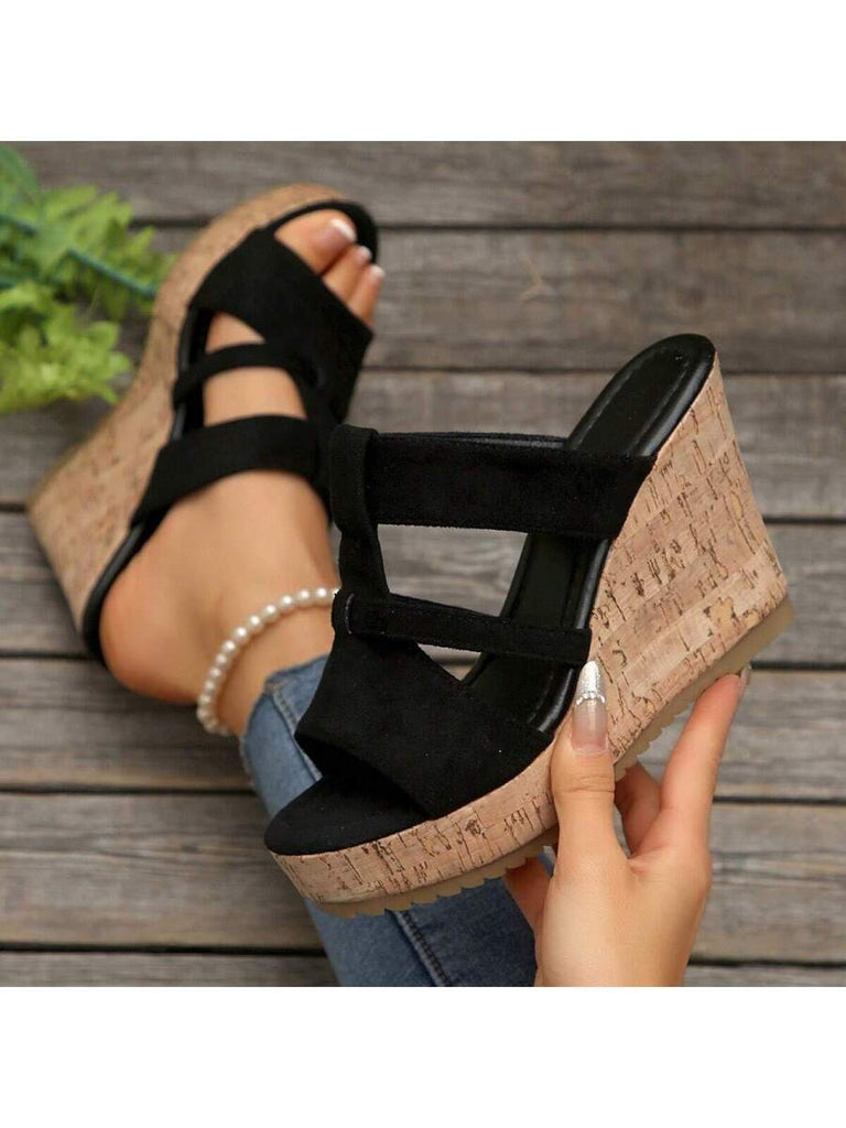 Women's Summer Thick Sole High Heel Wedge Sandals, Korean Fashion Slip-On, Platform Slide Sandals, Tree Bark Print
