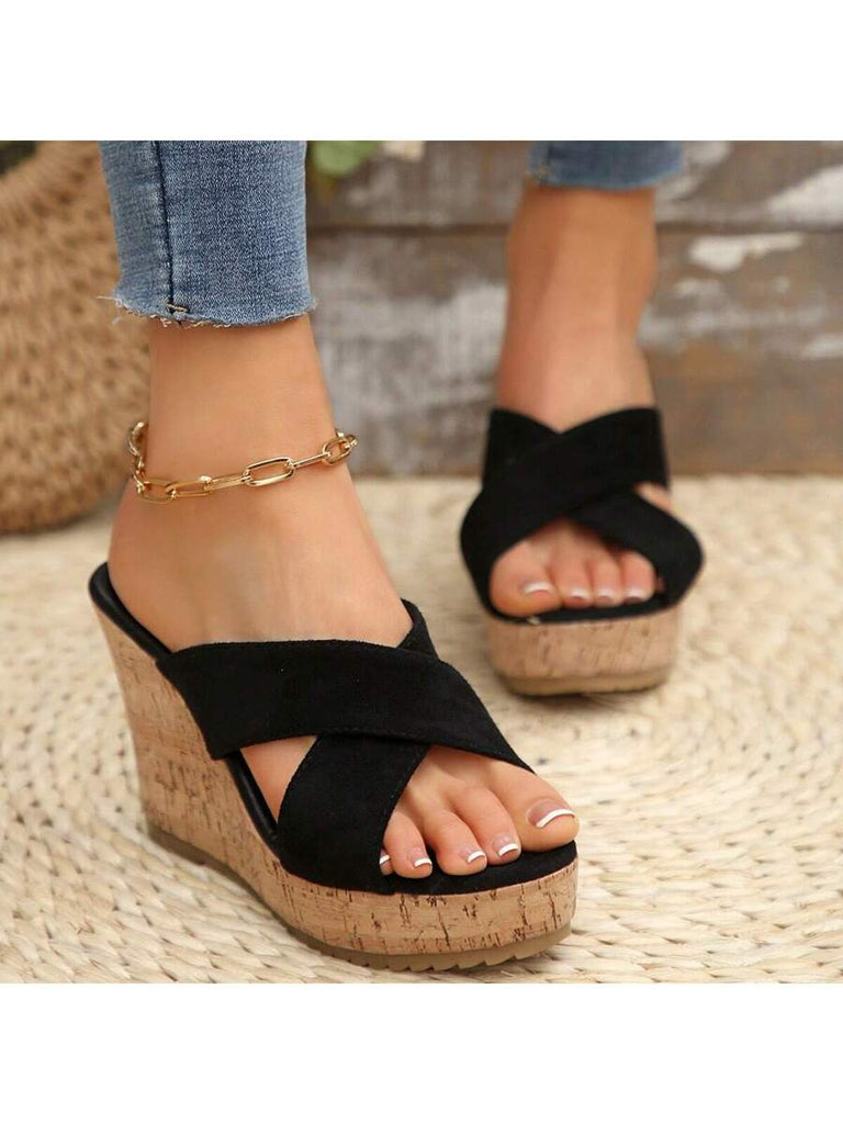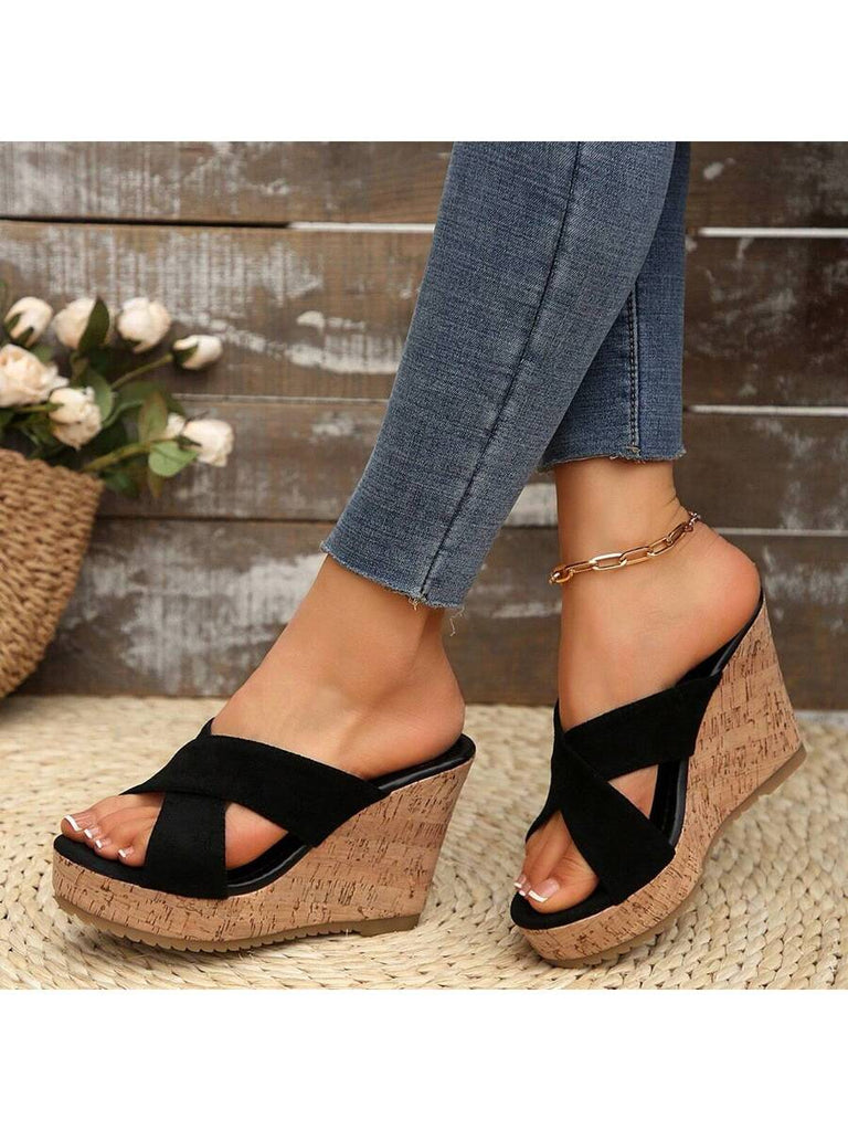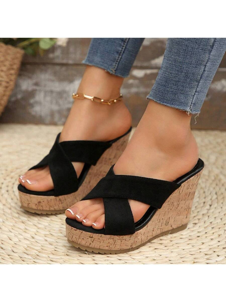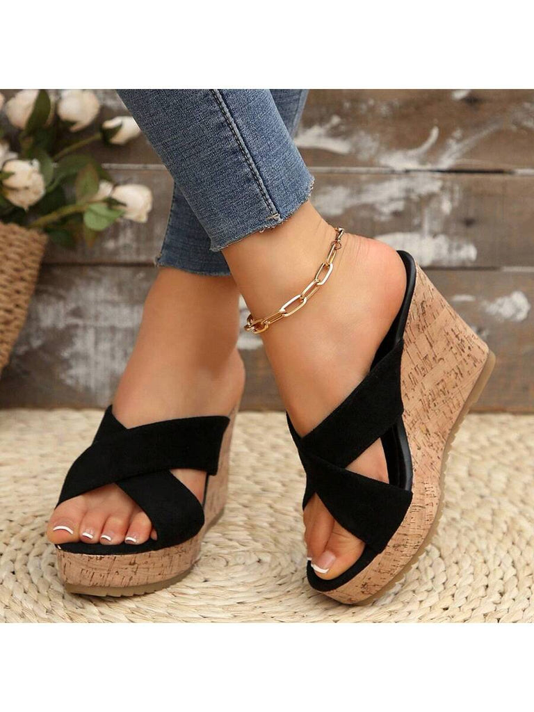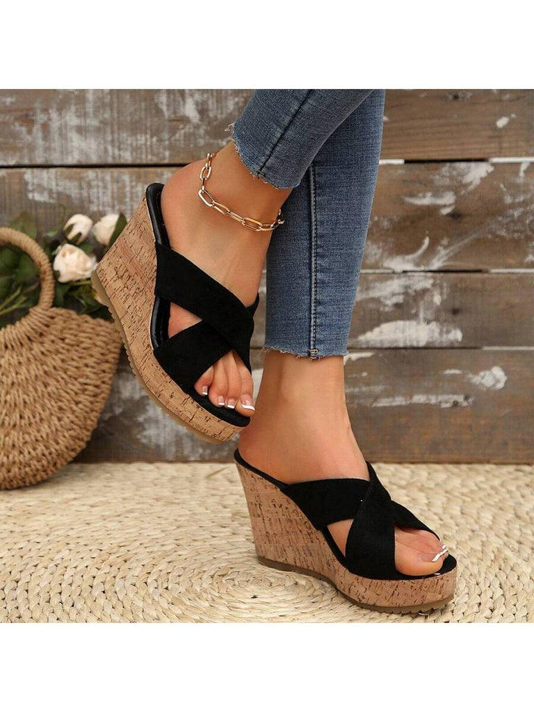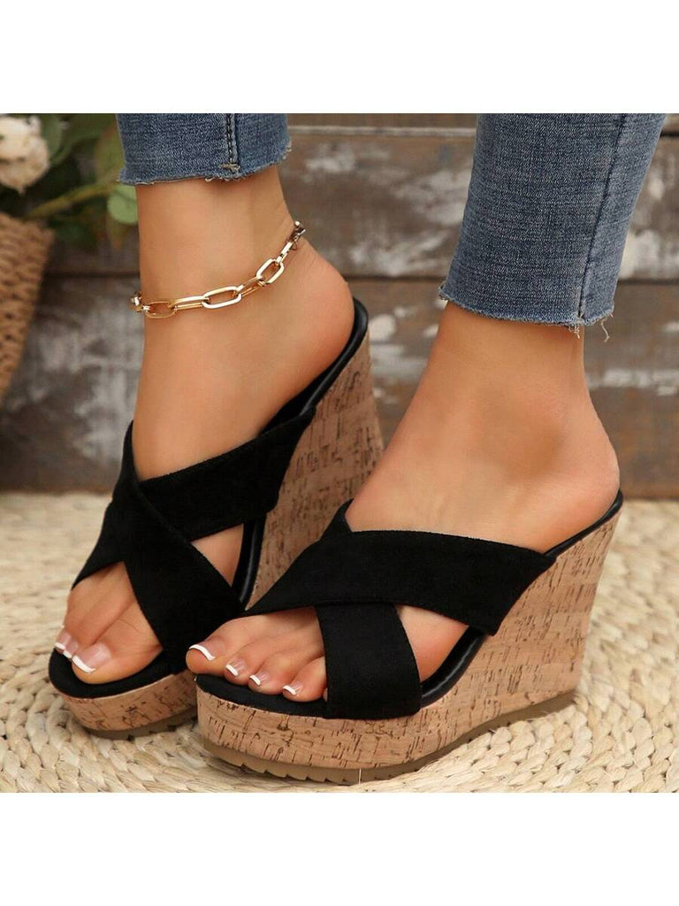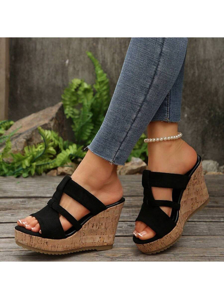 Women's Summer Thick Sole High Heel Wedge Sandals, Korean Fashion Slip-On, Platform Slide Sandals, Tree Bark Print