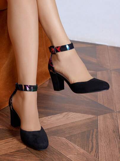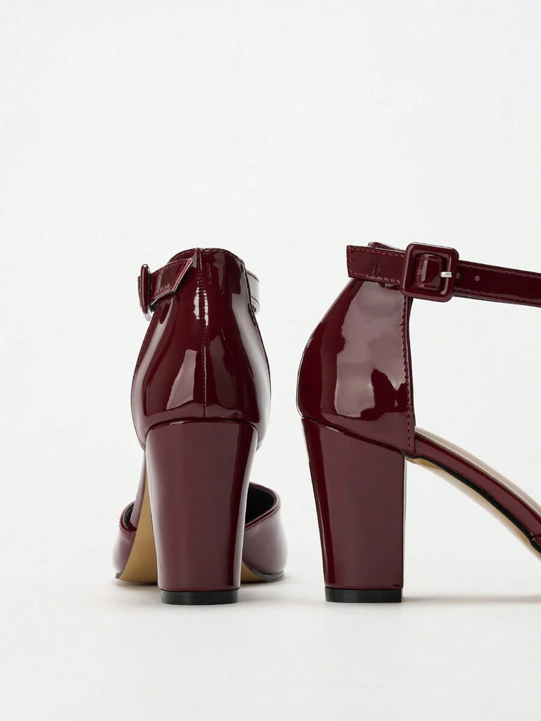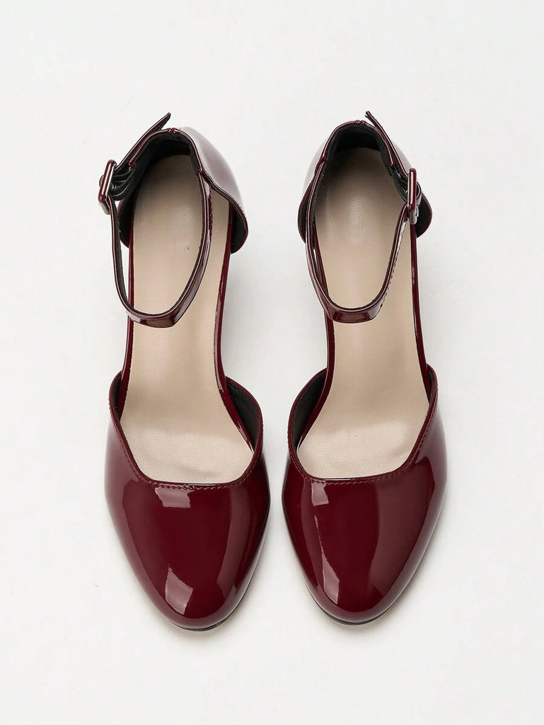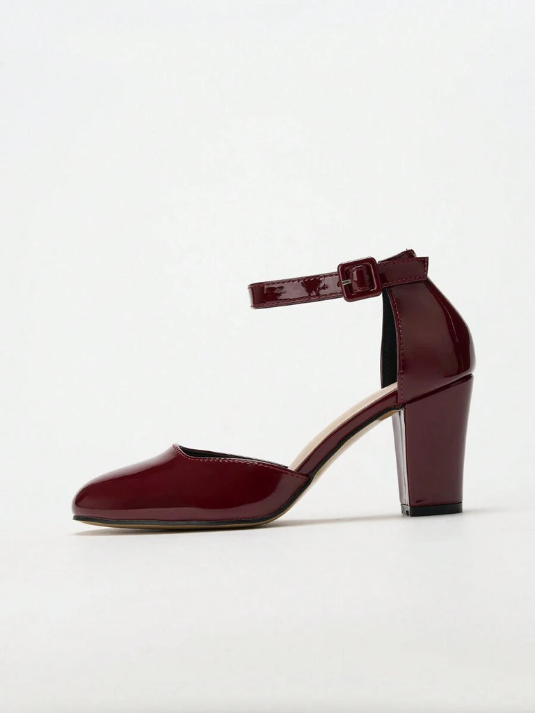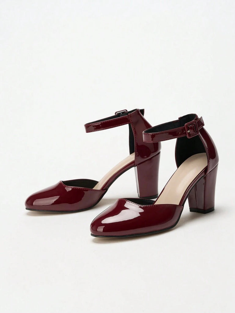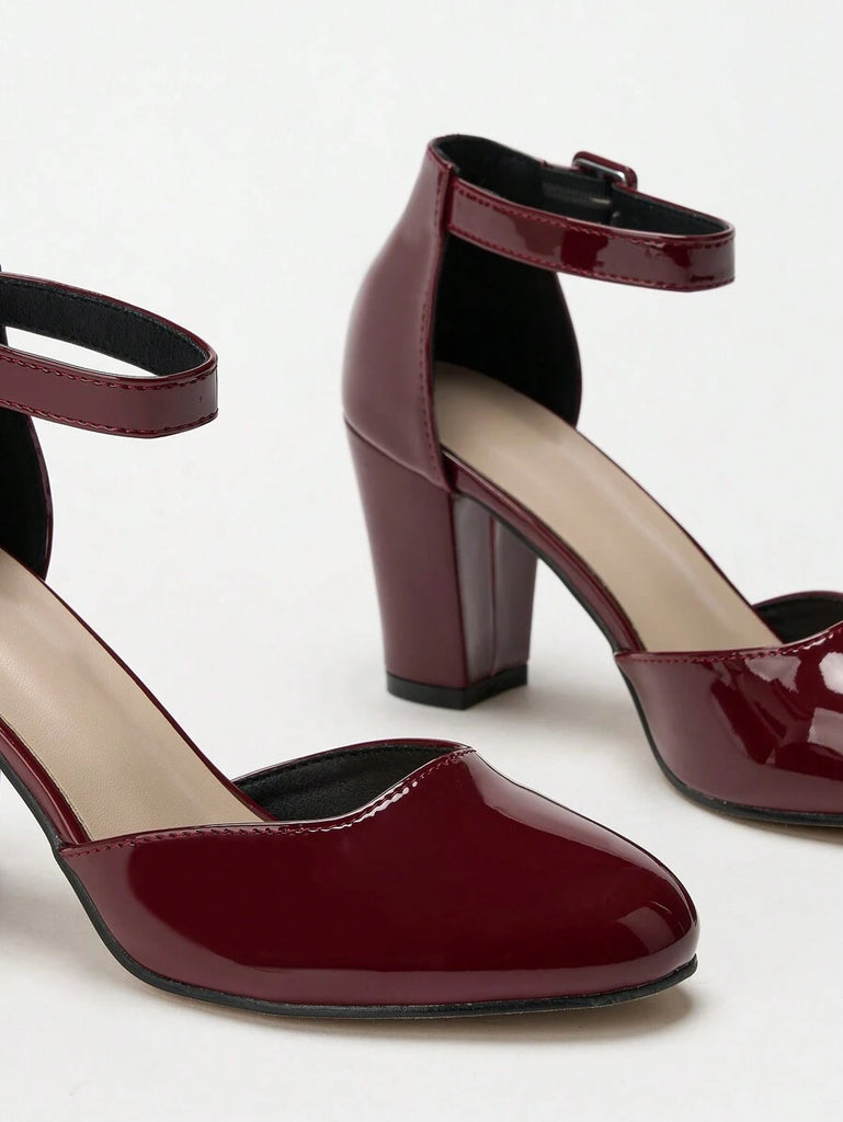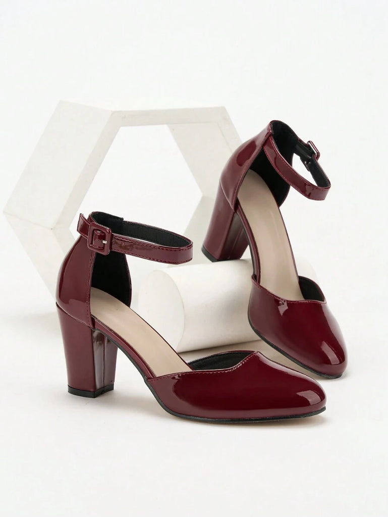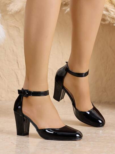 Women's Thick Heel Round Toe Hollow High Heels, Business/Commuting Silver Pumps