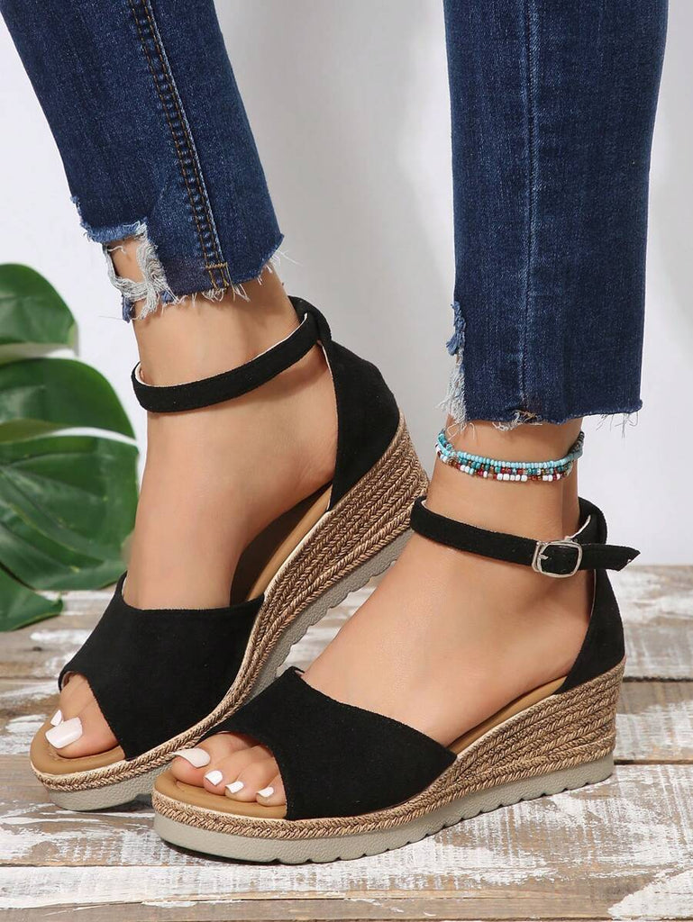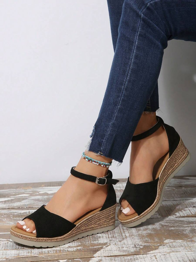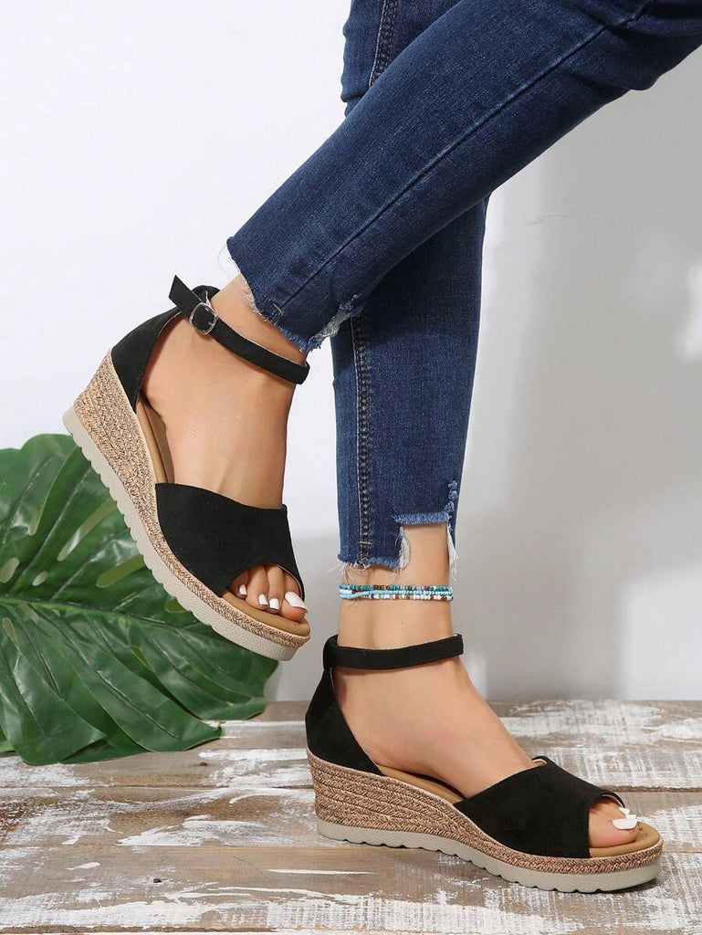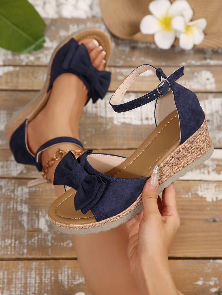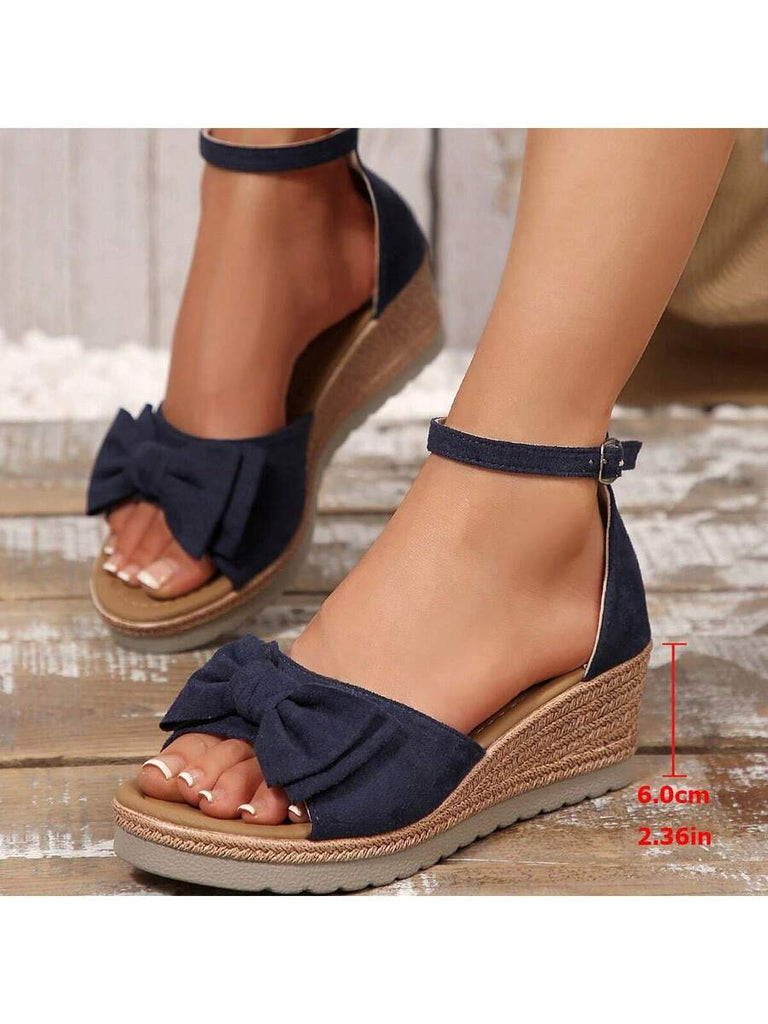 Women's Wedge Sandals With Bow And Espadrille Design - Ideal For Casual Outings