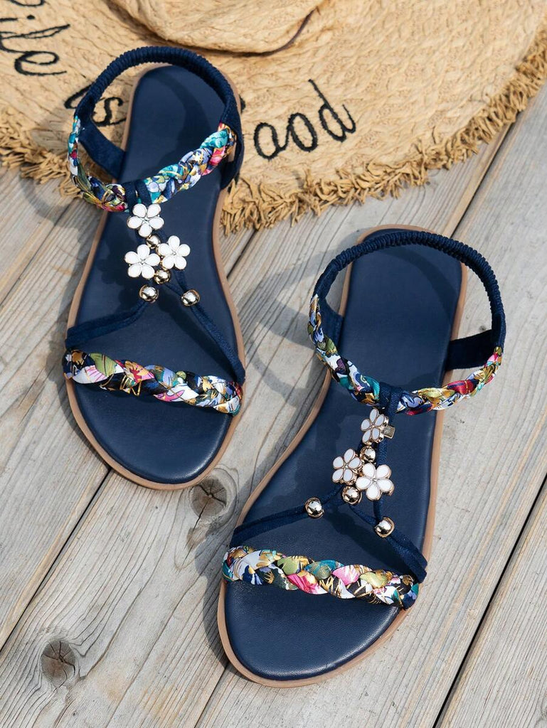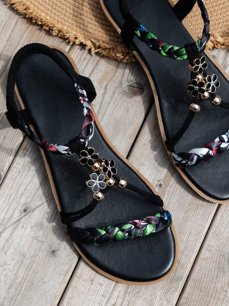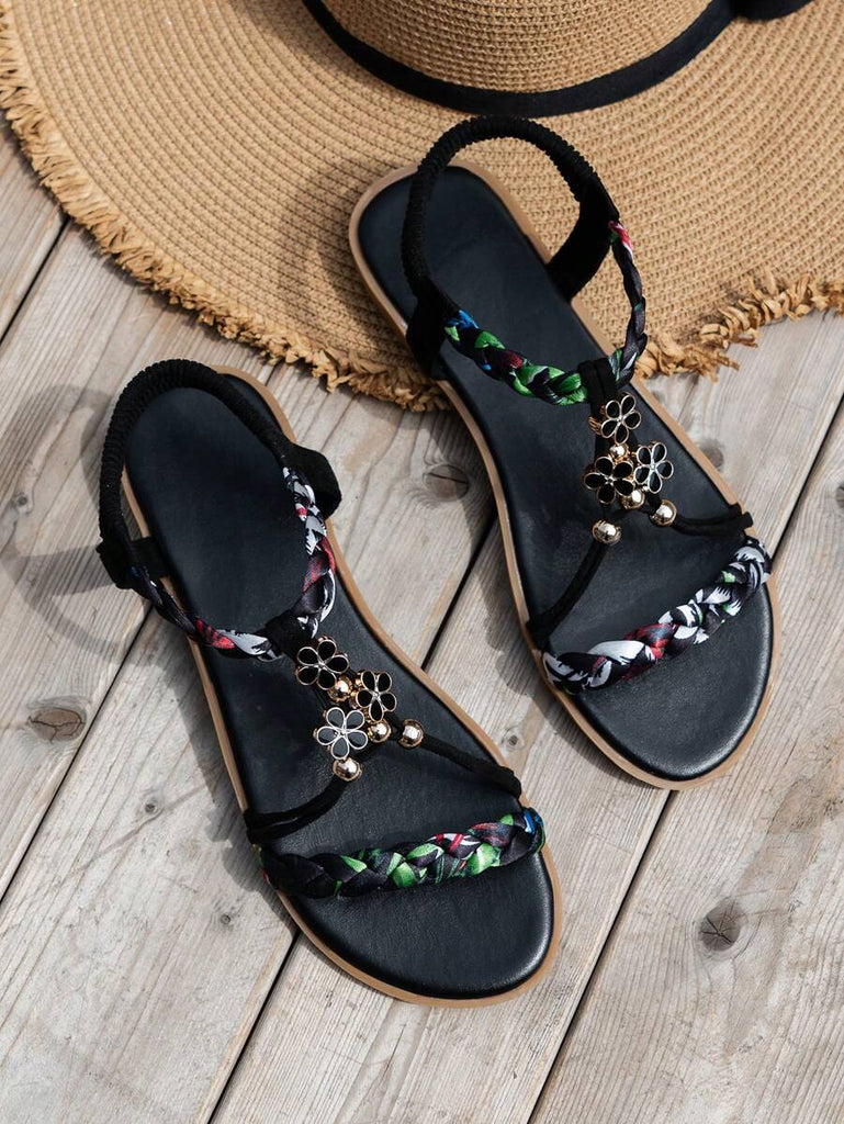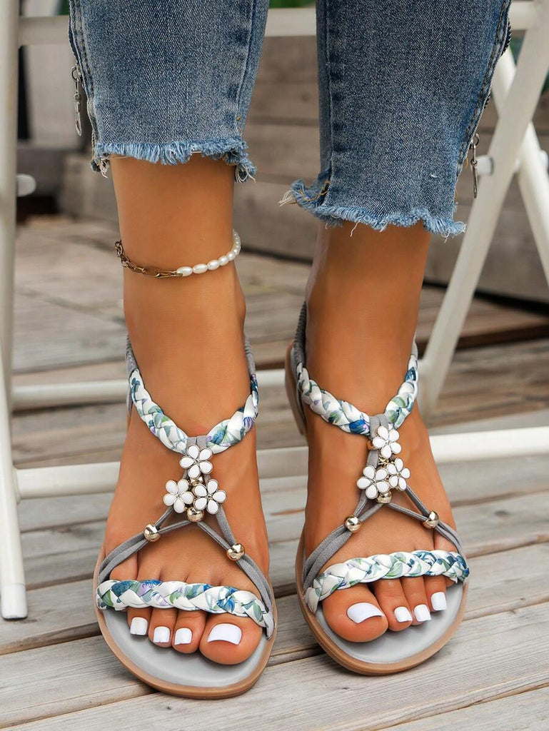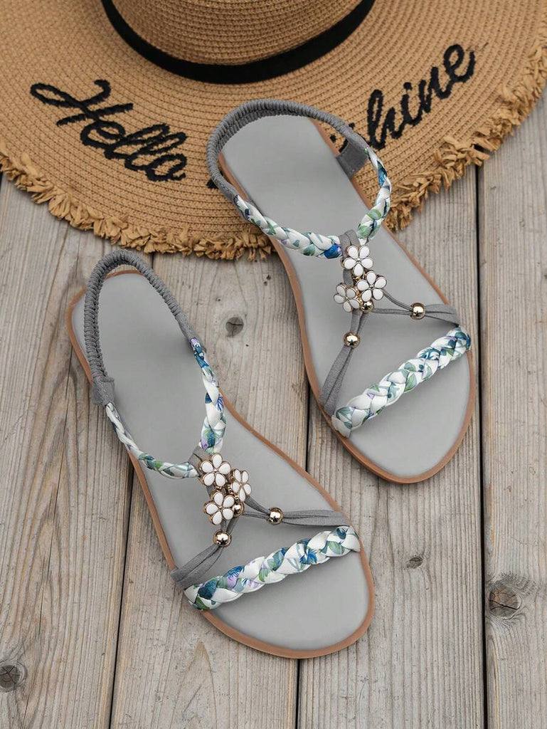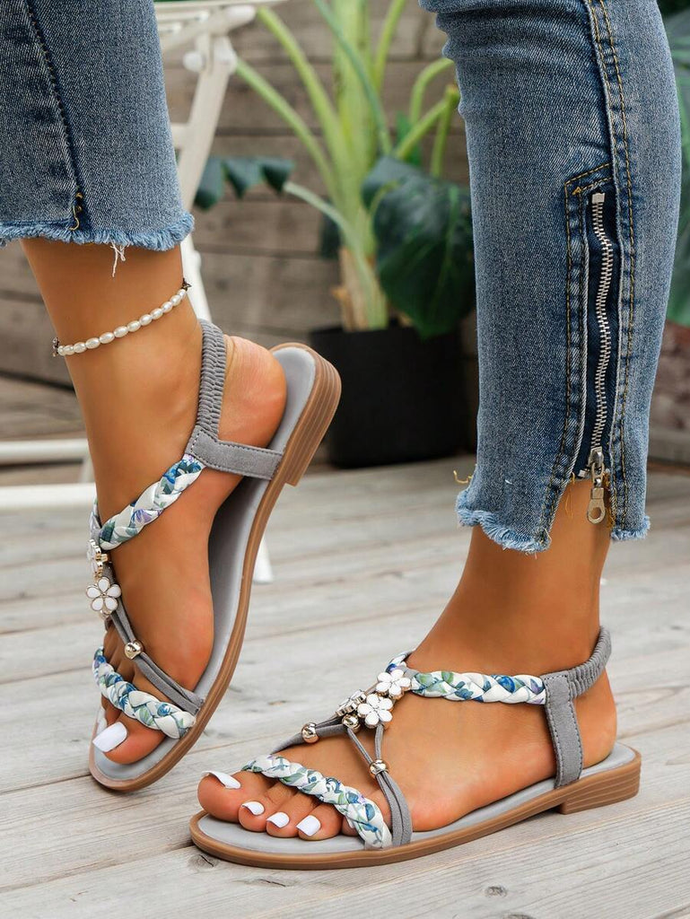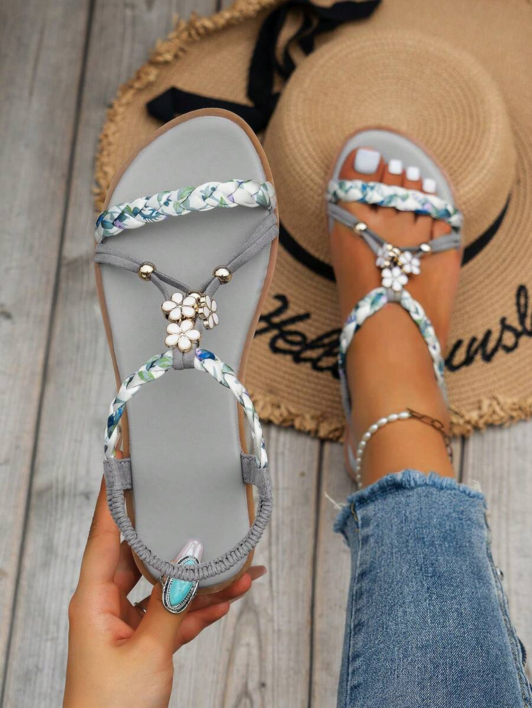 WRCVS Beige Women Summer Sandals Weave Casual Slip-On Shoes