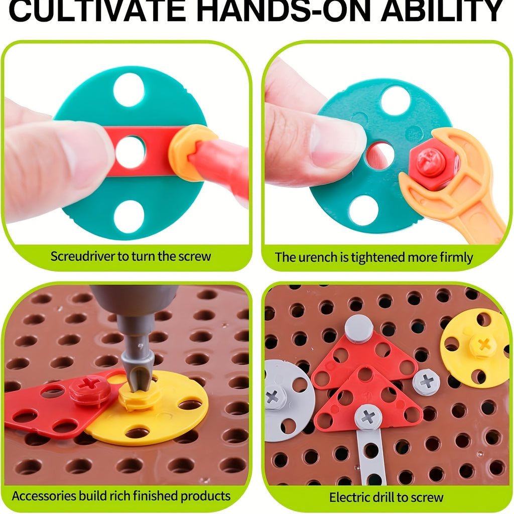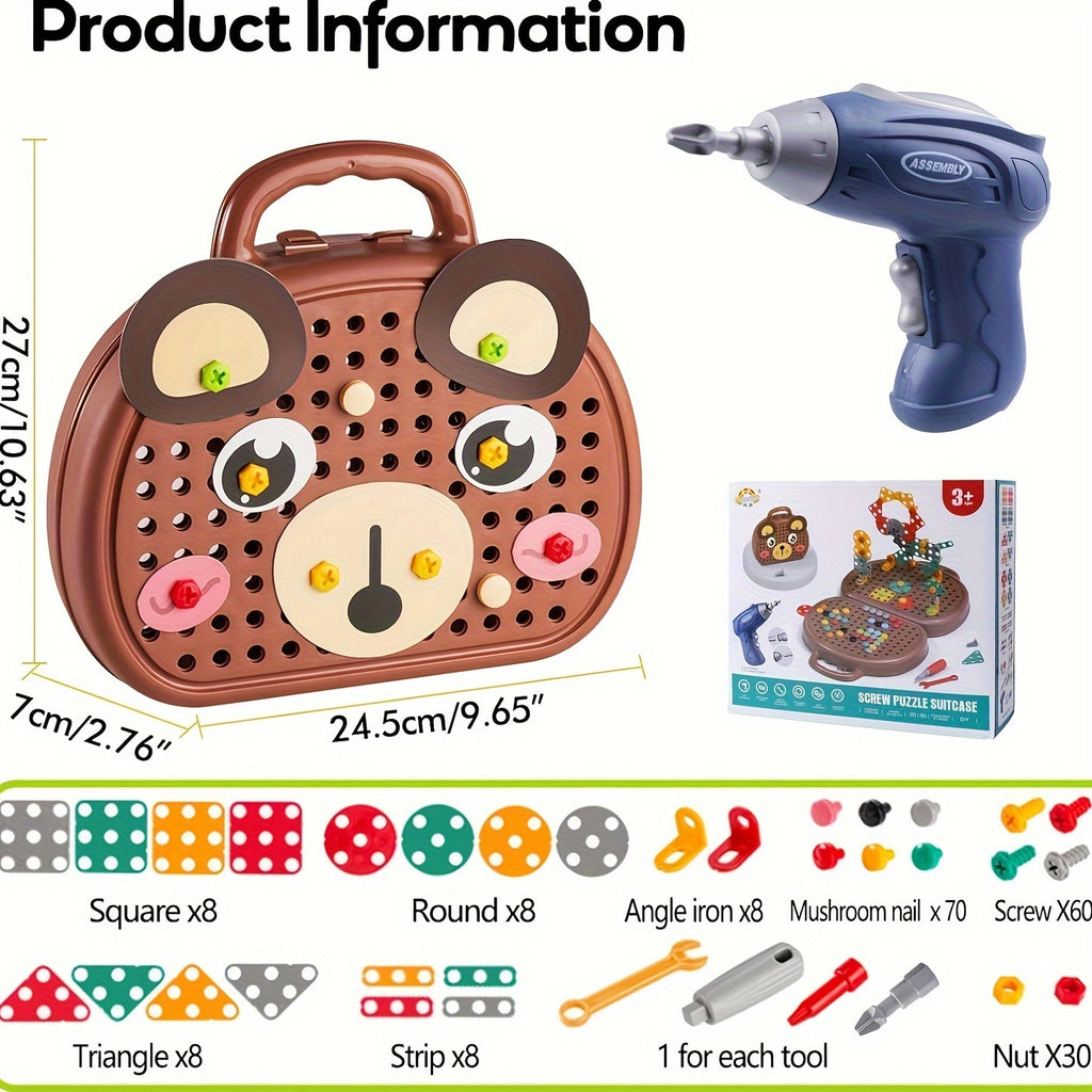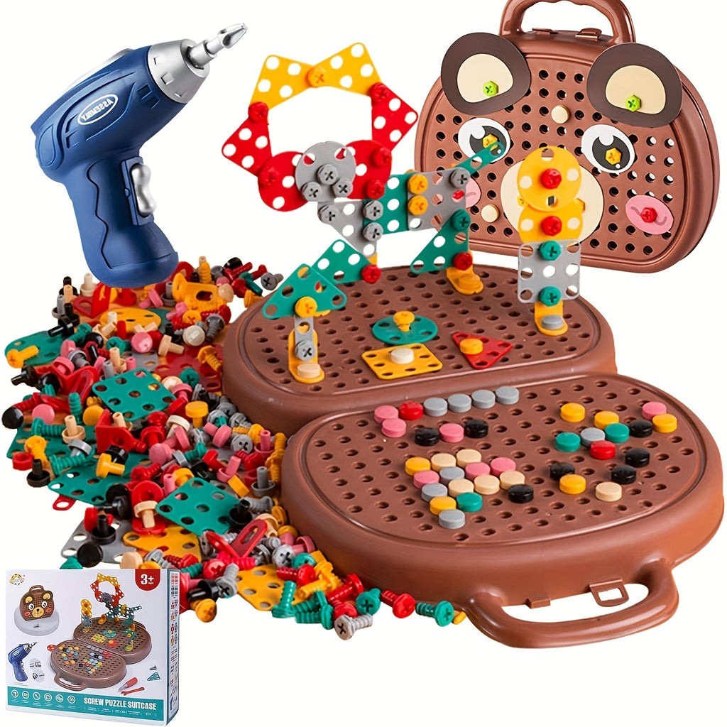 1 Set Magic Toy Tool Box, 203pcs Magic Toy Tool Box with Bear and Drill, 2D/3D Creative Tool Box Toy Gift Suitable for Youngsters Aged 3-12 Years Old Magic Toy Tool Packaging Box