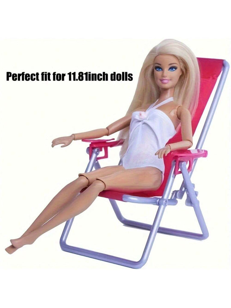 11.5inch/30cm Foldable Doll Beach Chair - Doll House Accessories And Toy Playset (Doll And Clothes Not Included),Dolls Chair,Dolls Accessories,Mini Doll Stuff
