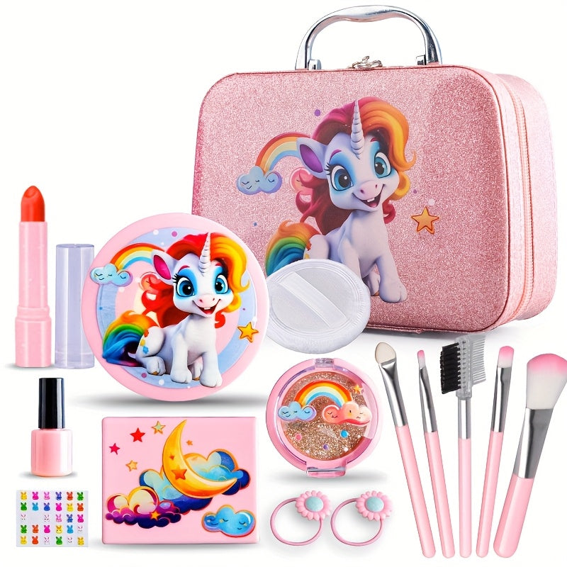 15pcs Pink Unicorn Cosmetics Toy Set - No Physical Cosmetics, Featuring Rainbow, Star And Cloud Designs, Durable Plastic, Perfect for Birthday, Christmas And Halloween Gifts, Suitable for Children