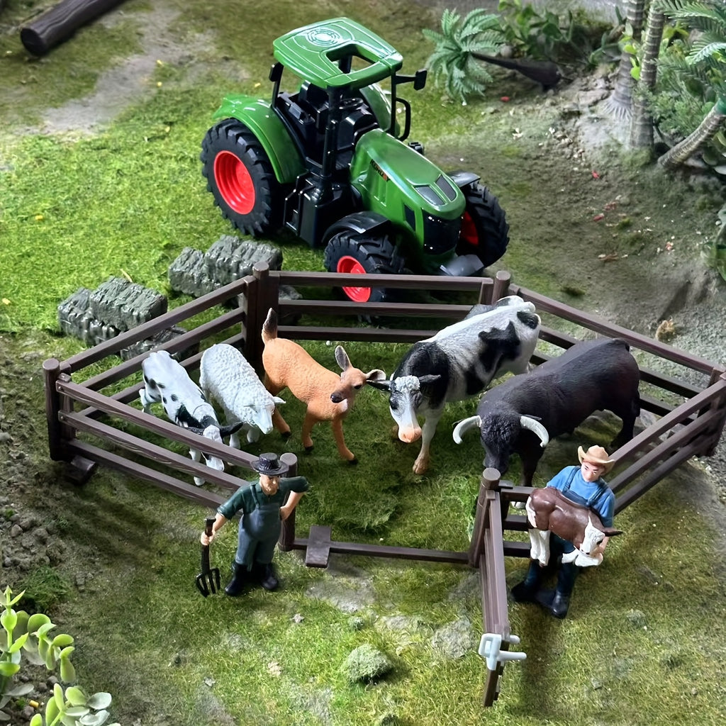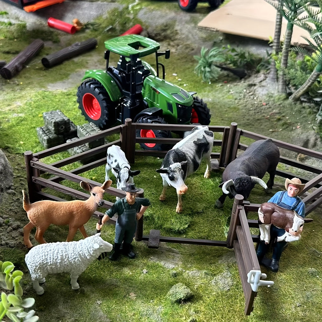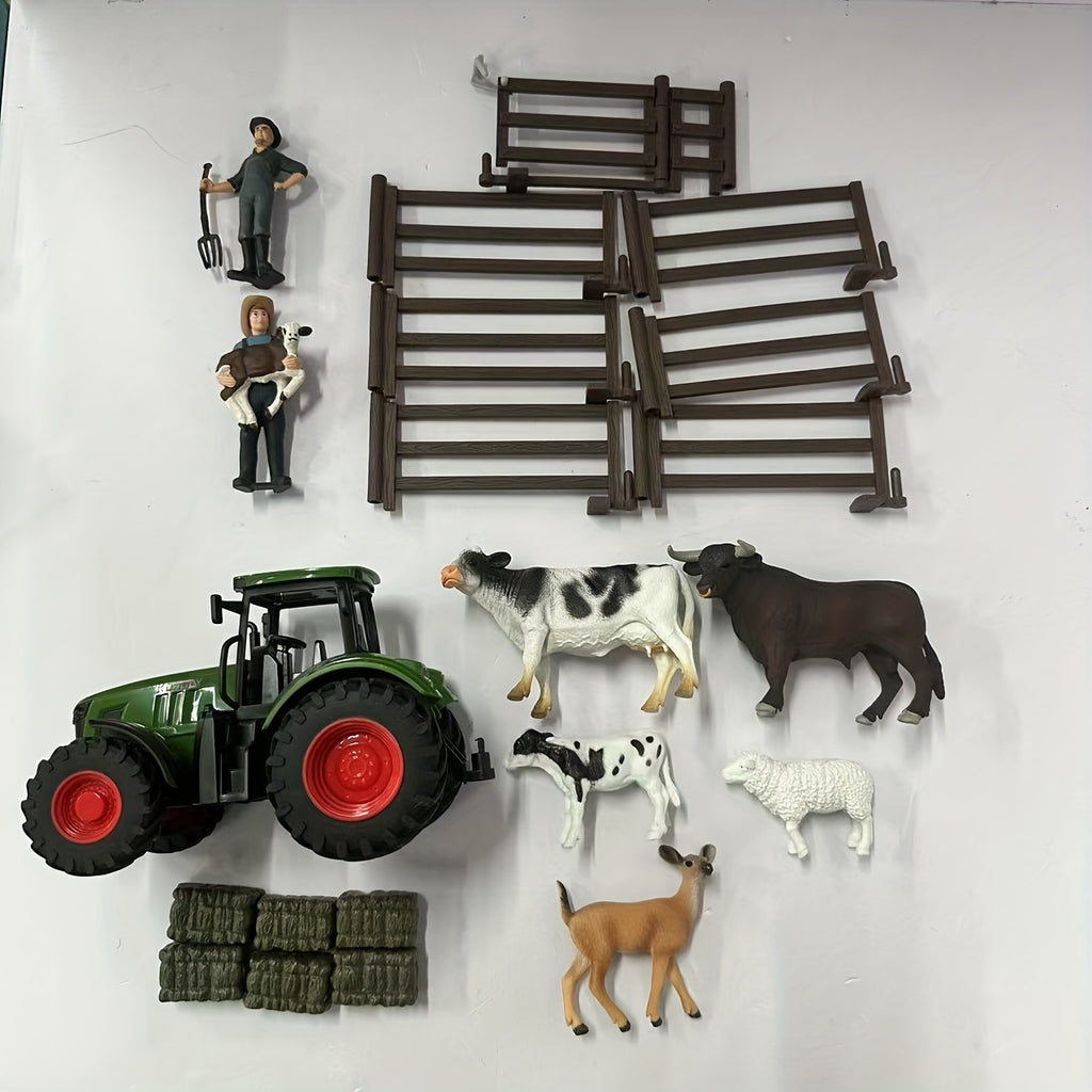 21pcs farm toy set, farm vehicle toys, with fence, multiple animals - cows, sheep, deer, suitable for entertainment, birthday gift
