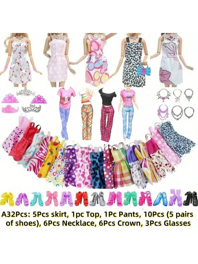 50pcs Doll Clothes & Accessories Fashion Design Kit Fit For 11.5 Inch Doll Costumes, Including 2pcs Wedding Dresses, 10pcs Suspender Skirts, 3pcs Swimsuits, 10pcs Hangers, 10prs Shoes, 5pcs Glasses