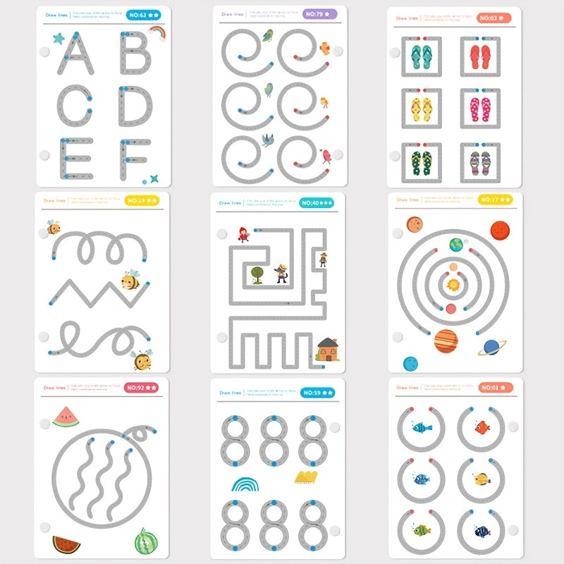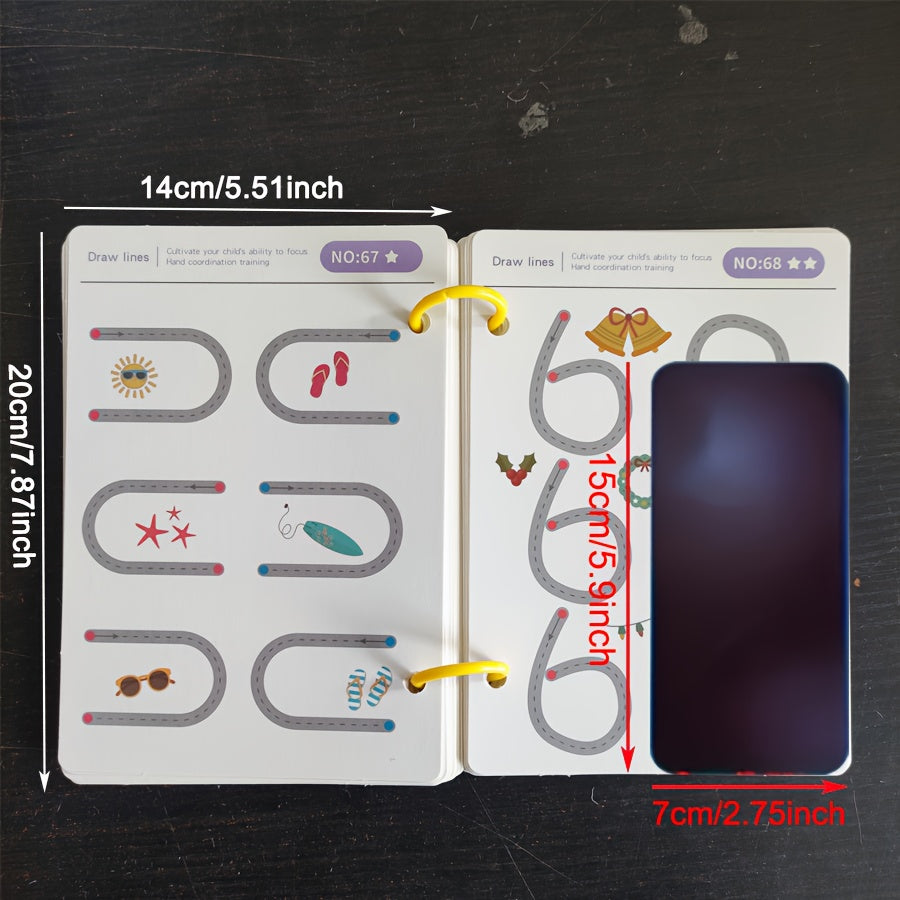 96 Pages Reusable Control Pen Training Books,8 Pens,Puzzle Education Workbook,Learning Writing Skills Development,Concentration & Motor Skills Development,Ideal Christmas,Halloween,Birthday Gifts