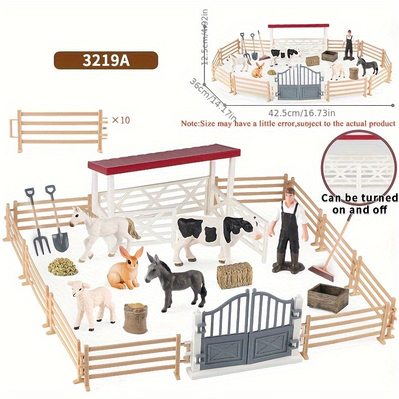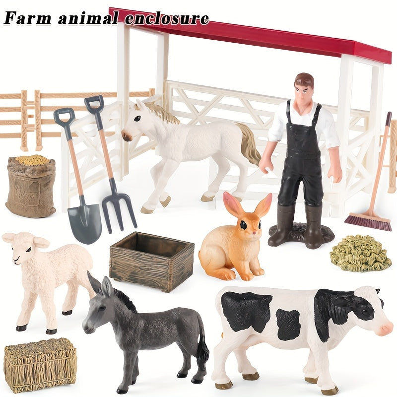 A Fun Simulation Farm Set Made from Durable PVC Material Featuring Solid Animals And Farmers, Including Ponies, Horses, Sheep, Rabbits, Cows, And Donkeys, Along with Ranch Tools. It'S a Playhouse That Promotes Cognitive Development And Serves As an Ideal