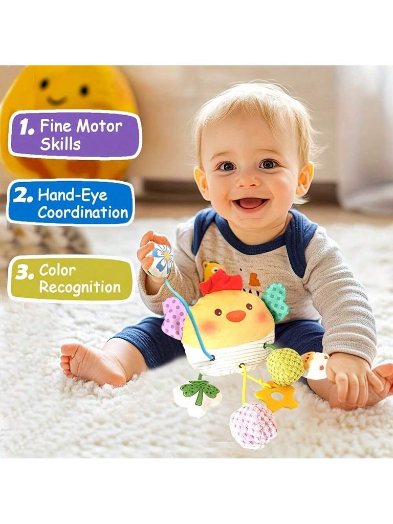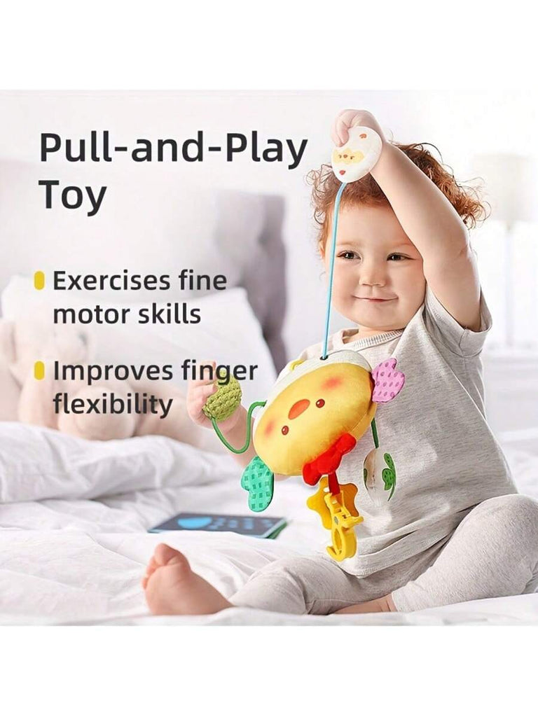 Crab & Chick Pull String Toy - Soft & Cute Baby Plush Chick Pull Toy, Suitable For Crib Hanging And Early Education, Teen Bed Toy | Colorful Teen Toy | Plush Polyester Toy