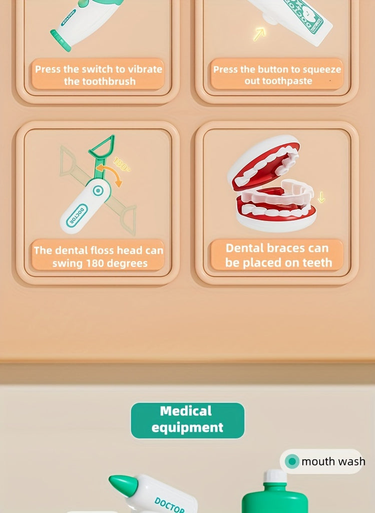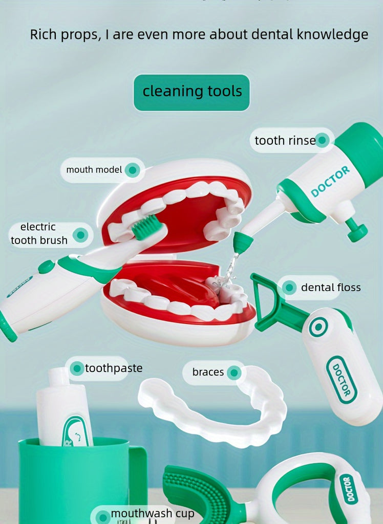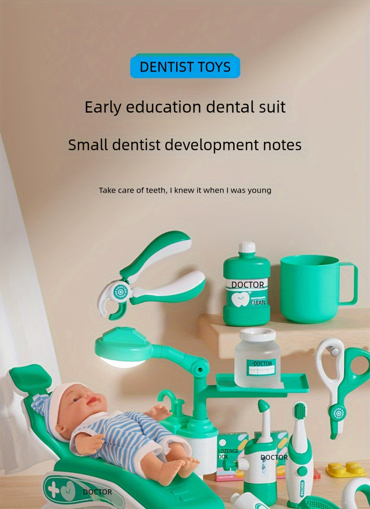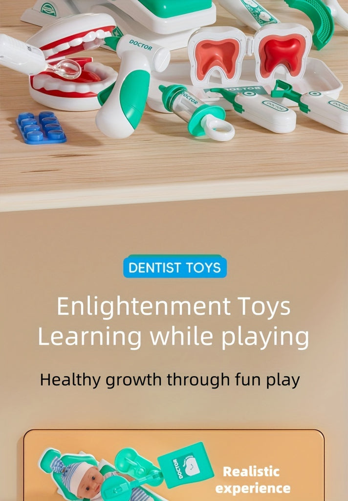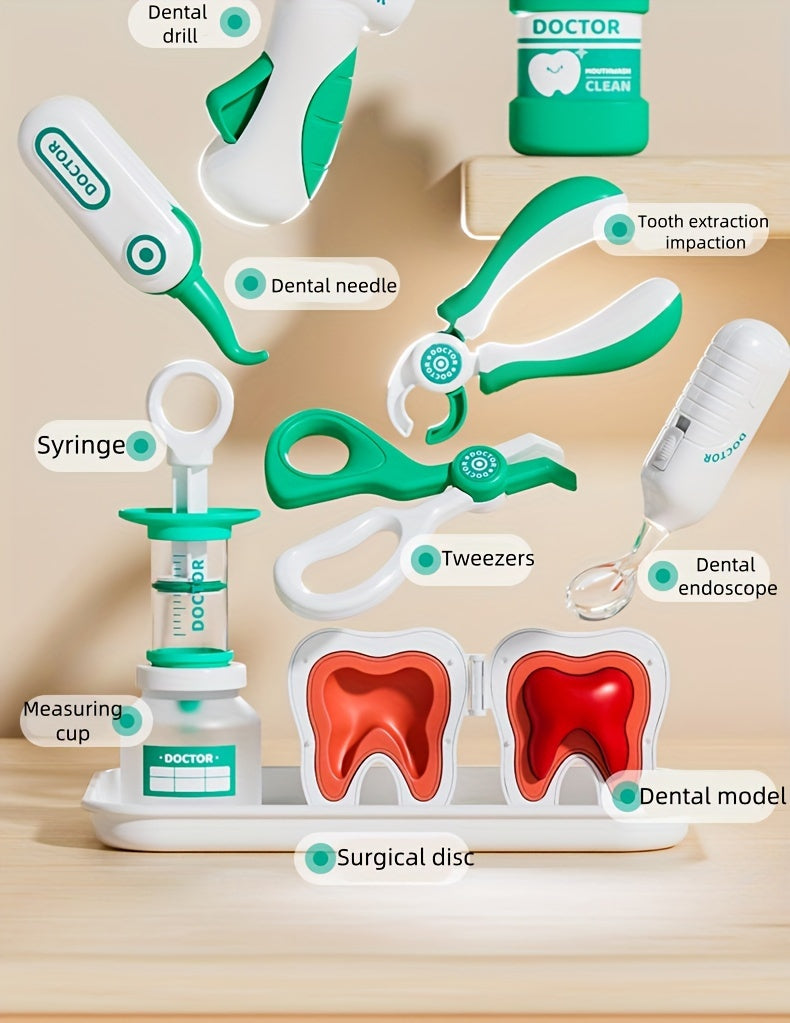 Deluxe 17pcs Dentist Playset for Youngsters - Green, Includes Dental Tools & Accessories, Perfect Pretend Doctor Toy Kit for Boys & Girls Ages 3-5 Dentist Toy Set