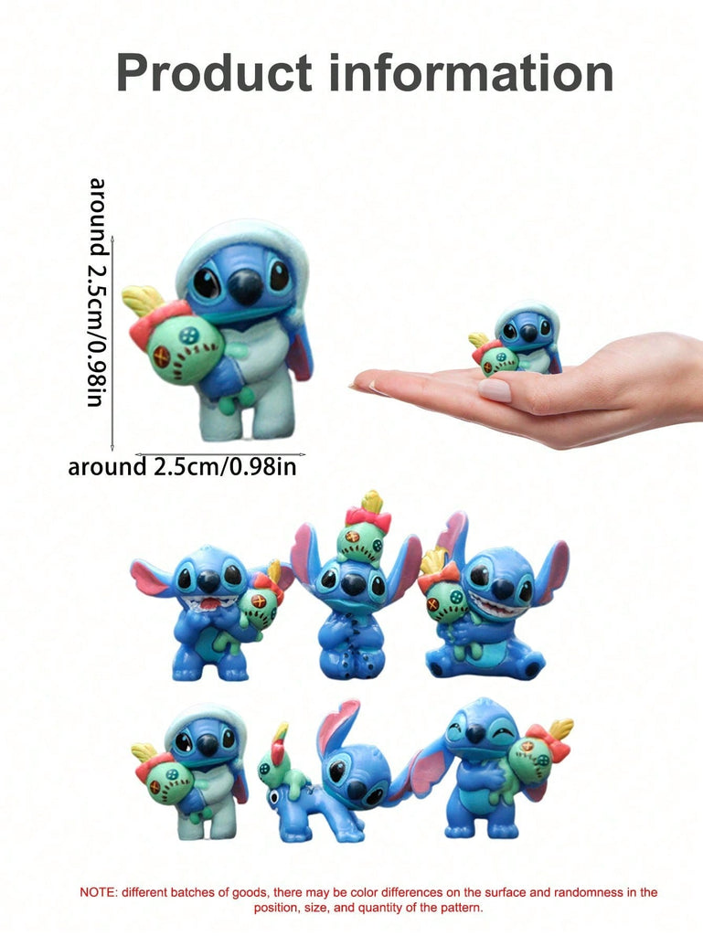 Disney 6Pcs/Pack Kawaii Stitch Cartoon Action Figures Toys Lilo & Stitch Model Desk Top Decoration Doll Anime Collection (Some Parts May Be Random) (Stitch Style Are Random)
