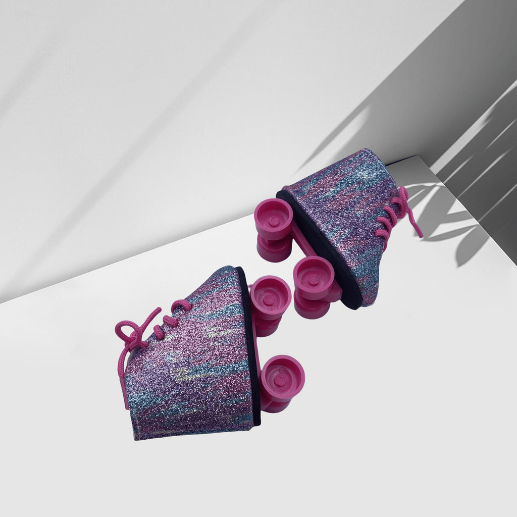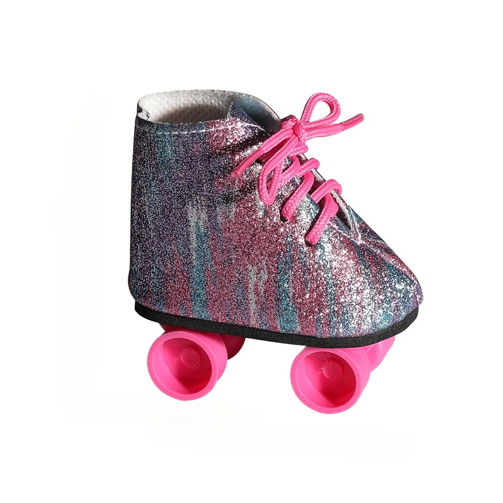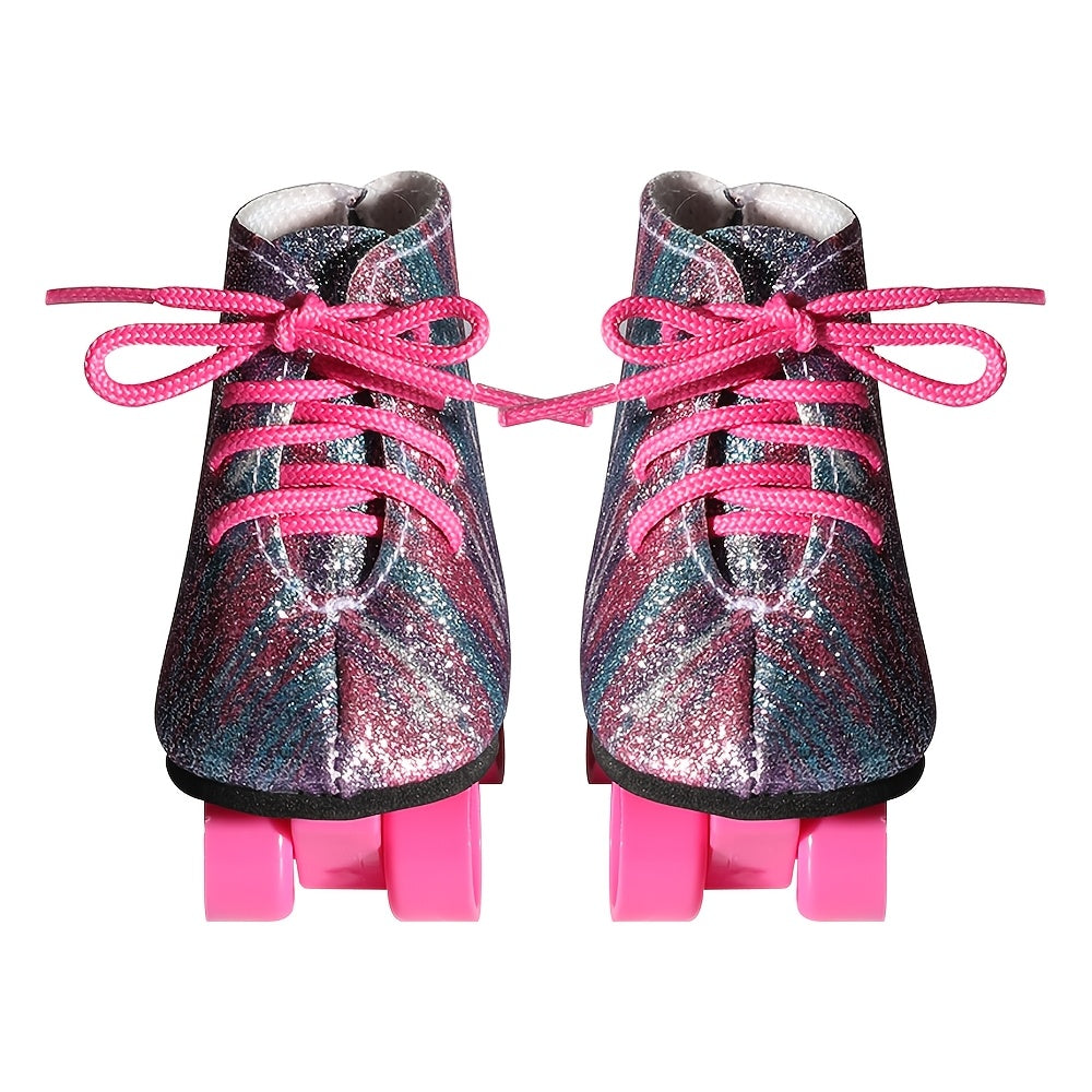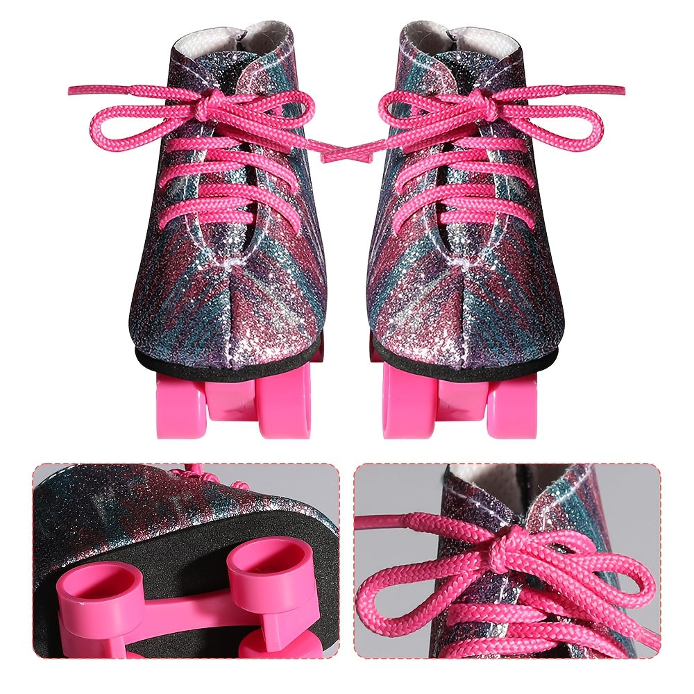 Handmade 18-Inch Doll Skates, PU Leather, Pink & Purple Ombre Design with Black Wheels, Durable Realistic Look – Perfect for Halloween, Christmas, Birthday Gifts, Cute Doll Accessories