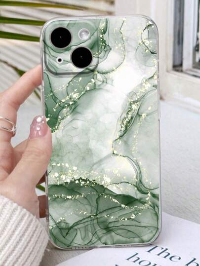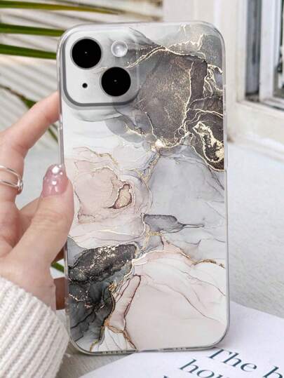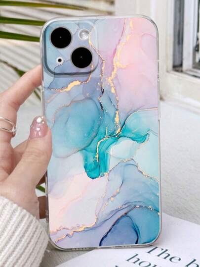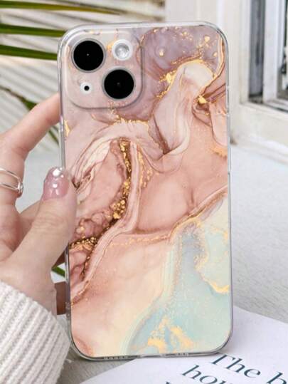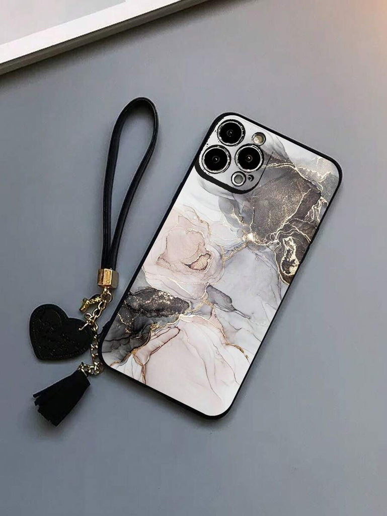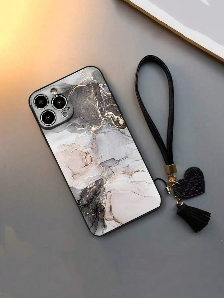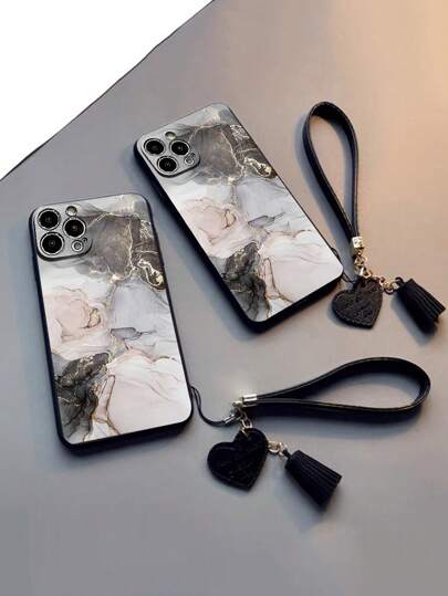 1pc Precision Perforated Straight Edge Marble Painted Anti-Drop Soft Phone Case With Detachable New Leather Heart-Shaped Lanyard, DIY Phone Case Pendant, Short Wrist Strap, Tassel Decoration, Compatible With IPhone, Galaxy, Ximi 12, Xmi11, Redmi Note11,