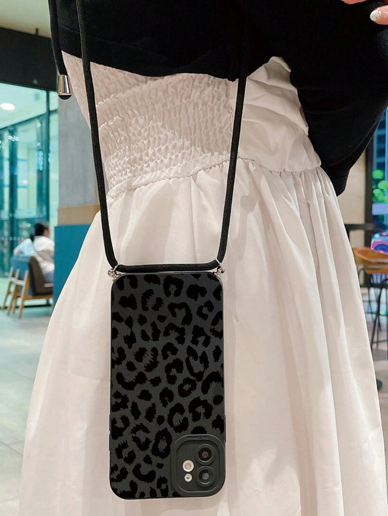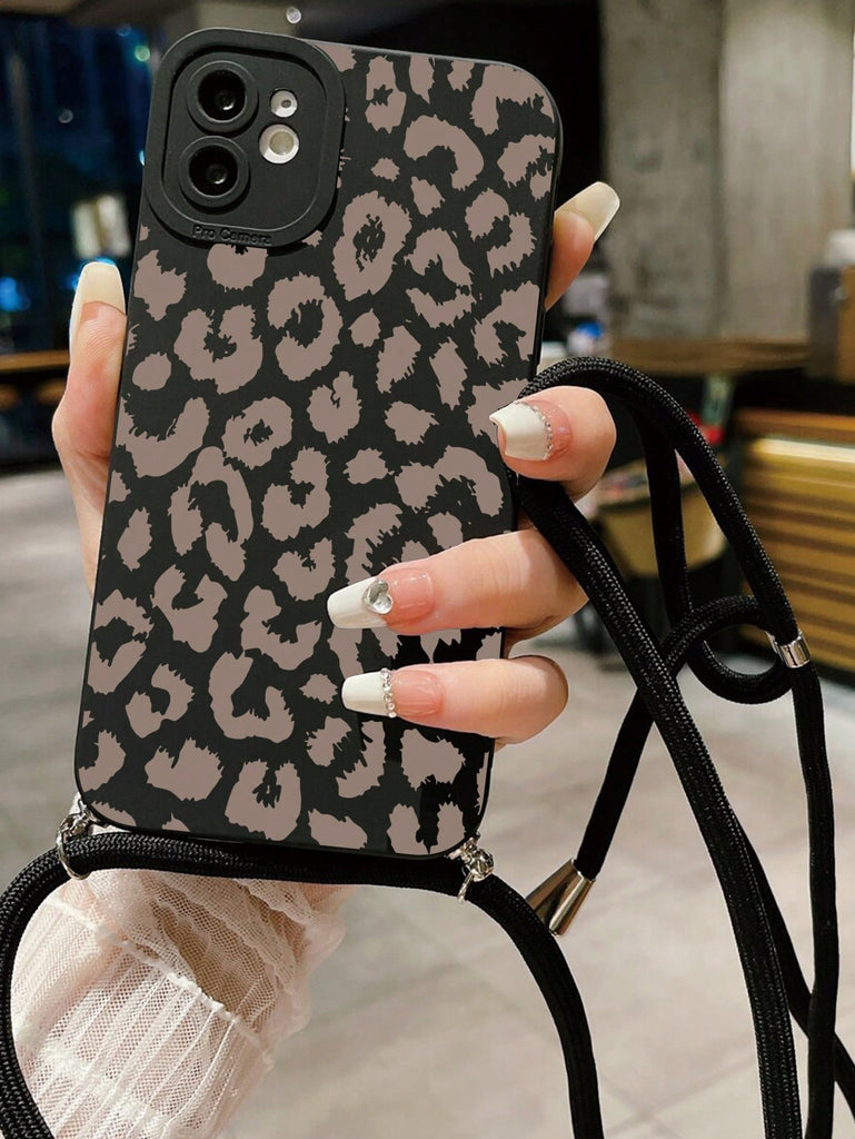 Cheetah Print Apple Tortoise Shell Phone Case 1pc Leopard Print Lanyard Strap Compatible With IPhone 11 12 13 Pro Max Phone Case, Shockproof Protective Cover Compatible With IPhone 14 Plus 15 Pro Max 7G XS XR