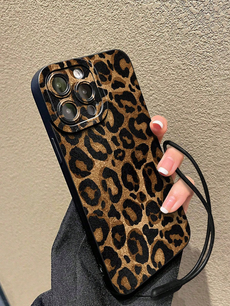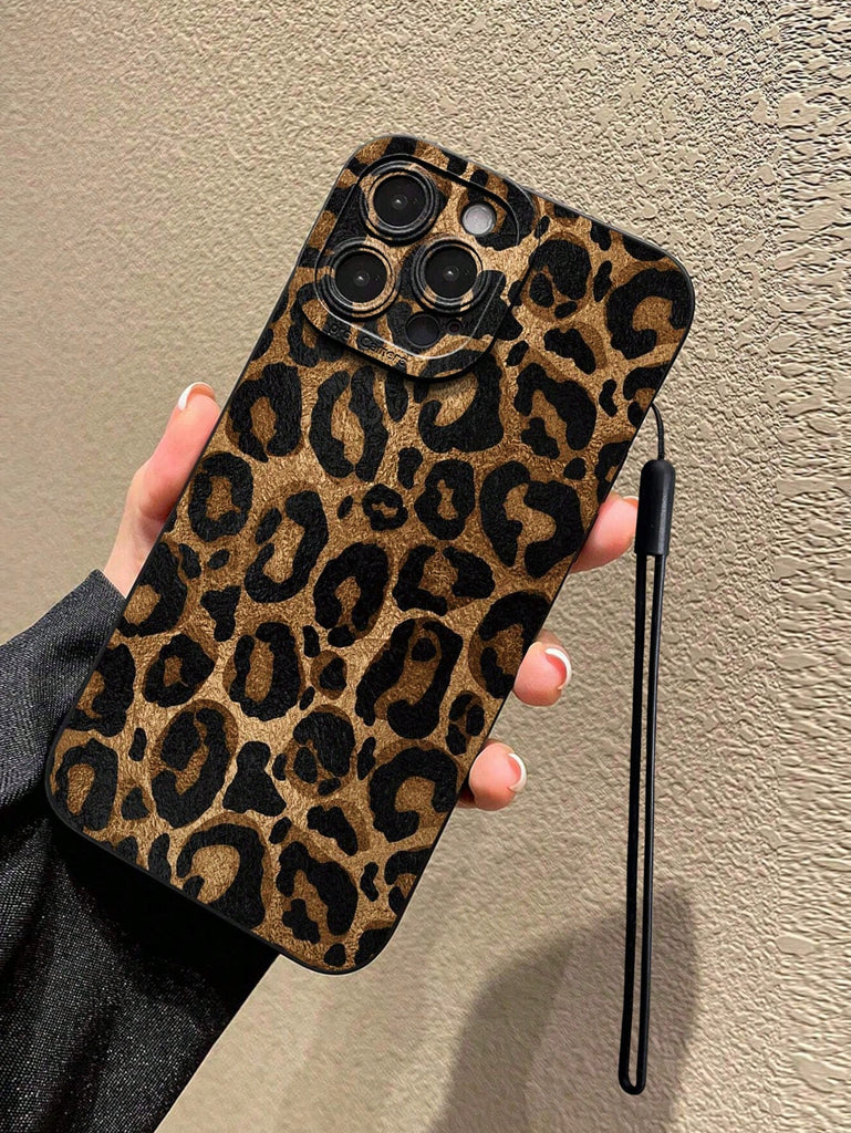 Leopard Print Colorful Painted Solid Edge Simple Anti-Fall Thick Phone Protective Case With Lanyard Strap, Compatible With IPhone 15 XR /7/8 IPhone 15 ProMax/12 ProMax/13 ProMax/14 ProMax 13 14 11 12p14 P11 Soft Shell P12 Anti-Fall XS.XR /78P.78GES2, Com