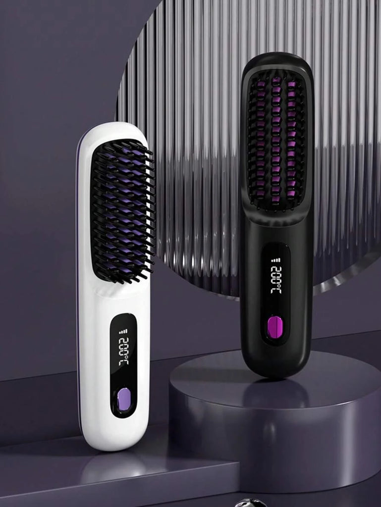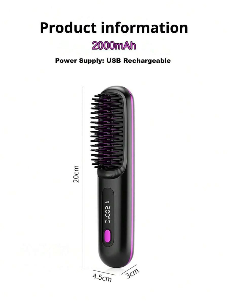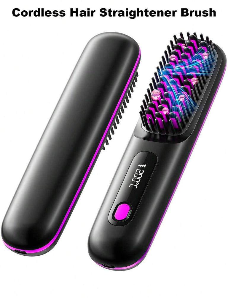 Cordless Hair Straightener Brush With LCD Display Temperature Adjustable, Portable Mini Straightening Brush For Travel, Negative Ion Hot Comb For Women Styling Hair Styler, Anti-Scald, Ceramic Coating