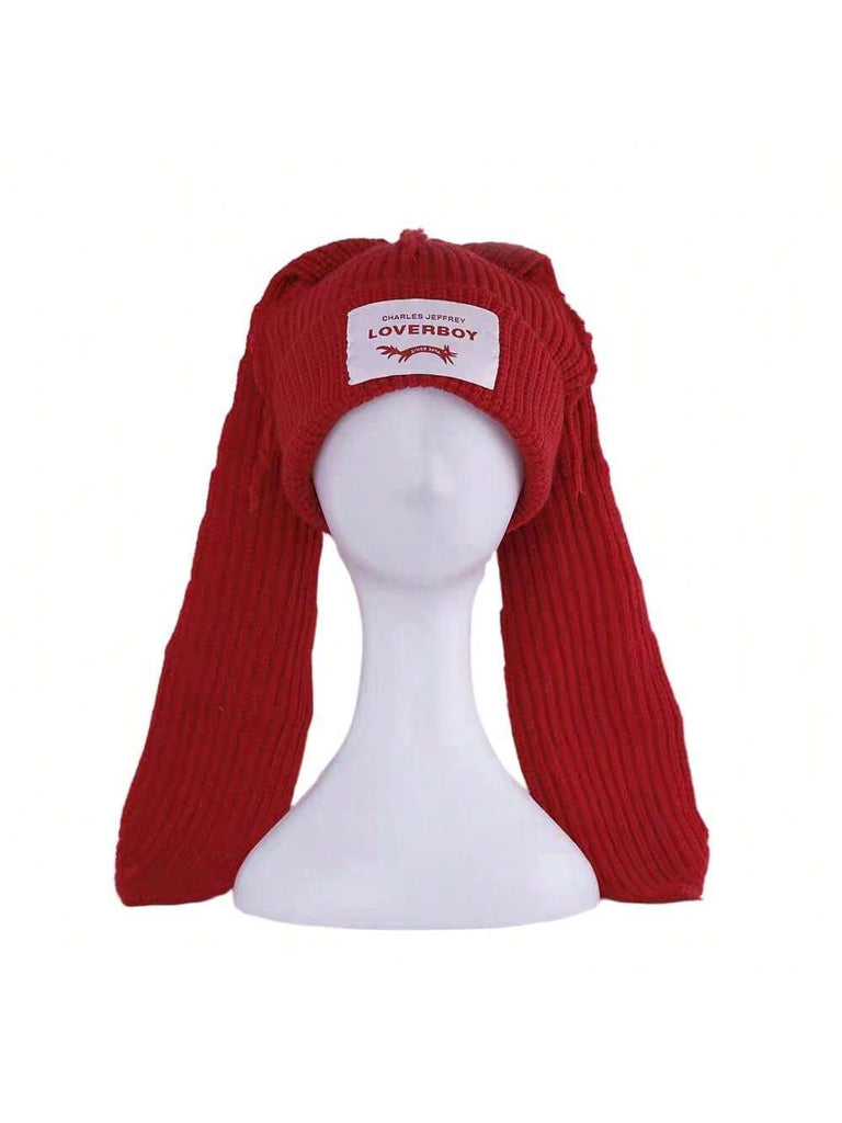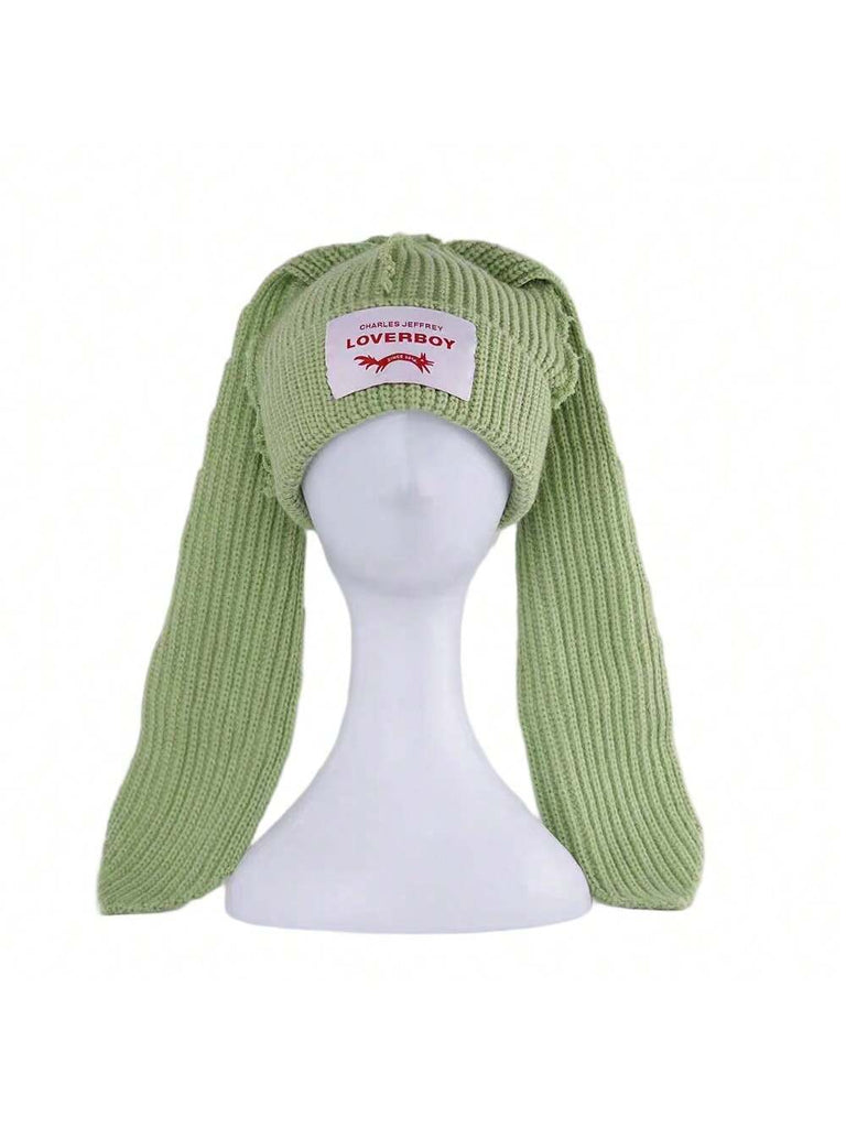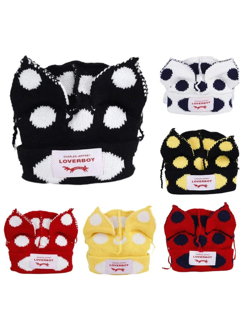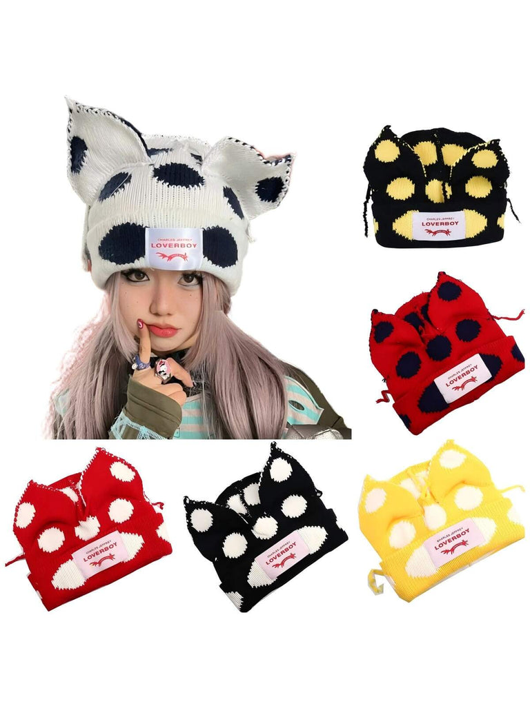 1PC Winter Knitted Hats For Women Cute Rabbit Ear Soft Warm Thick Acrylic Luxury Brand Label Dot Beanies Skullies Personality Casual Party Couples Hats