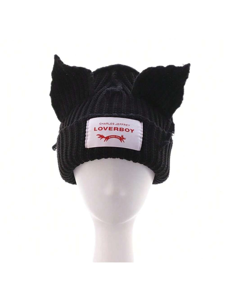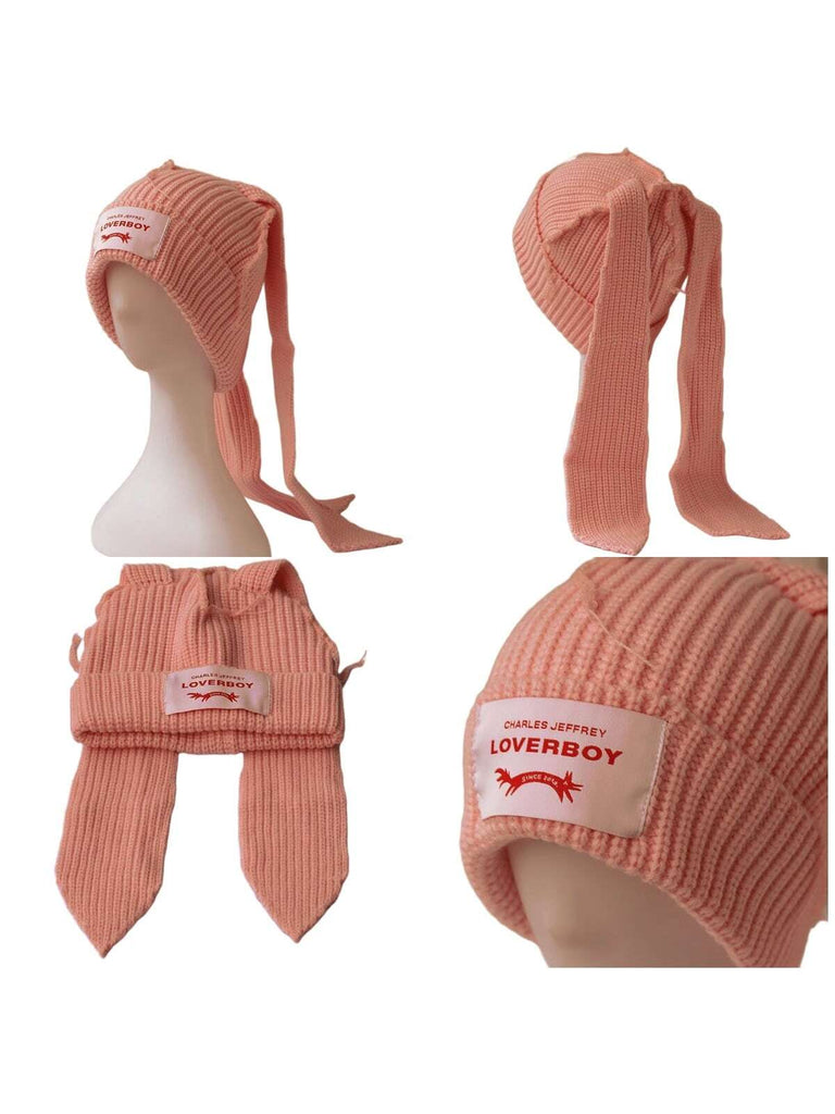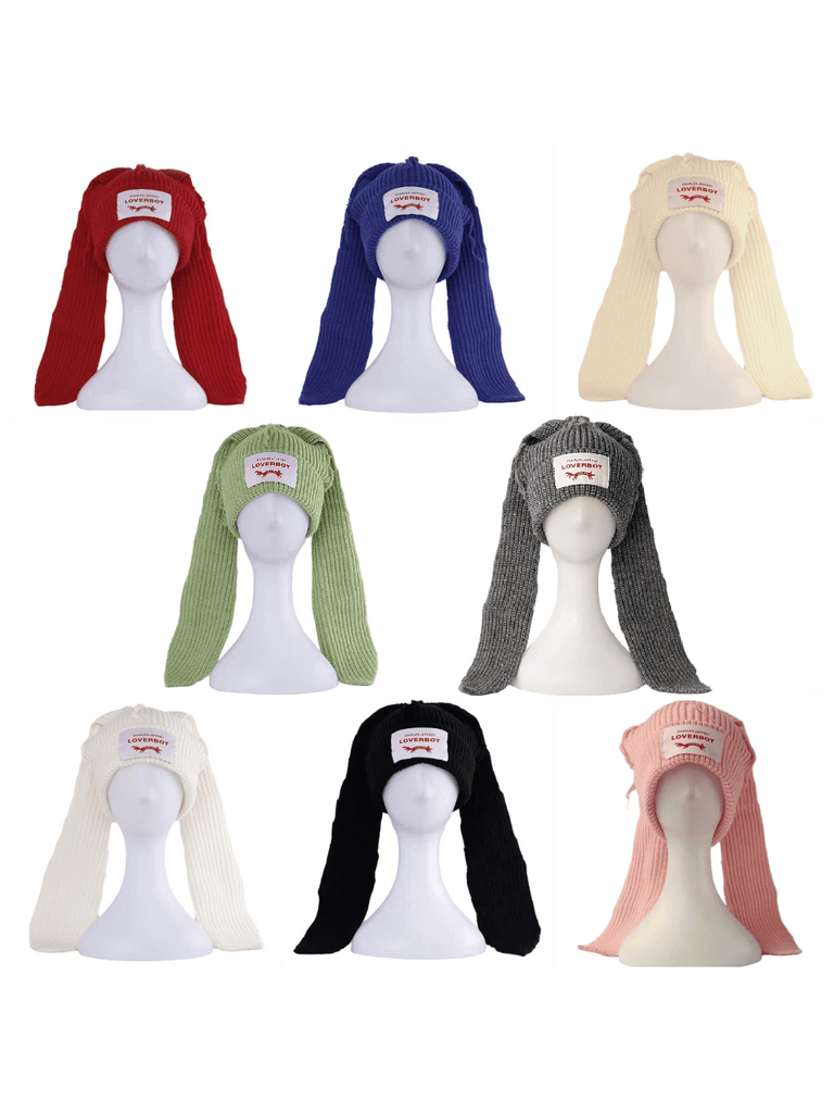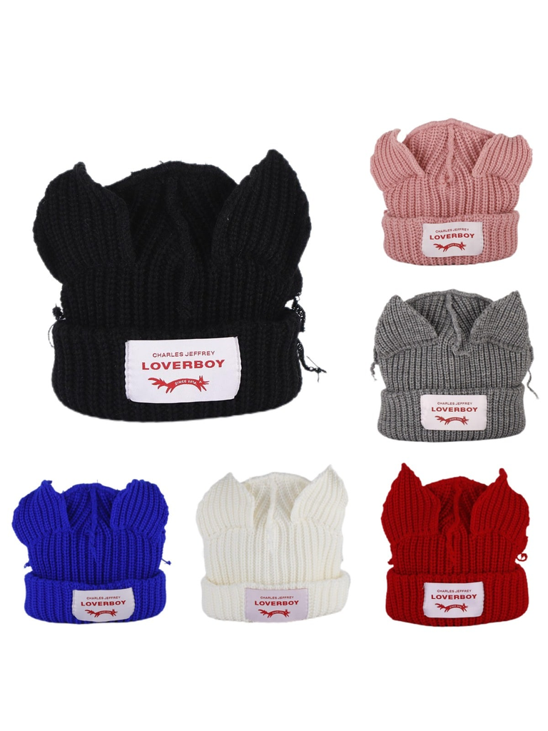 1PC Winter Knitted Hats For Women Cute Rabbit Ear Soft Warm Thick Acrylic Luxury Brand Label Dot Beanies Skullies Personality Casual Party Couples Hats