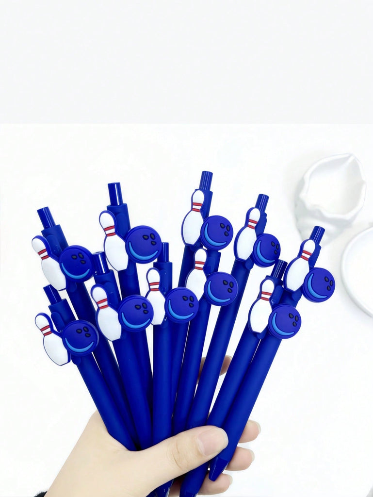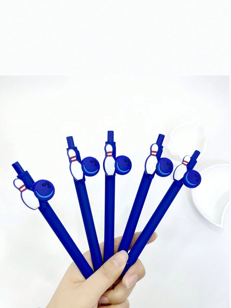 10 Pcs/5 Pcs Bowling Theme Stylus Pen, Creative PVC Soft Rubber Adhesive Refillable Ballpoint Pens, Student Signature Writing Pens, Plastic Material