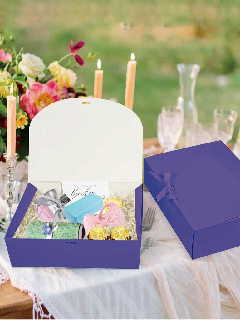 Purple Gift Box With Lid, Best Man Proposal Box, Deluxe Purple Gift Box With Ribbon For Wedding Gift Box, Birthday Gift Box, Party Gift Box, Christmas Gift Box, Bridesmaid Gift Box, Graduation Gifts,Valentine's Day Gift Box Mother's Day Graduation