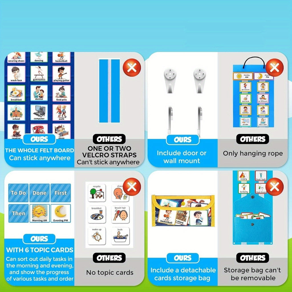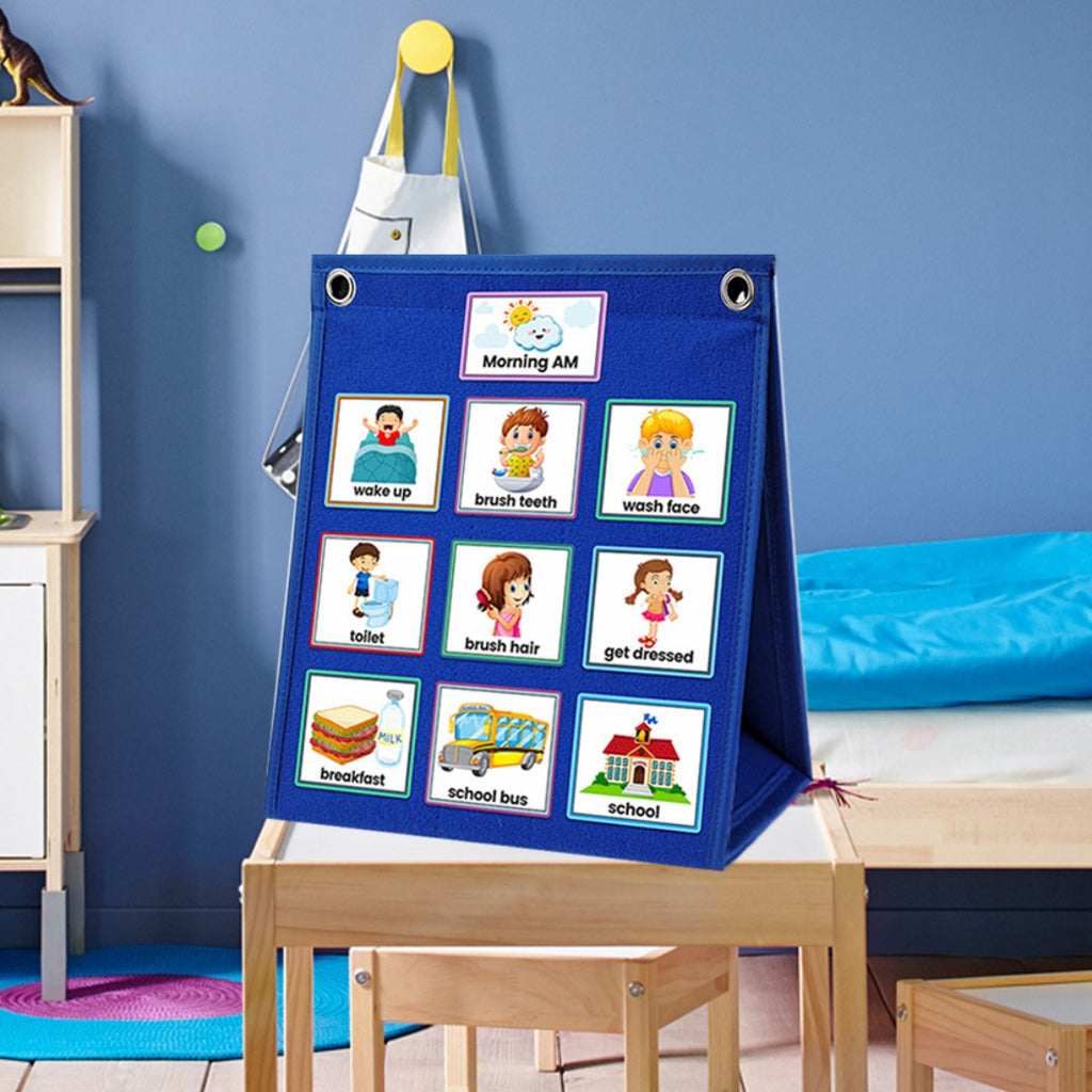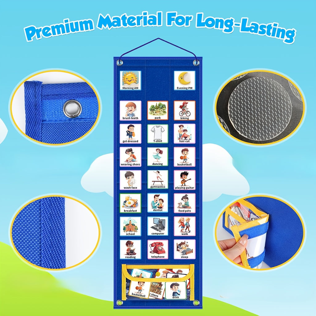 1pc Wall-mounted Visual Schedule Double-sided Foldable Work Plan Chart Classroom Decoration Daily Planning Chart (including 70 Visual Schedule Cards)