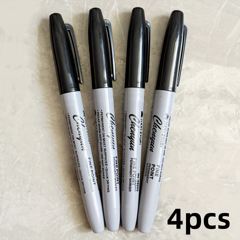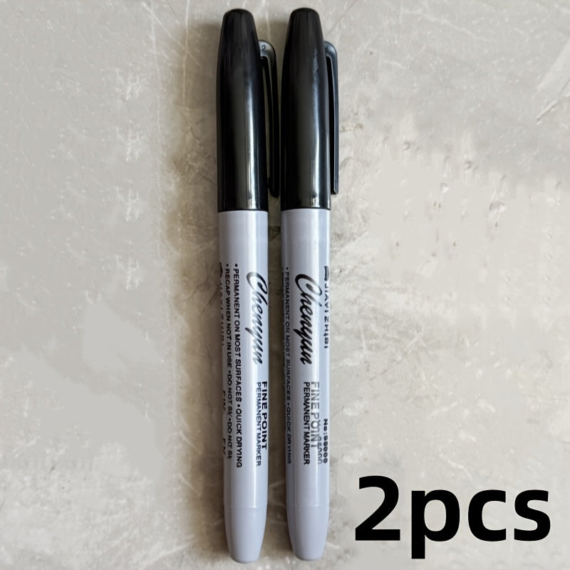 2/4pcs Fine Tip Permanent Markers, Quick-Drying Waterproof, 1mm- Stylish Black Design, Suitable for Stationery, Office, and Gift Packaging
