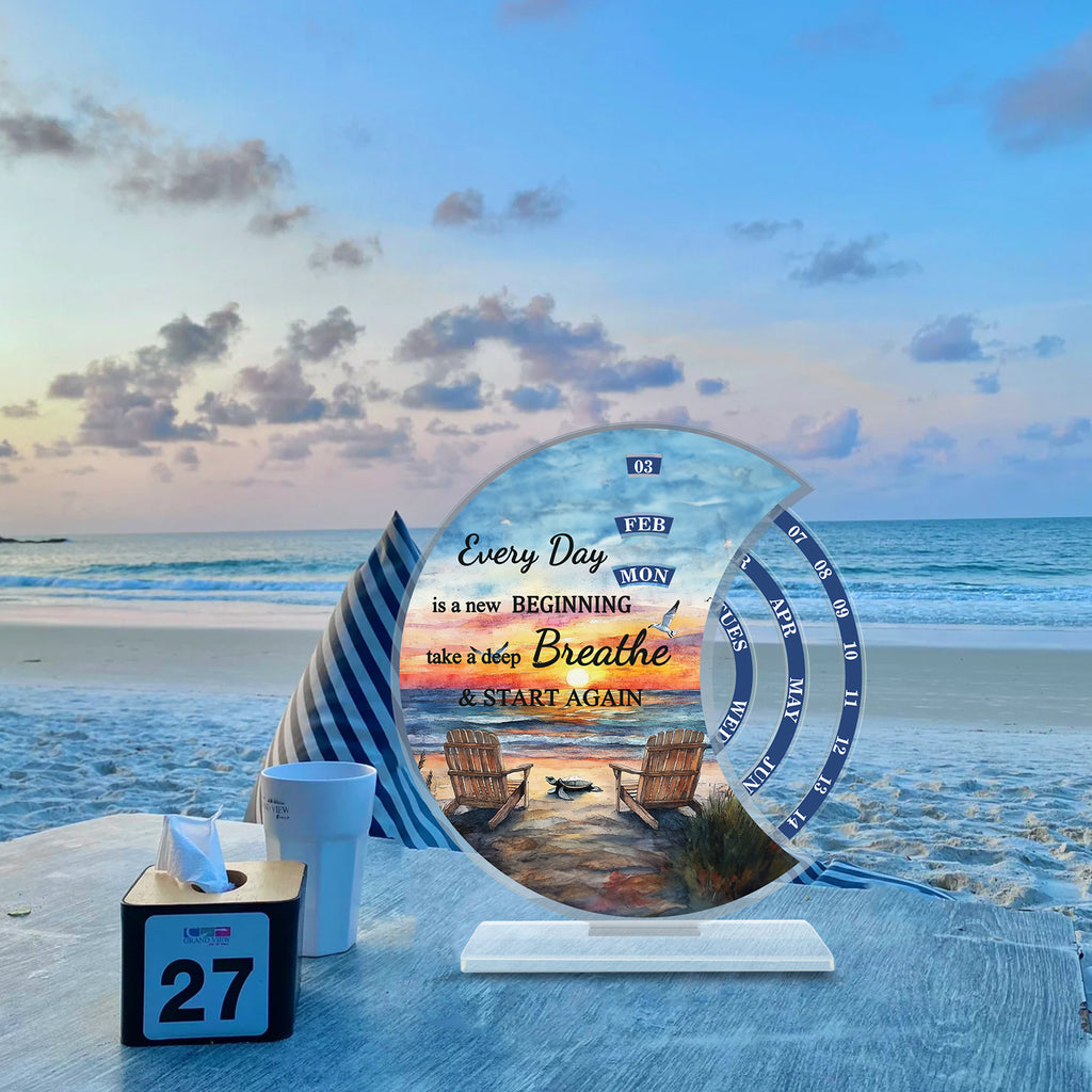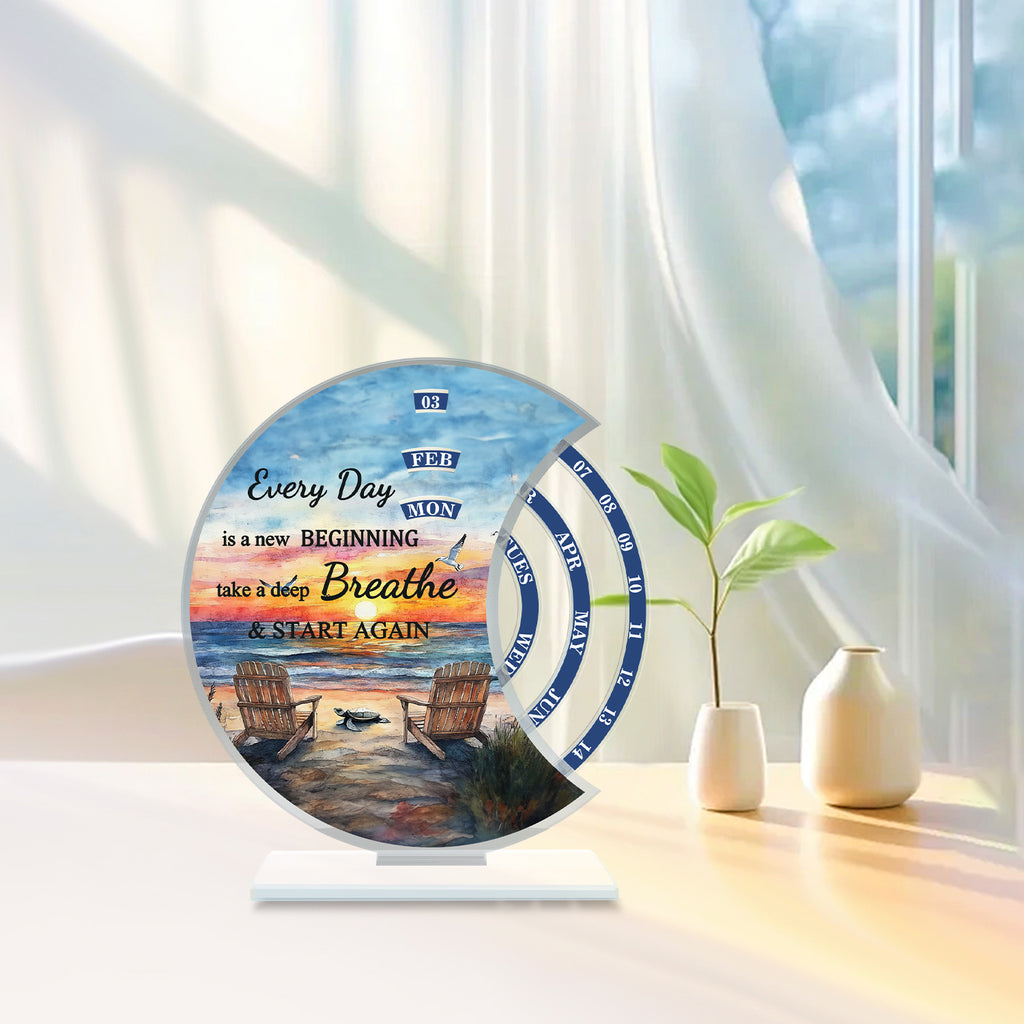 2D Flat, 1pc 2025 Sunshine Calendar, Acrylic Decor with Quote 'Every Day is a New Beginning', Perpetual Desk Calendar, Daily-Weekly-Monthly View, 2025 Handcrafted Rotatable Manual desk calendar, Home and Office Desktop Ornament, Heartful Gift