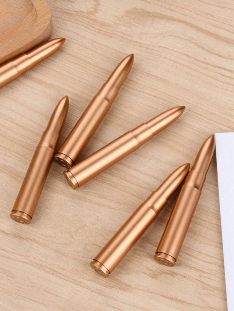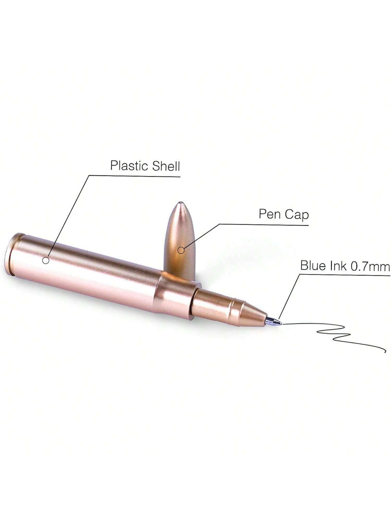4pcs Creative Retro Bullet Shaped Ballpoint Pen, CPC Pen Student Creative Retro Bullet Head Blue Water Based Pen, Fun Bullet Shaped Creative Unique, Small And Convenient To Carry, Smooth And Smooth Writing, Clear Writing, Ink Core Not Easy To Break, Ink
