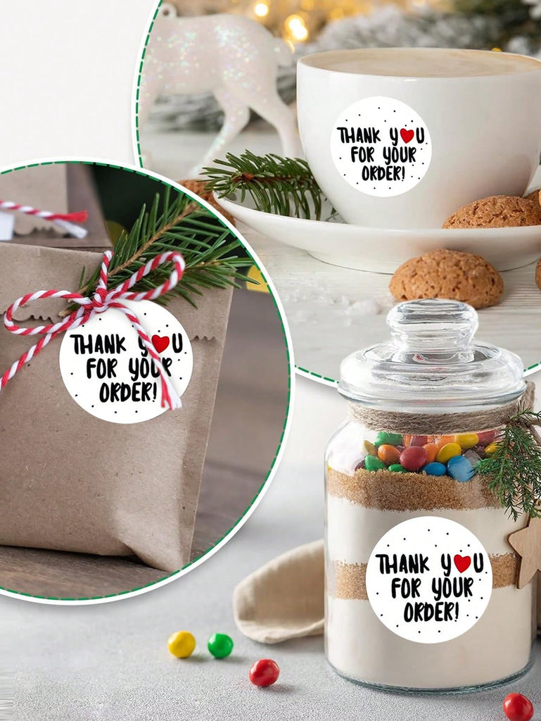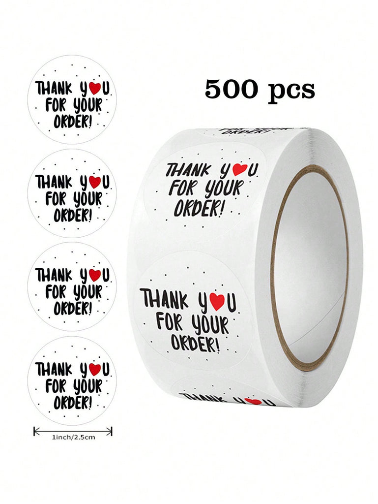 500pcs/Roll Thank You For Your Order Round Self-Adhesive Stickers, Waterproof PVC, Suitable For DIY Decoration, Baking, Envelopes, Crafts, Gift Bags Back To School