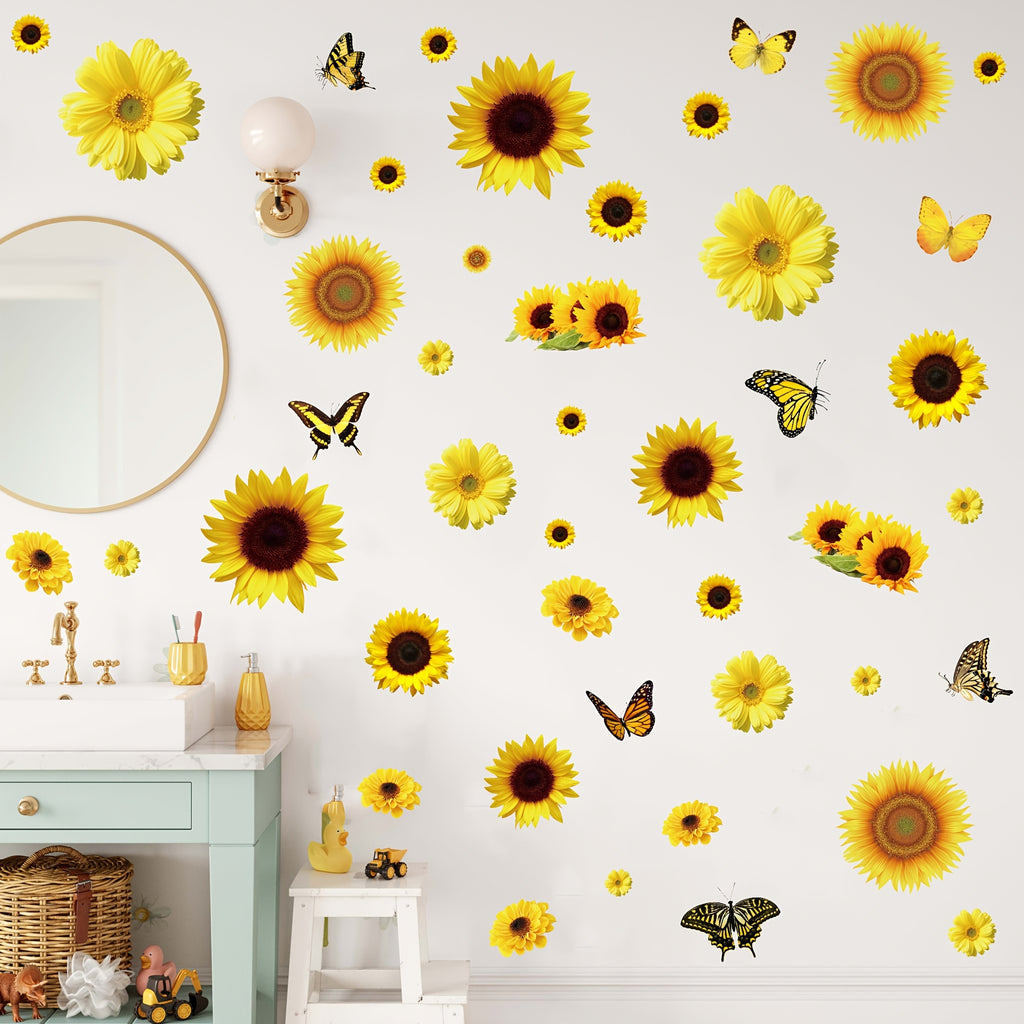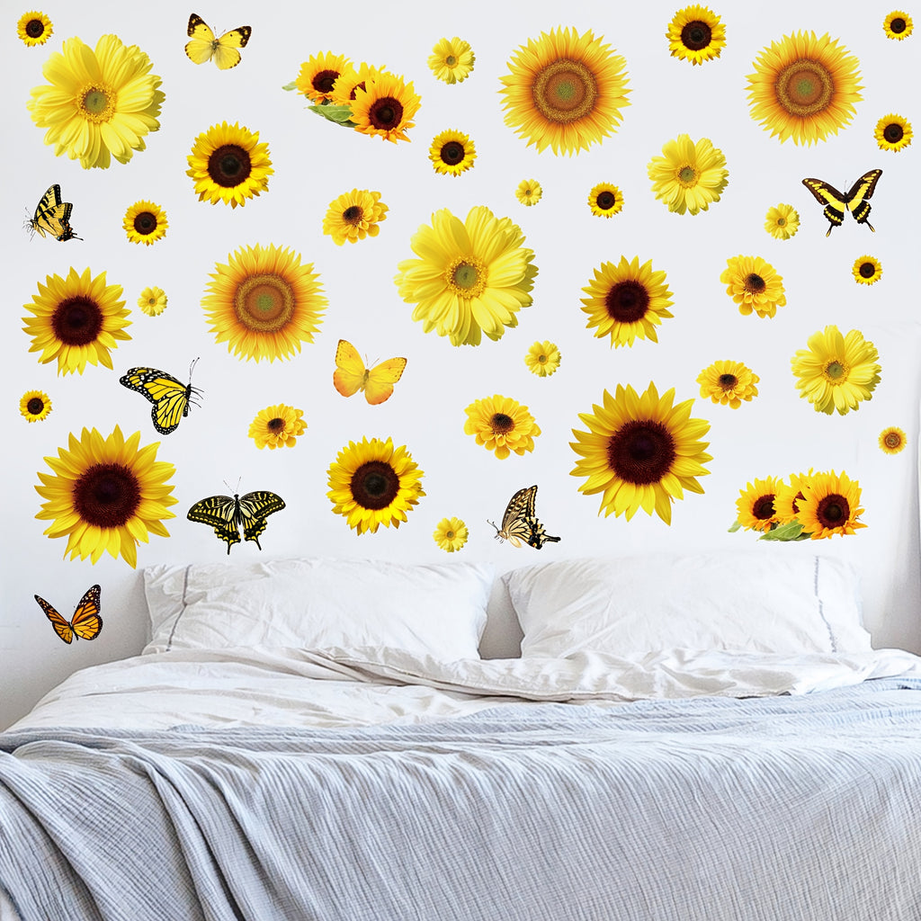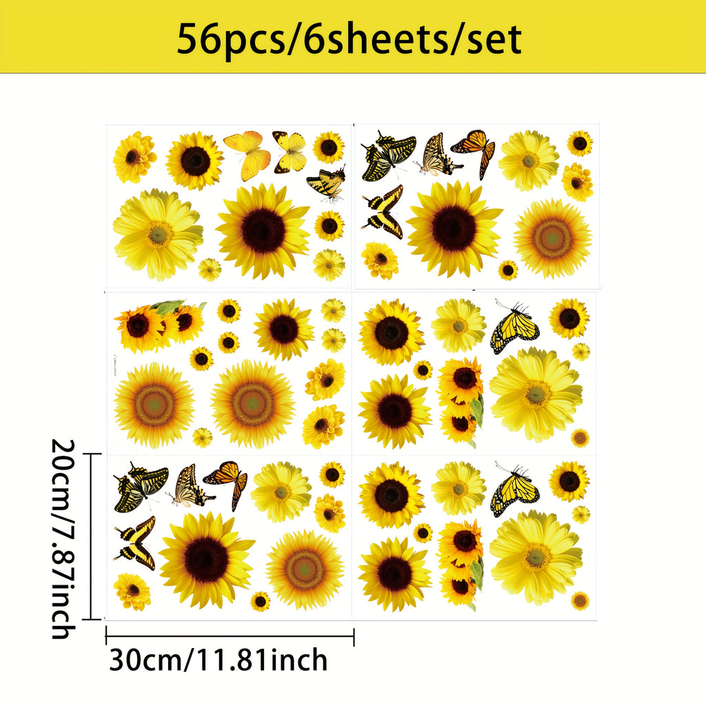 6pcs Bohemian Sunflower & Butterfly Wall Decals - Vibrant Floral PVC Stickers for Living Room, Bedroom & Window Decor, Self-Adhesive, Semi-Matte Finish, Easy to Apply & Remove, Adds Warmth to Any Space, Bedroom Accents | Floral Pattern | Easy Application