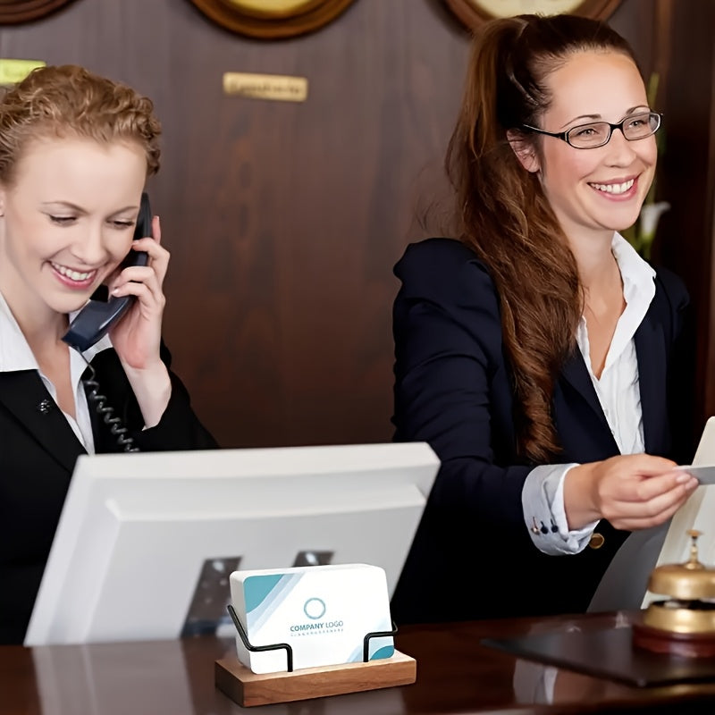 Elegant Wooden Business Card Holder with Geometric Design