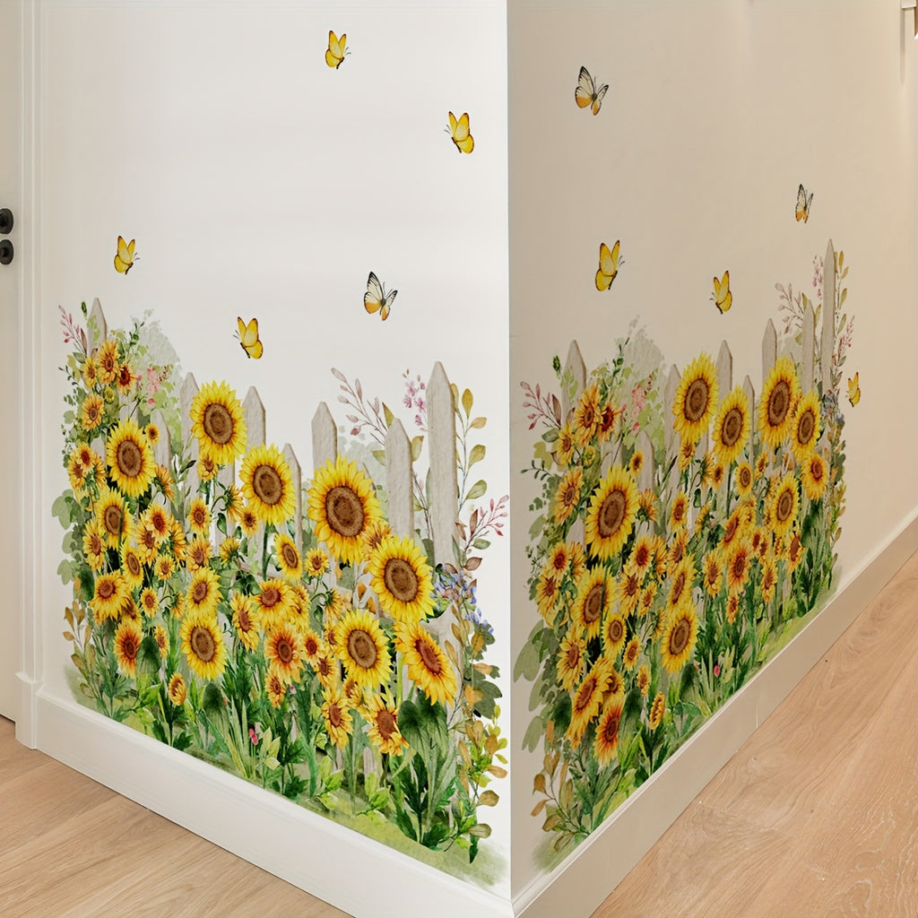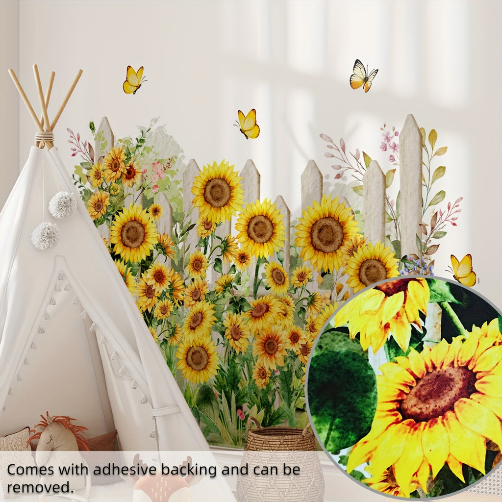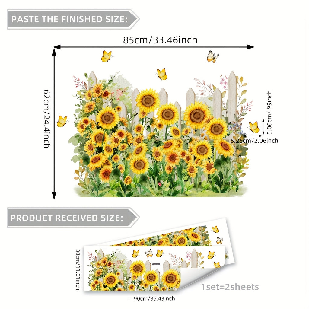 Sunflower Fence Floral Wall Decal Set for Bedroom Living Room Background Home Decor Stickers Self-Adhesive M16535-KX