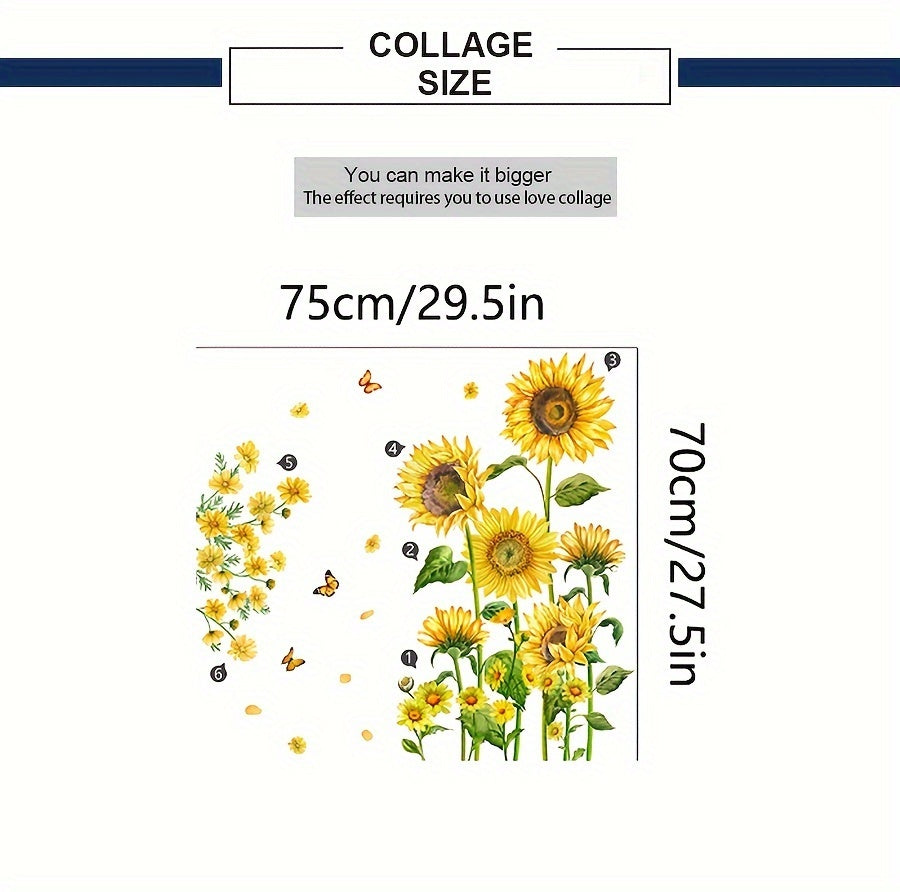 Sunflower Flower Wall Sticker, Decorative Self-adhesive Painting for Living Room, Entrance and Bedroom, Removable PVC Wall Sticker