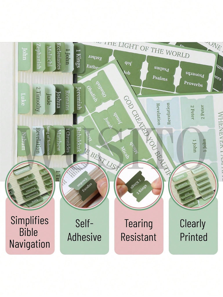WUSITO Bible Tabs, 75 Tabs, Sage Green, Laminated Bible Tabs For Women And Men, Bible Tabs For Study Bible Index Tabs, Bible Book Tabs, Bible Labels Tabs, Bible Tabs For Women Study Bible.,School Supplies,Back To School